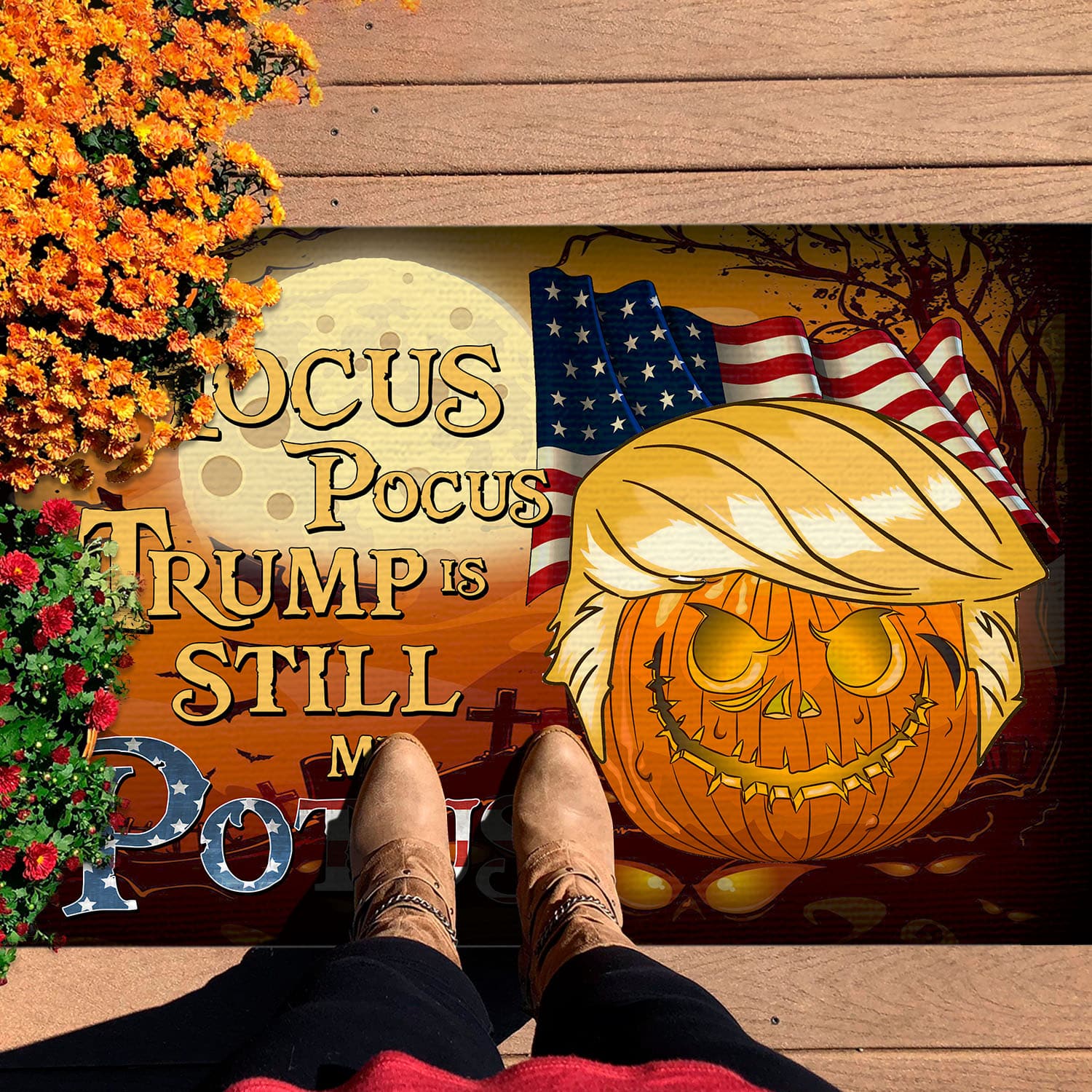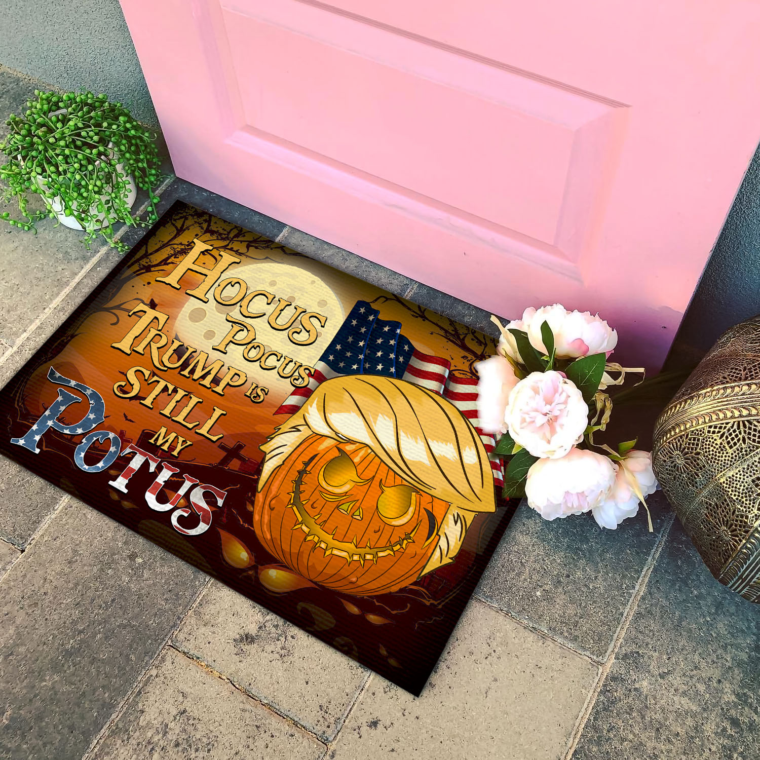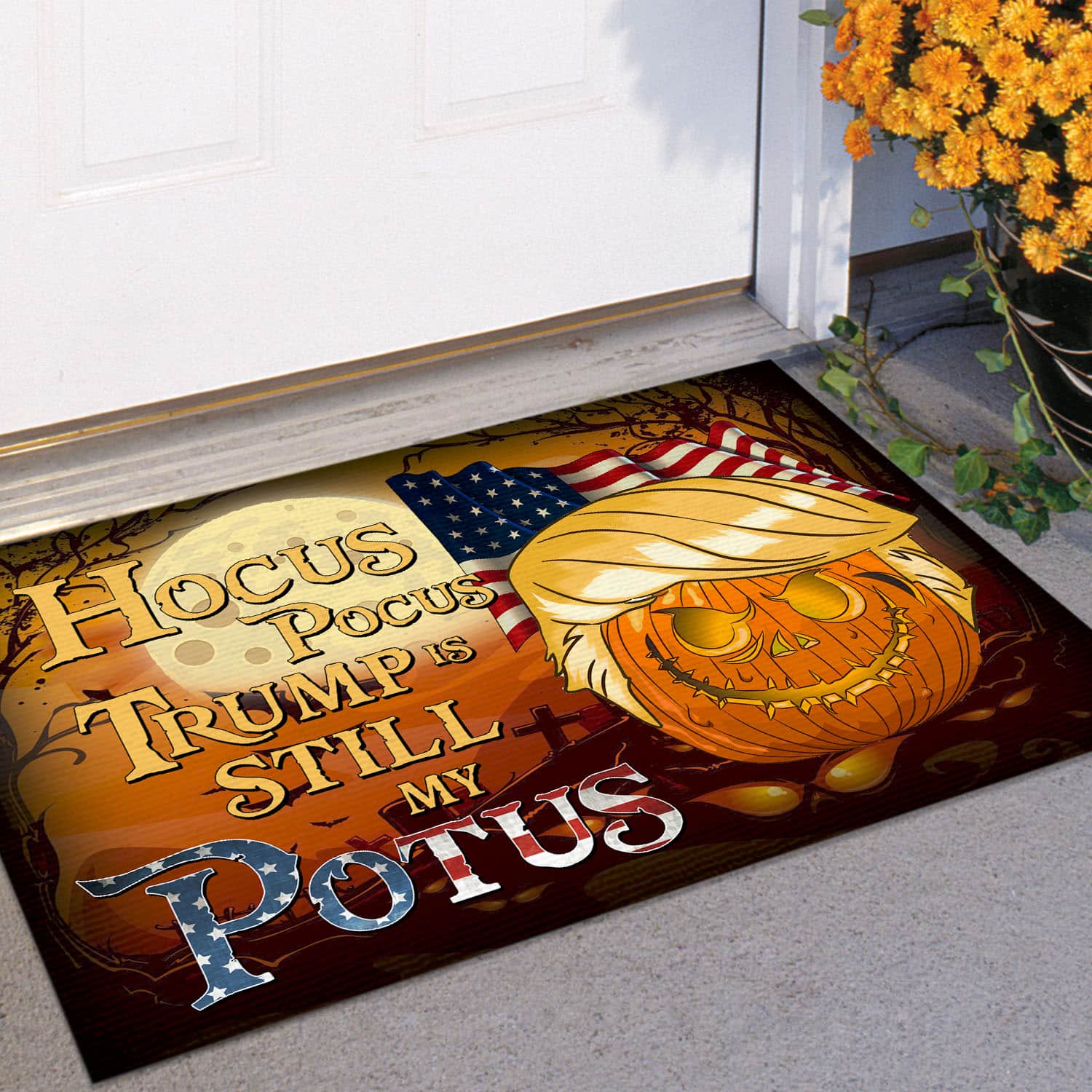 Let’s Shop Hocus Pocus Trump Is Still My Potus Funny Trump Pumpkin House Doormat – Support Trump Outdoor Indoor Doormat!