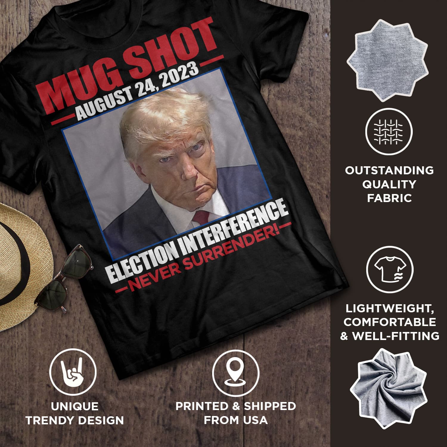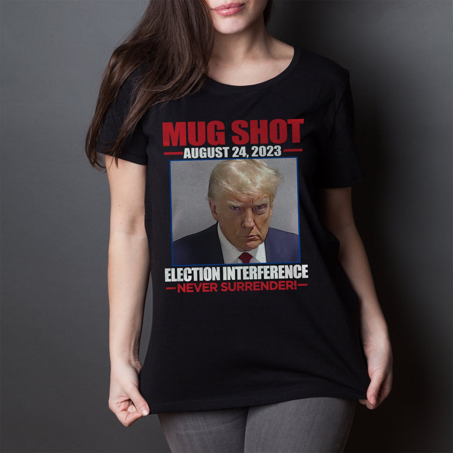 Trump Mug Shot Election Interference Never Surrender T-Shirt - Trump Arrested Shirt
