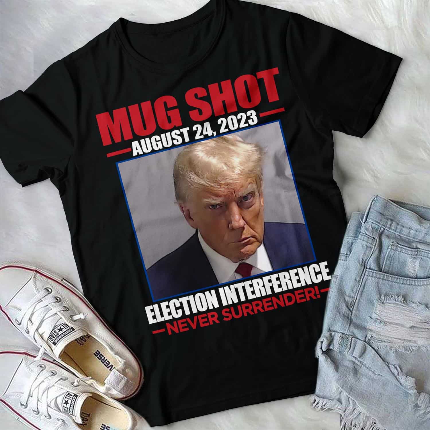 Trump Mug Shot Election Interference Never Surrender T-Shirt – Trump Arrested Shirt