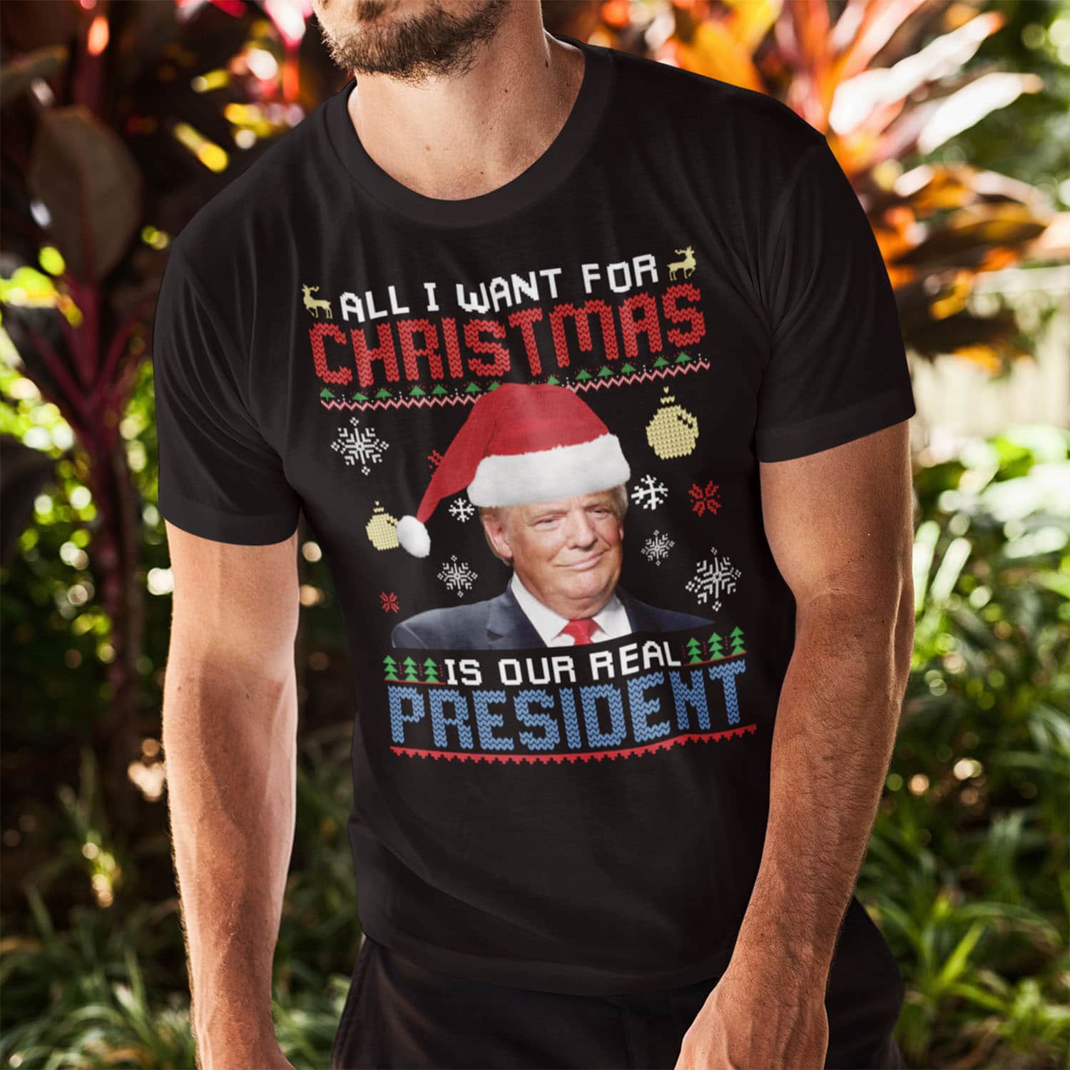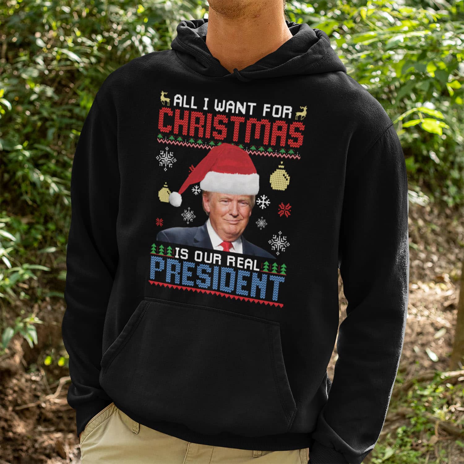 All I Want For Christmas Is Our Real President Donald Trump Ugly Christmas T-Shirt – Hoodie – Sweatshirt