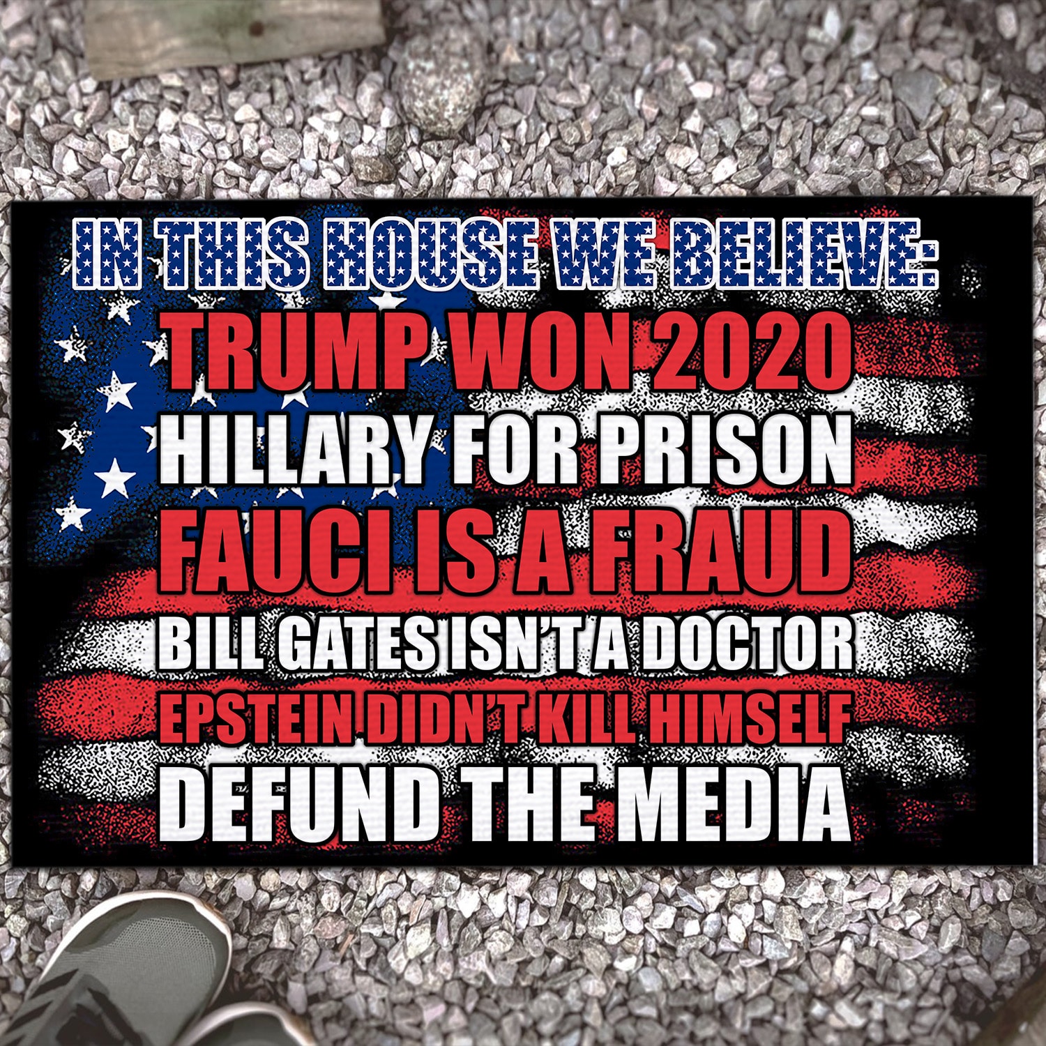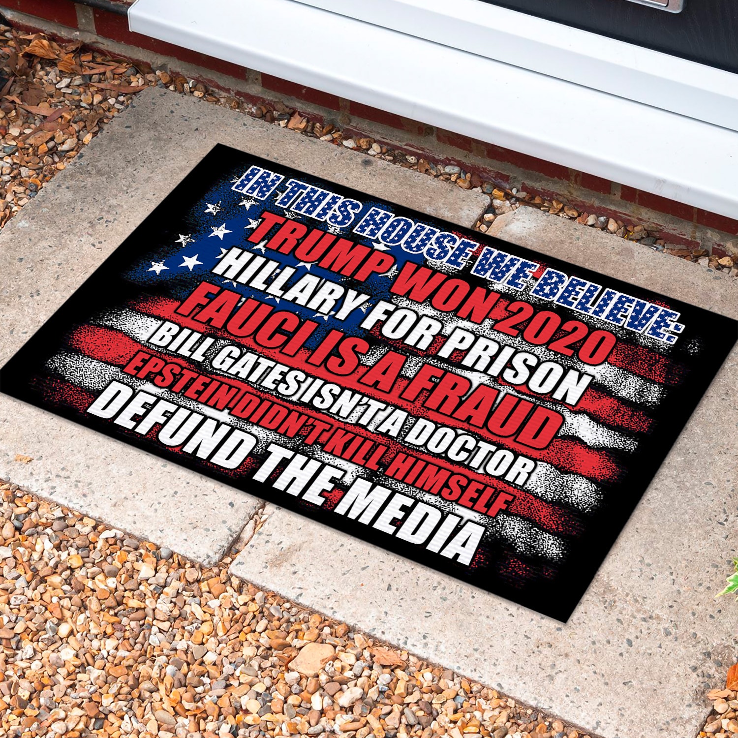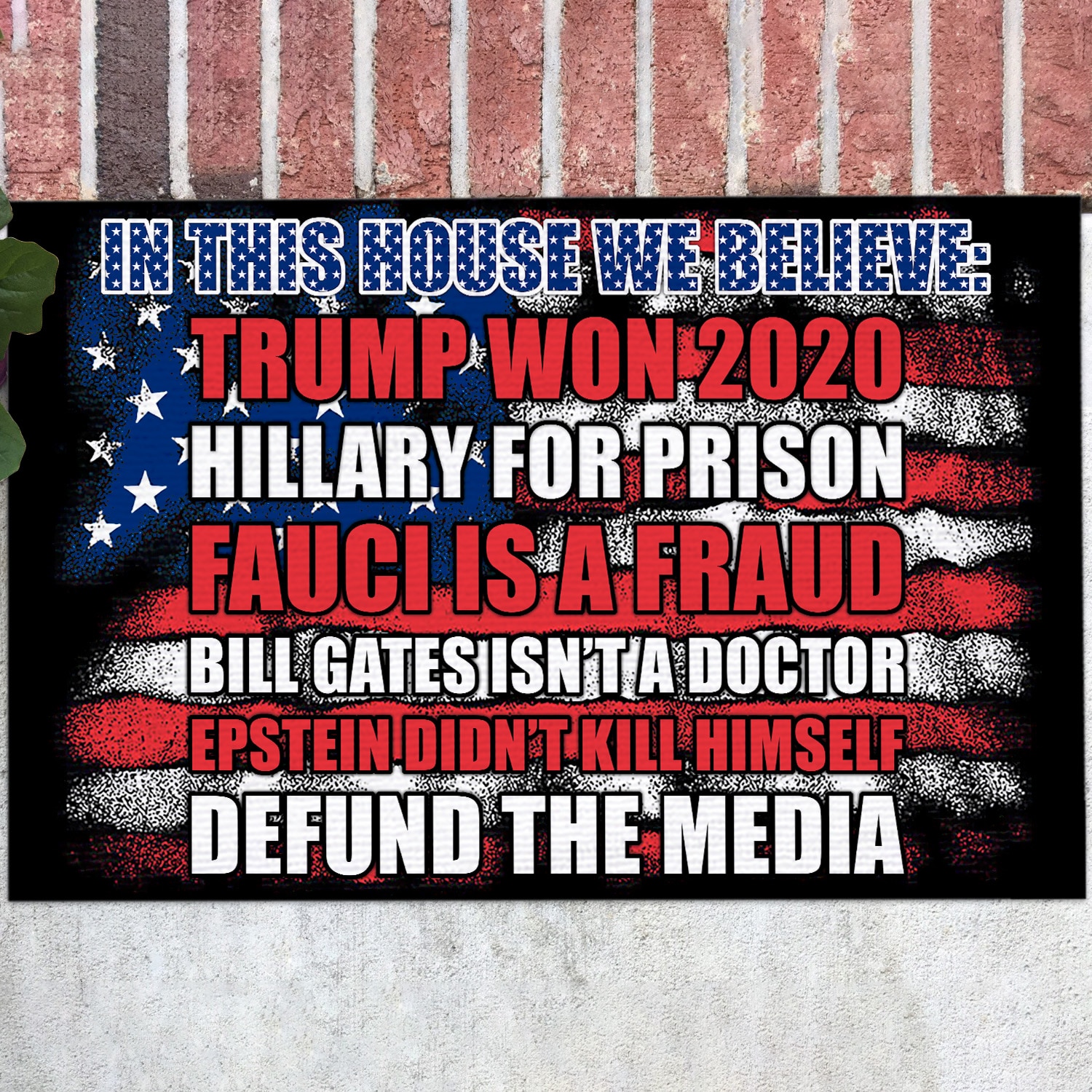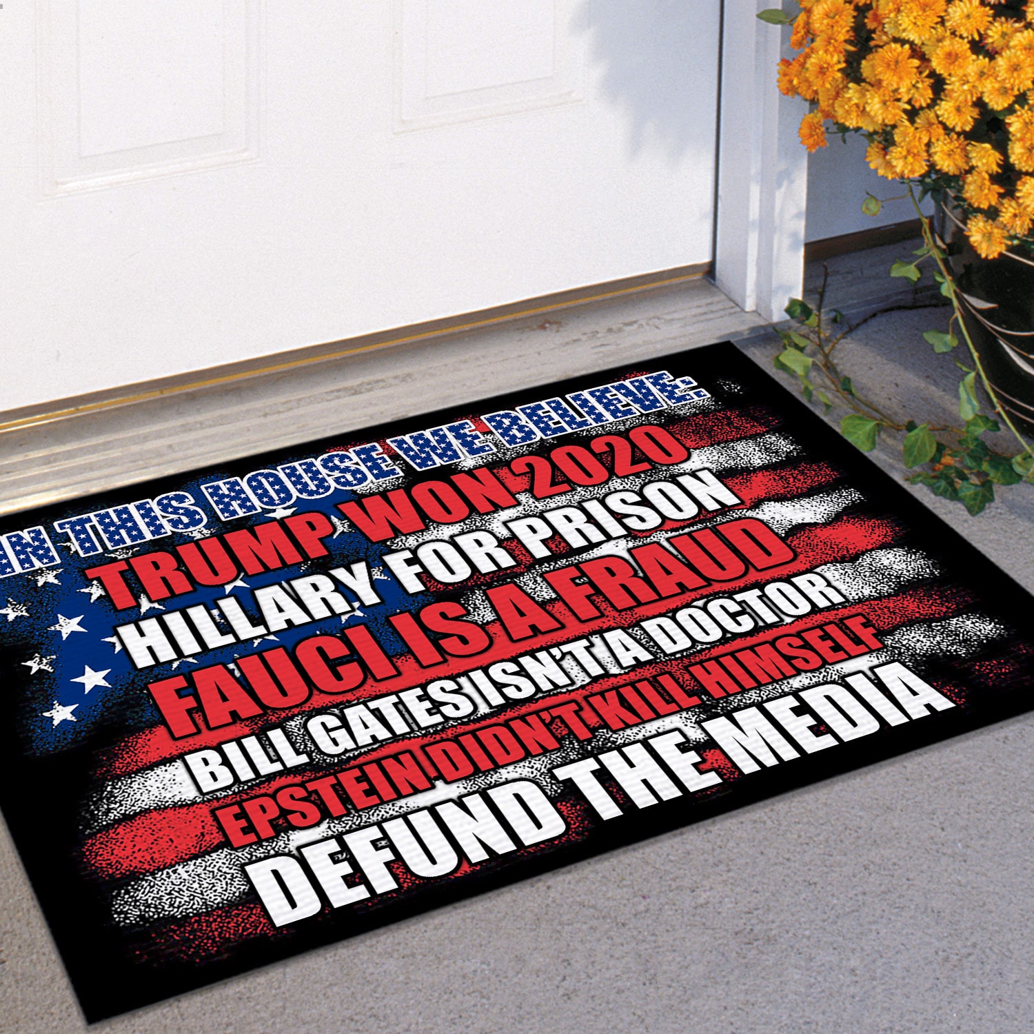 Are you spending too much time to find creative merchandise for you or suitable & special gifts for your mommy, your daddy, your son, your daughter, your children, your friends or someone you love? The struggle is over because we have various In This House We Believe Sign, in This House We Believe Flag, in This House We Believe Outdoor Doormat, Pro-Trump Doormat, Fauci Lied Flag, Defund Media Flag, Trump Patriotic Doormat, Political Doormat, in This House We Believe Doormat, in This House We Believe Trump Won 2020 Doormat, Trump Won 2020 Doormat, Hillary for Prison Doormat, Fauci Is a Fraud Doormat, Bill Gates Isn’t a Doctor Doormat which will make perfect presents for your beloveds. In order to make your present stand out, we have created lots of unique and awesome customized photo gifts & personalized designs.