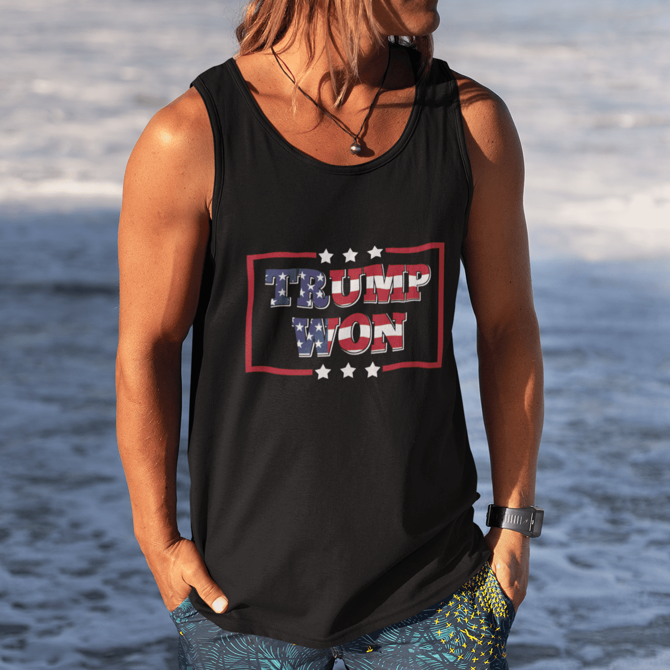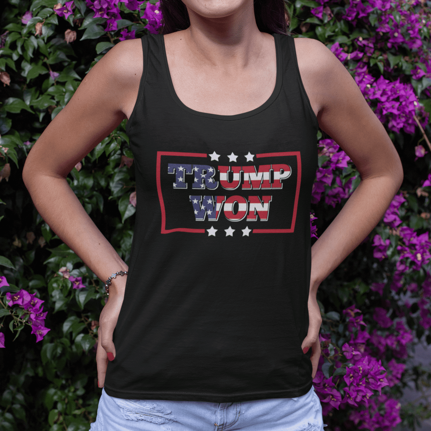 Trump Supporter Gift Trump Won 4th of July American Flag Cotton Tank Top Tee – Ladies Racerback Tank