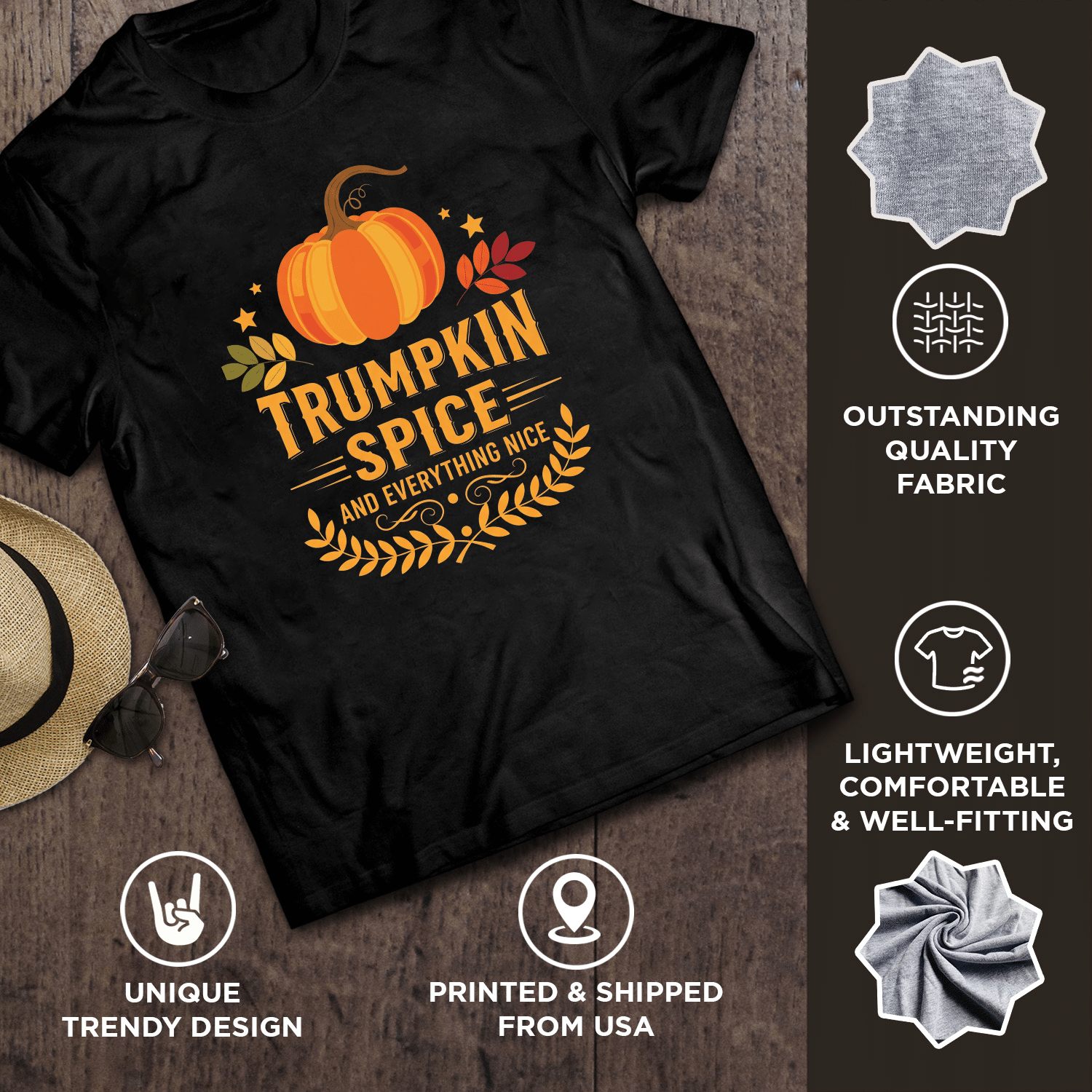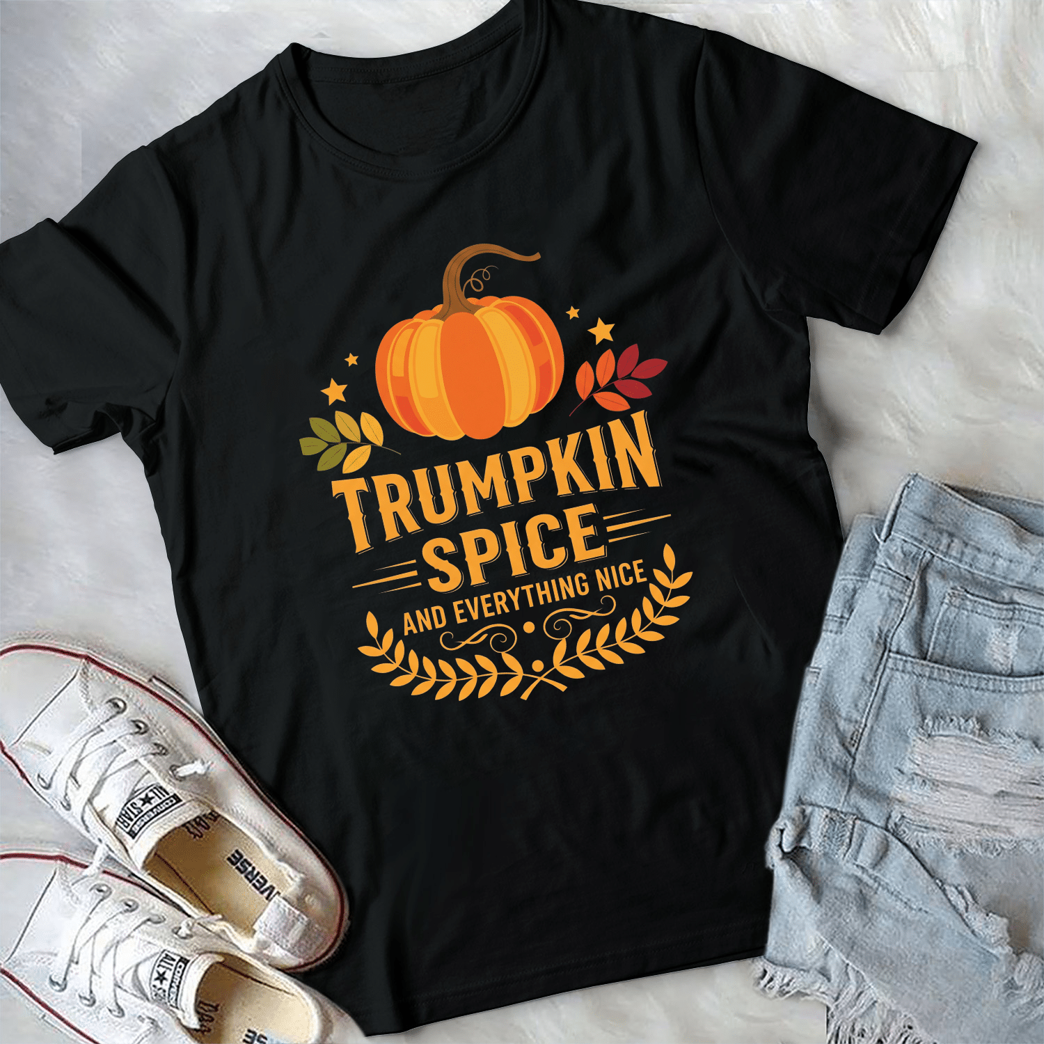 Trumpkin Spice Autumn Halloween T-Shirt – V-Neck Shirt