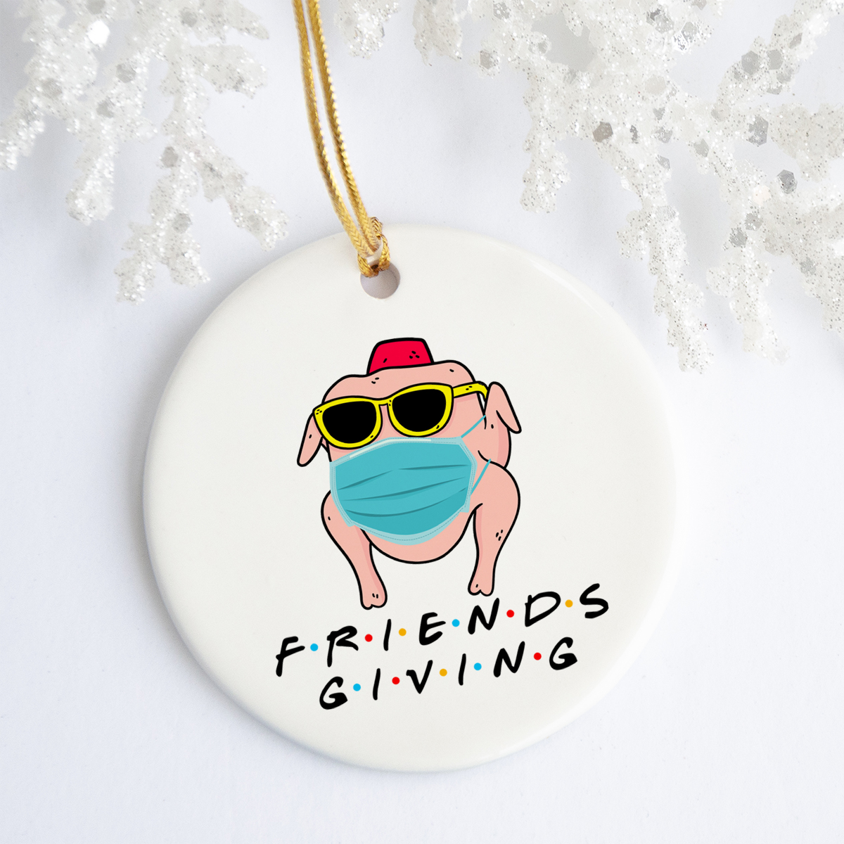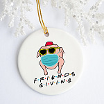 Let’s Shop Friendsgiving 2020 Funny Thanksgiving Friends Funny Quarantine Turkey Wearing Mask Holiday Circle Ornament!