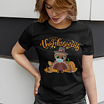 Happy Thanksgiving T-Shirt - Turkey Wearing Face Mask T-Shirt, Black, Unisex T-Shirt