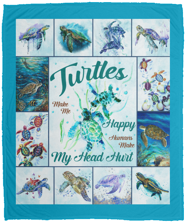 Turtles Make Me Happy Humans Make My Head Hurt Fleece Blanket – Premium Sherpa Blanket