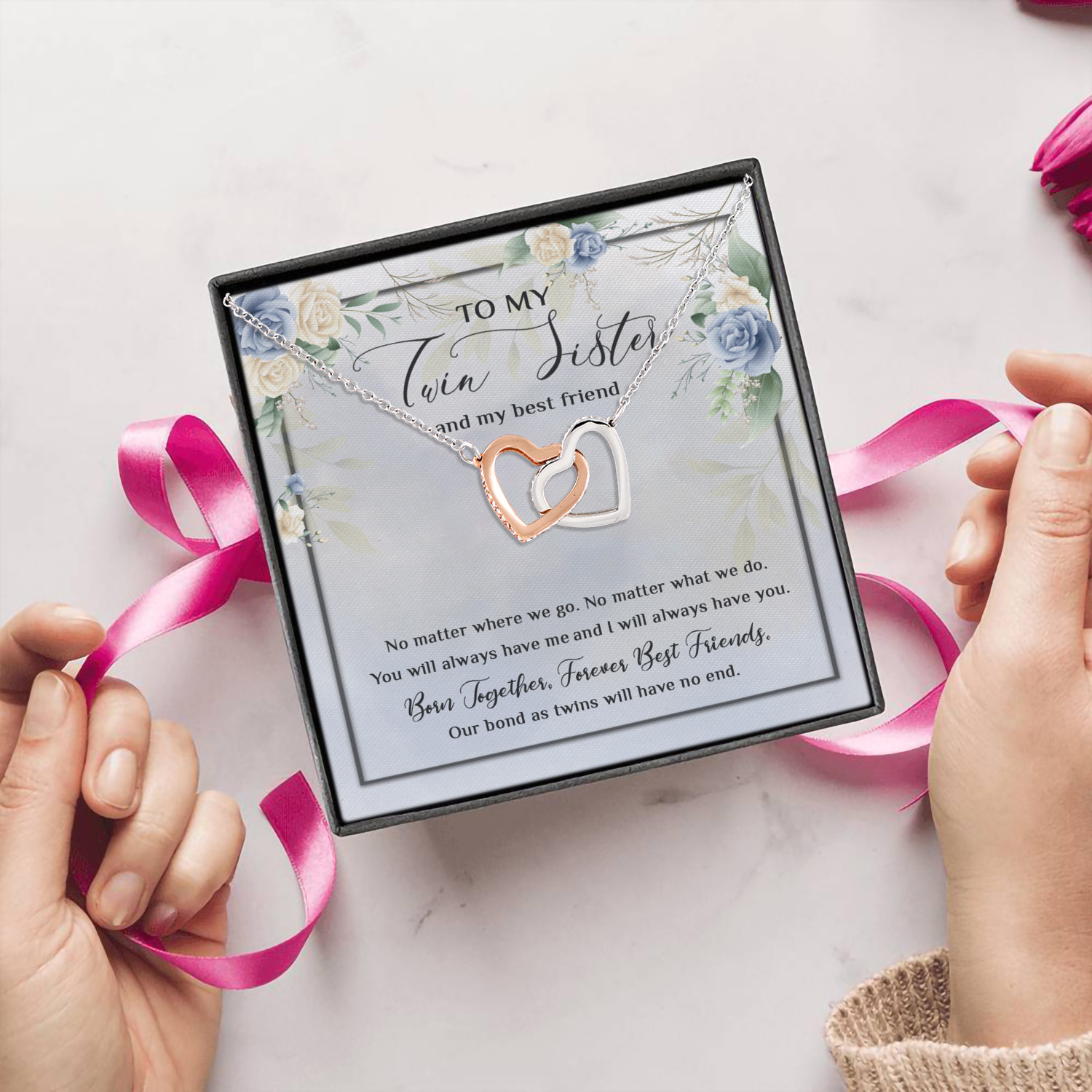 Let’s Shop To My Twin Sister And My Best Friend No Matter Where We Go No Matter What We Do Joined Interlocking Hearts Pendant Necklace!