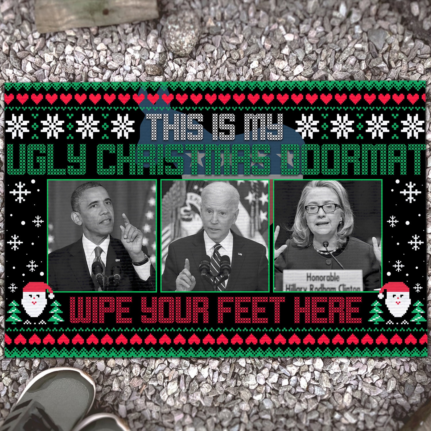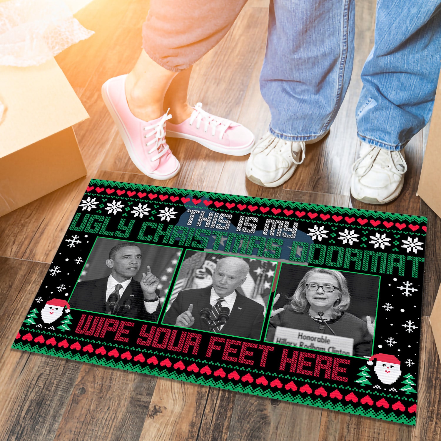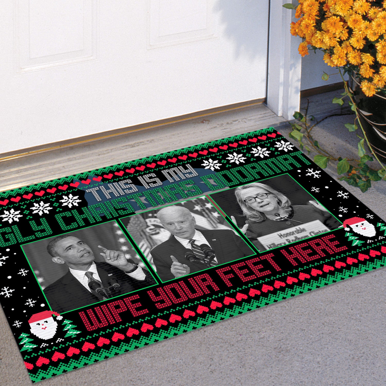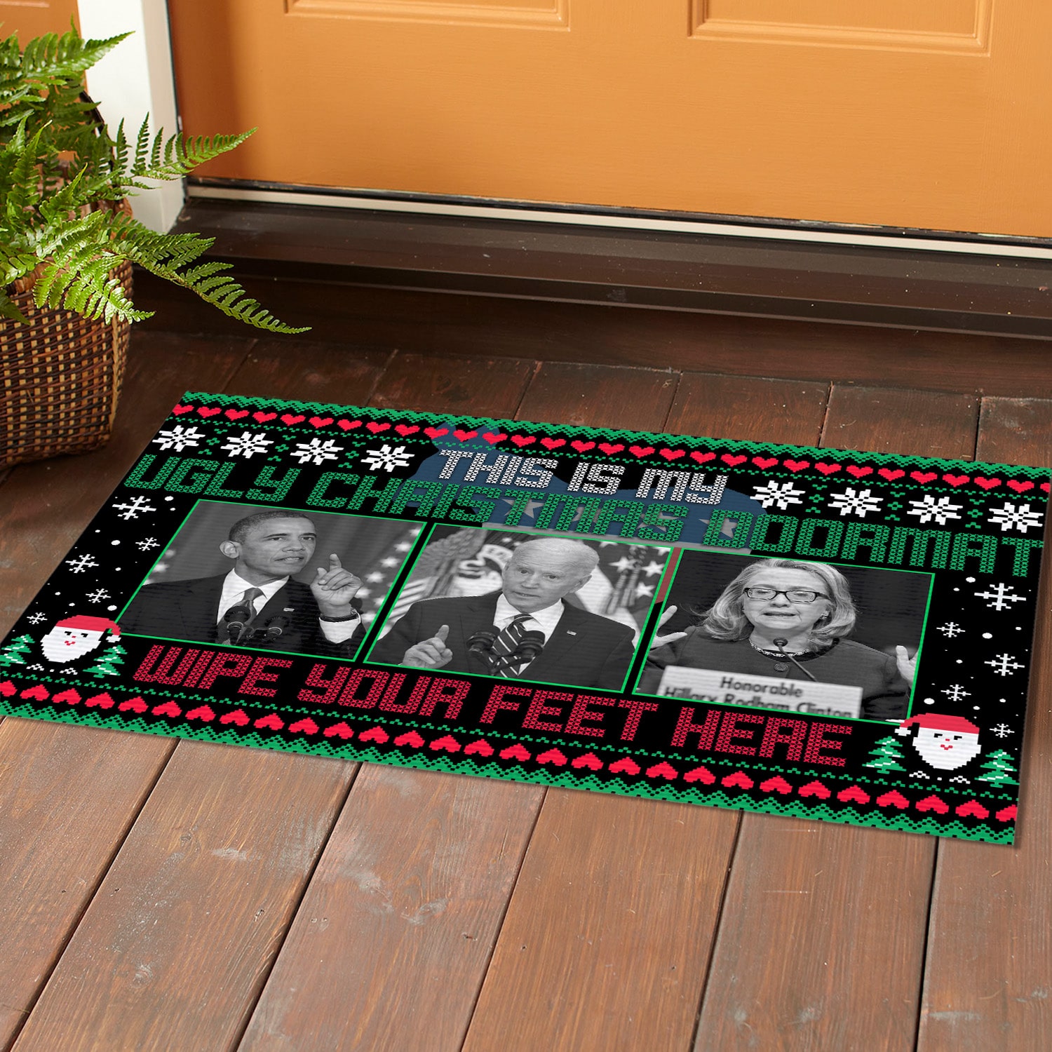 Let’s Shop This Is My Ugly Christmas Doormat Wipe Your Feet Here Biden Obama Hillary Anti Democrat Entrance Indoor Outdoor Decorative Doormat!