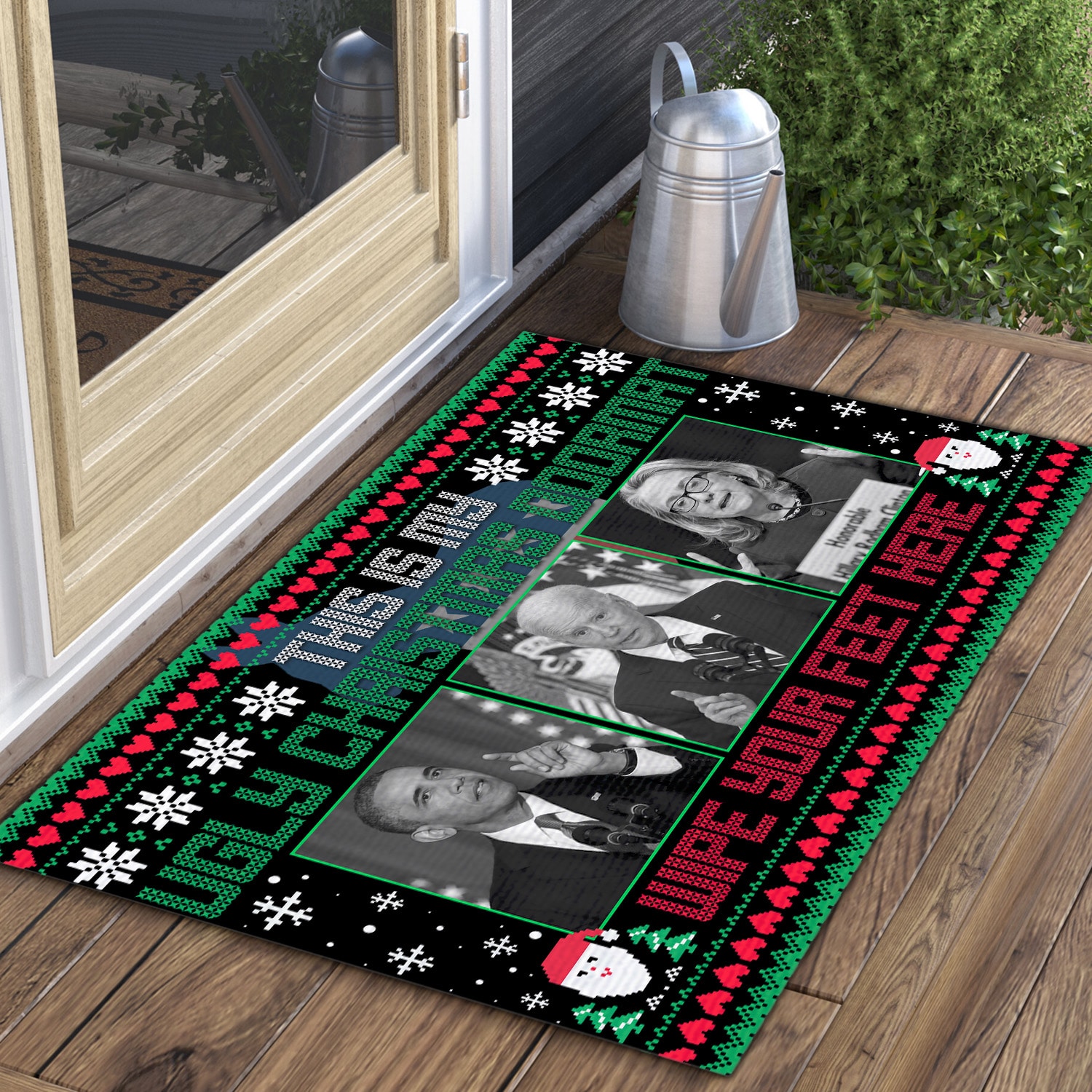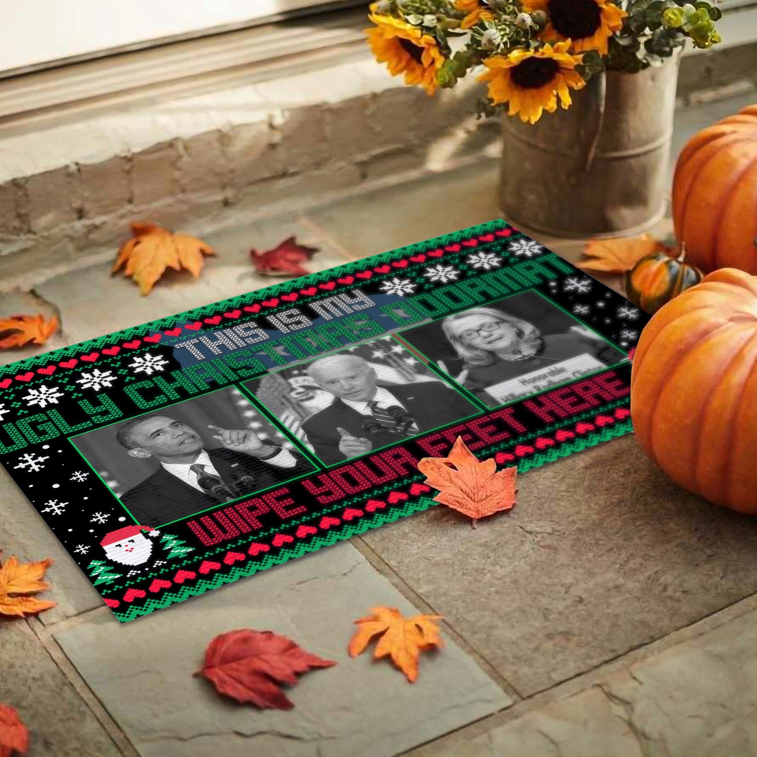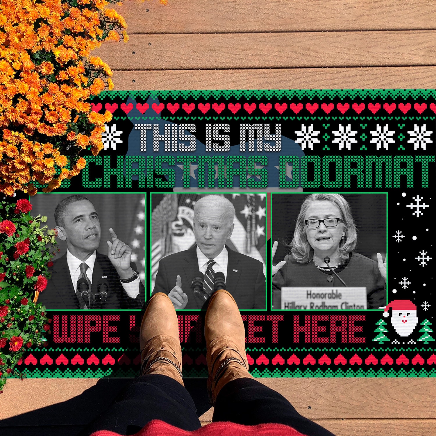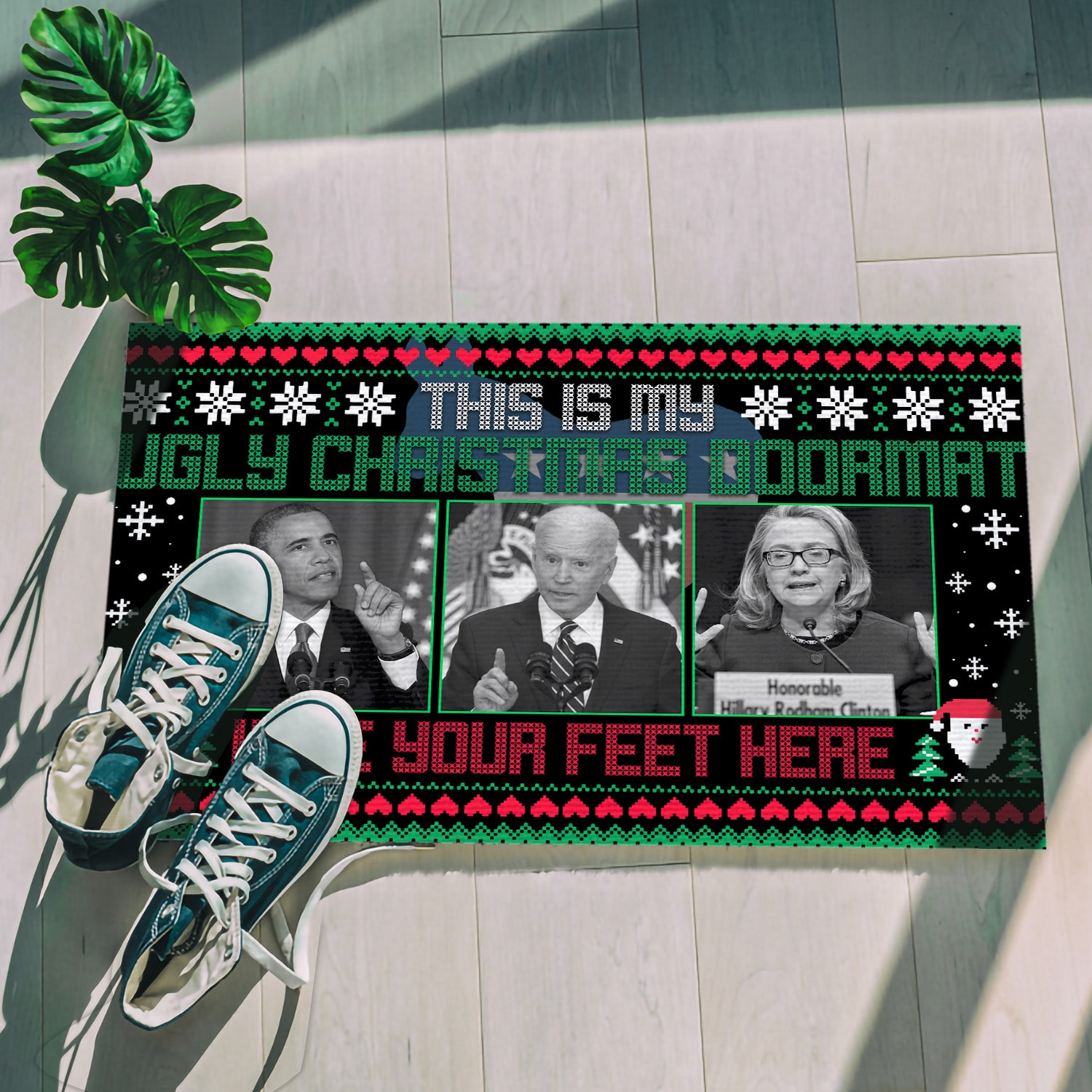Let’s Shop This Is My Ugly Christmas Doormat Wipe Your Feet Here Biden Obama Hillary Anti Democrat Entrance Indoor Outdoor Decorative Doormat!