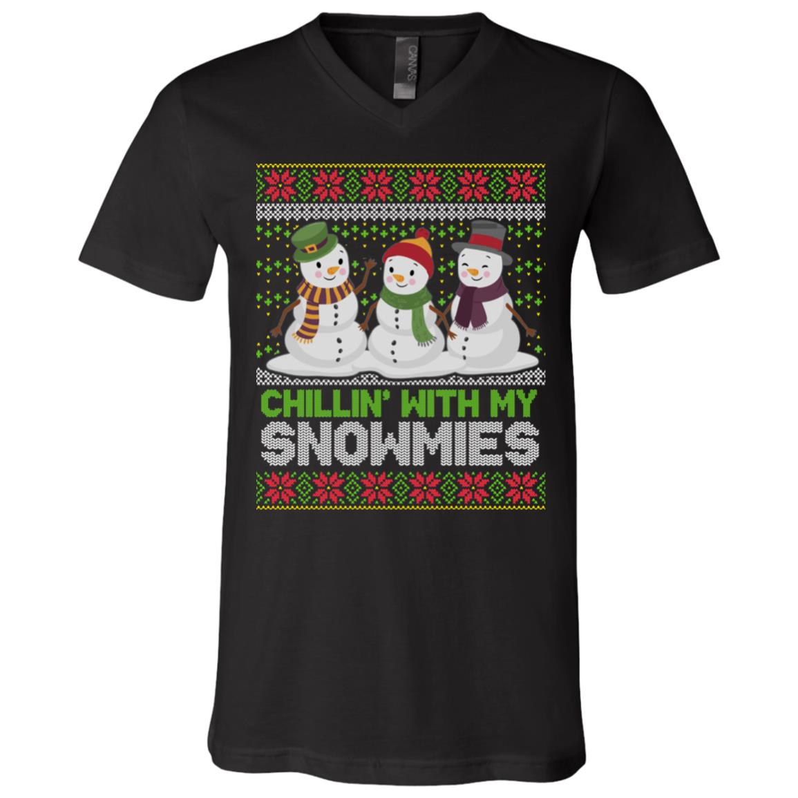 Chillin With My Snowmies Funny Ugly Christmas T-Shirt – V-Neck Tee – Snowman Christmas Shirts