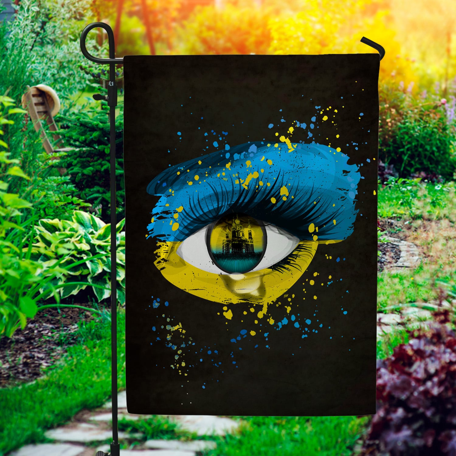 Let’s Shop Ukraine Eyes Tear Stay Strong Peace No War Flag – Wall Flag – Garden Flag!