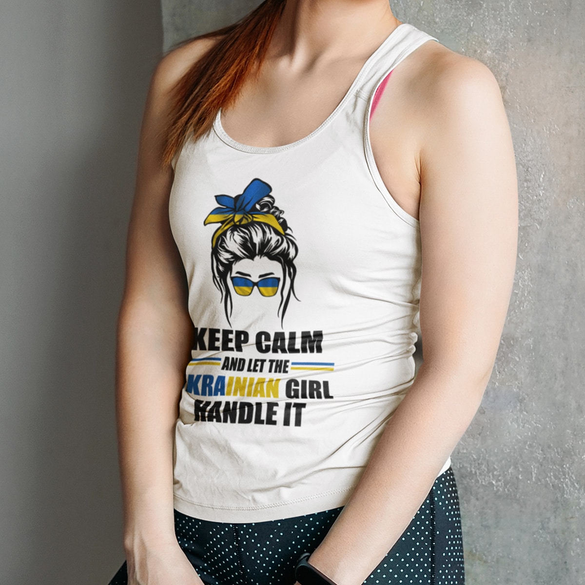 Let’s Shop Keep Calm And Let The Ukrainian Girl Handle It Messy Bun Girl Cotton Tank Top Tee – Ladies Racerback Tank!