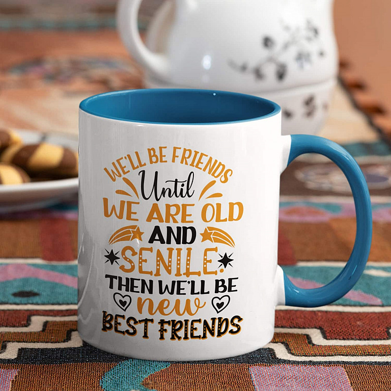 Let’s Shop We’ll Be Friends Until We’re Old And Senile Accent Coffee Mug – Funny Gift For Your Friends!