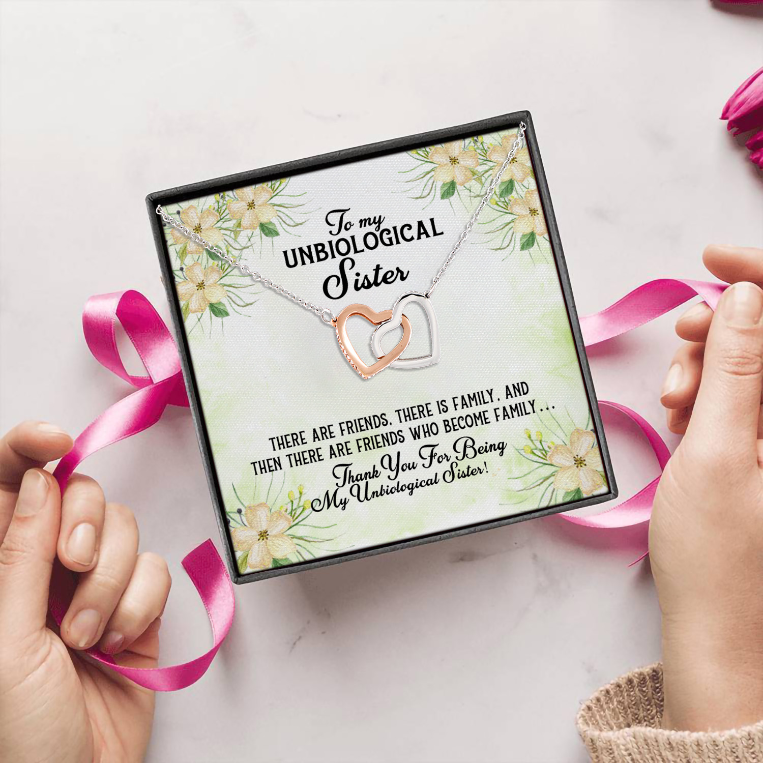 Let’s Shop To My Unbiological Sister There Are Friends There Is Family Joined Interlocking Hearts Pendant Necklace!