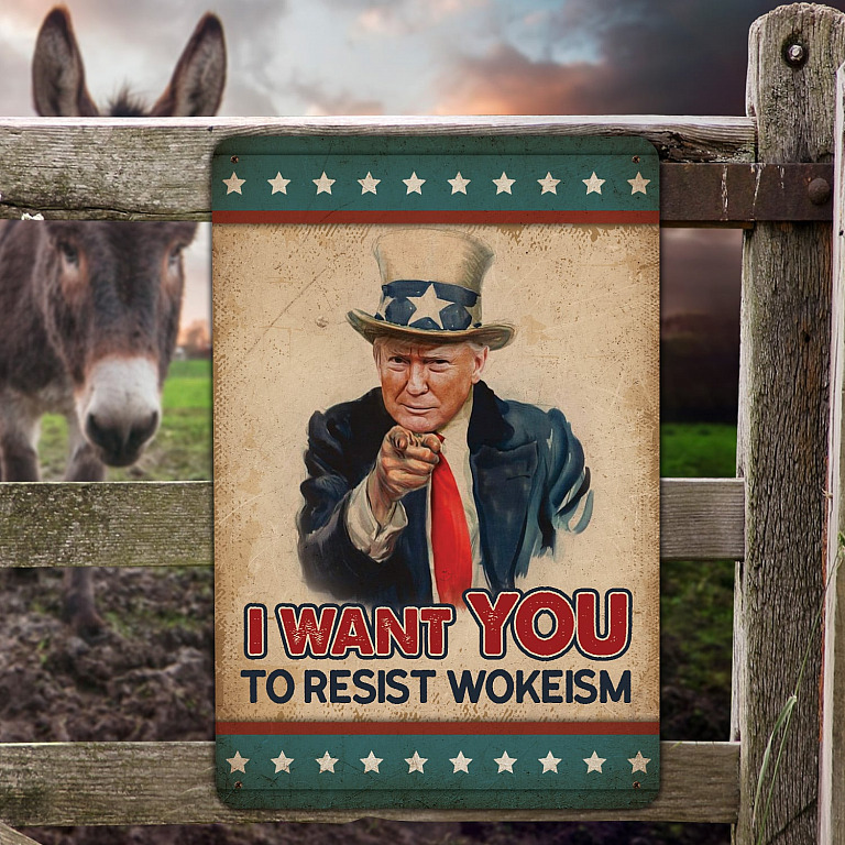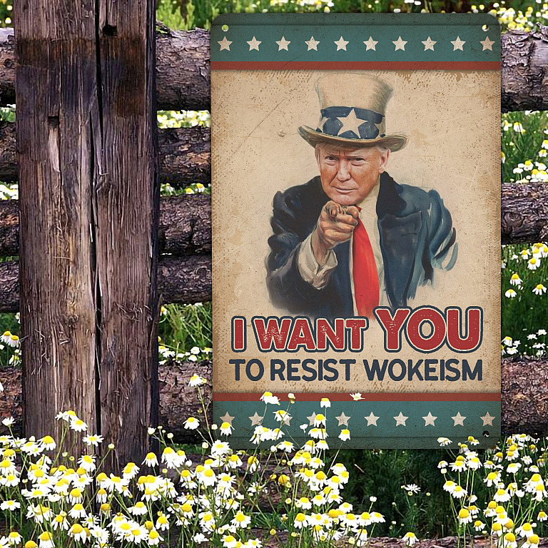 Let’s Shop I Want You To Resist Wokeism Funny Trump Decorative Metal Sign – Indoor Outdoor Decor Farmhouse!