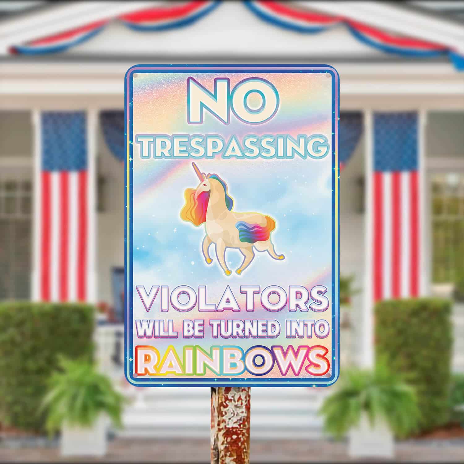 Let’s Shop No Trespassing Violators Will Be Turned Into Rainbow Metal Sign -Teenage Girl Room Decor!