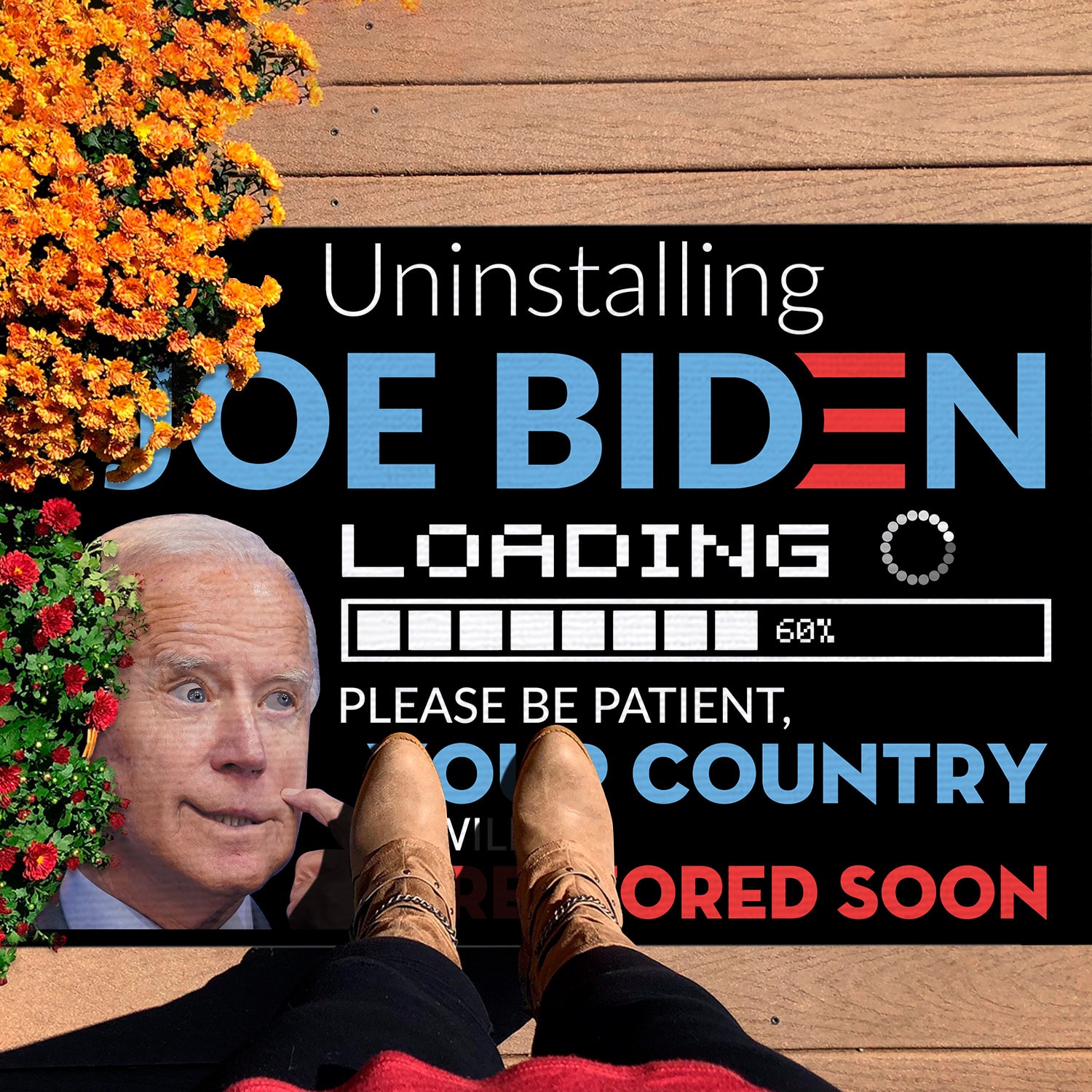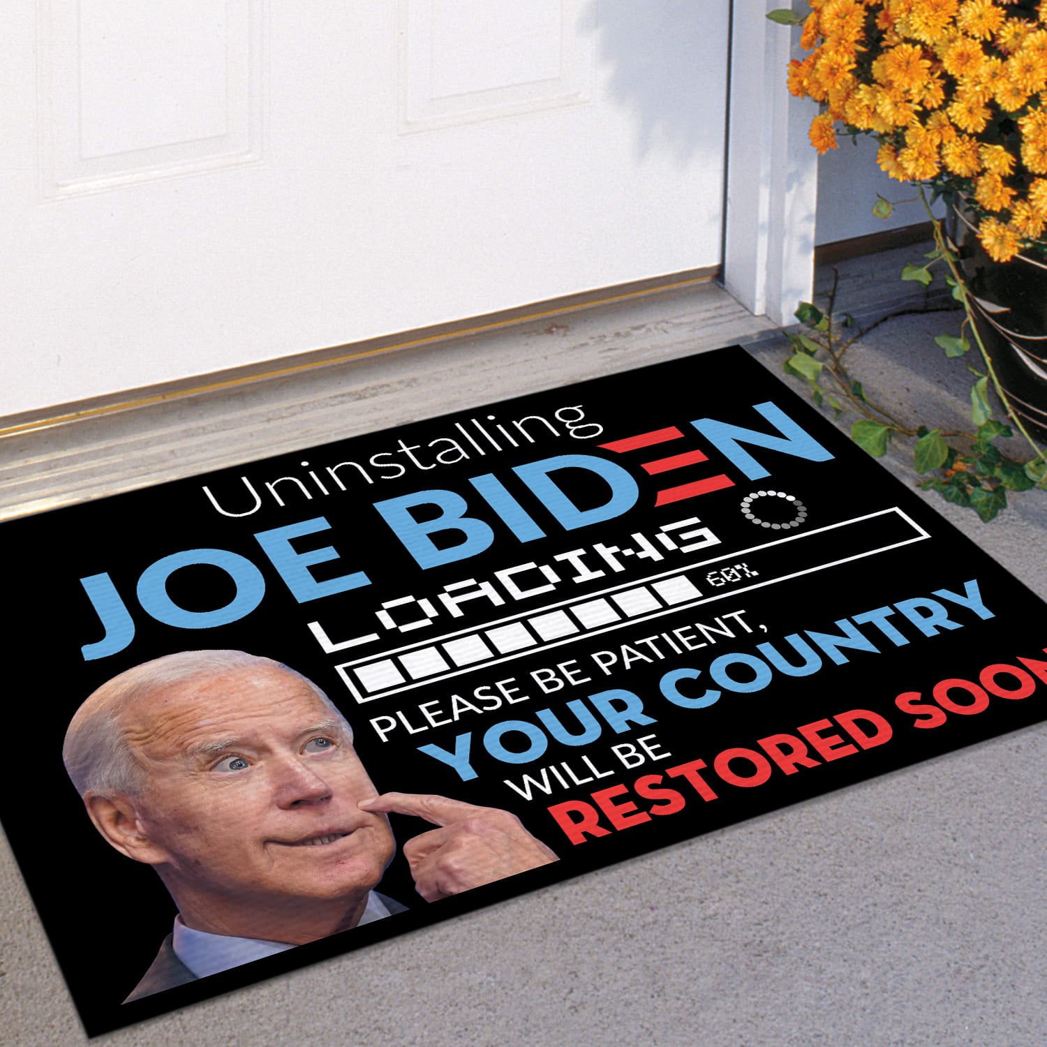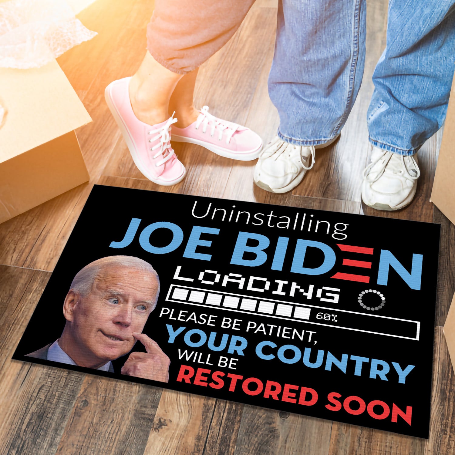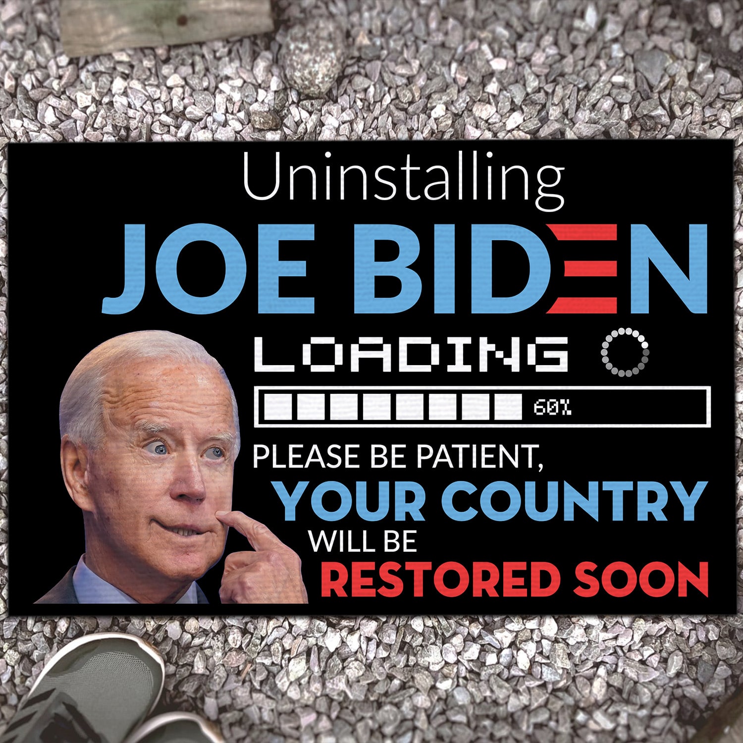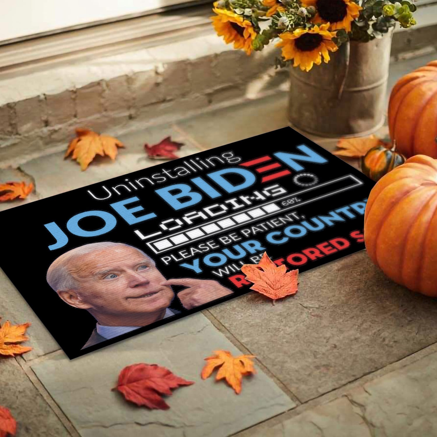 Let’s Shop Uninstalling Joe Biden Please Be Patient Your Country Will Be Restored Soon Funny Biden Entrance Indoor Outdoor Decorative Doormat!