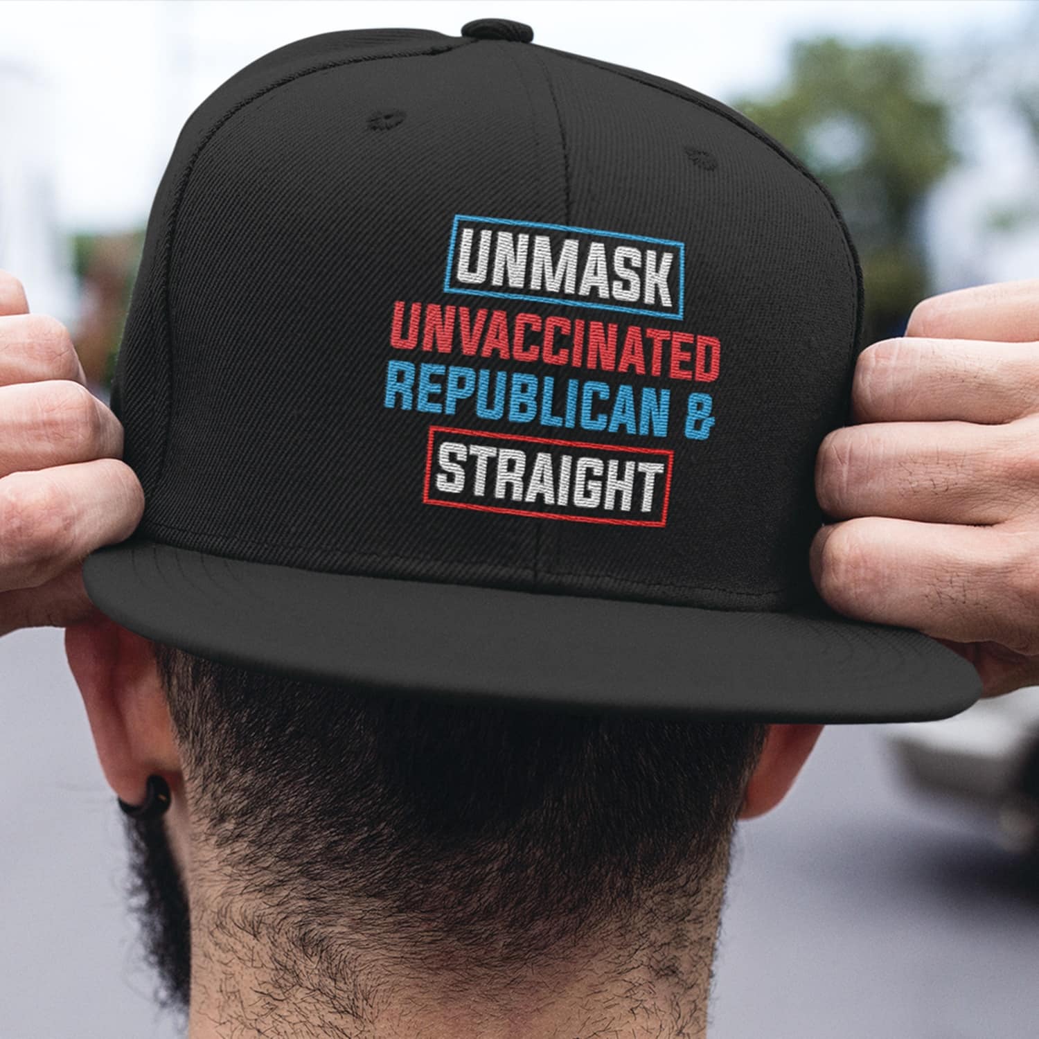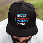 Let’s Shop Unmask Unvaccinated Republican and Straight Twill Cap – High-Profile Snapback Hat – Trucker Hat!