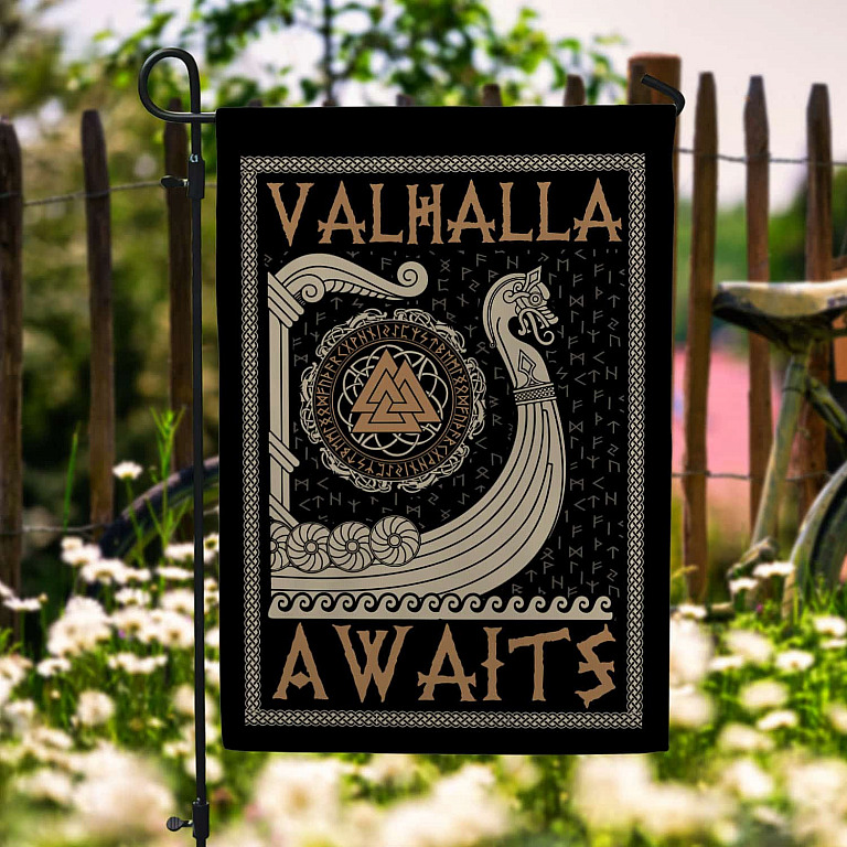 Let’s Shop Viking Warship Valhalla Awaits Garden Flag – Until Valhalla House Flag – Nordic Norsemen Vikings Flag!