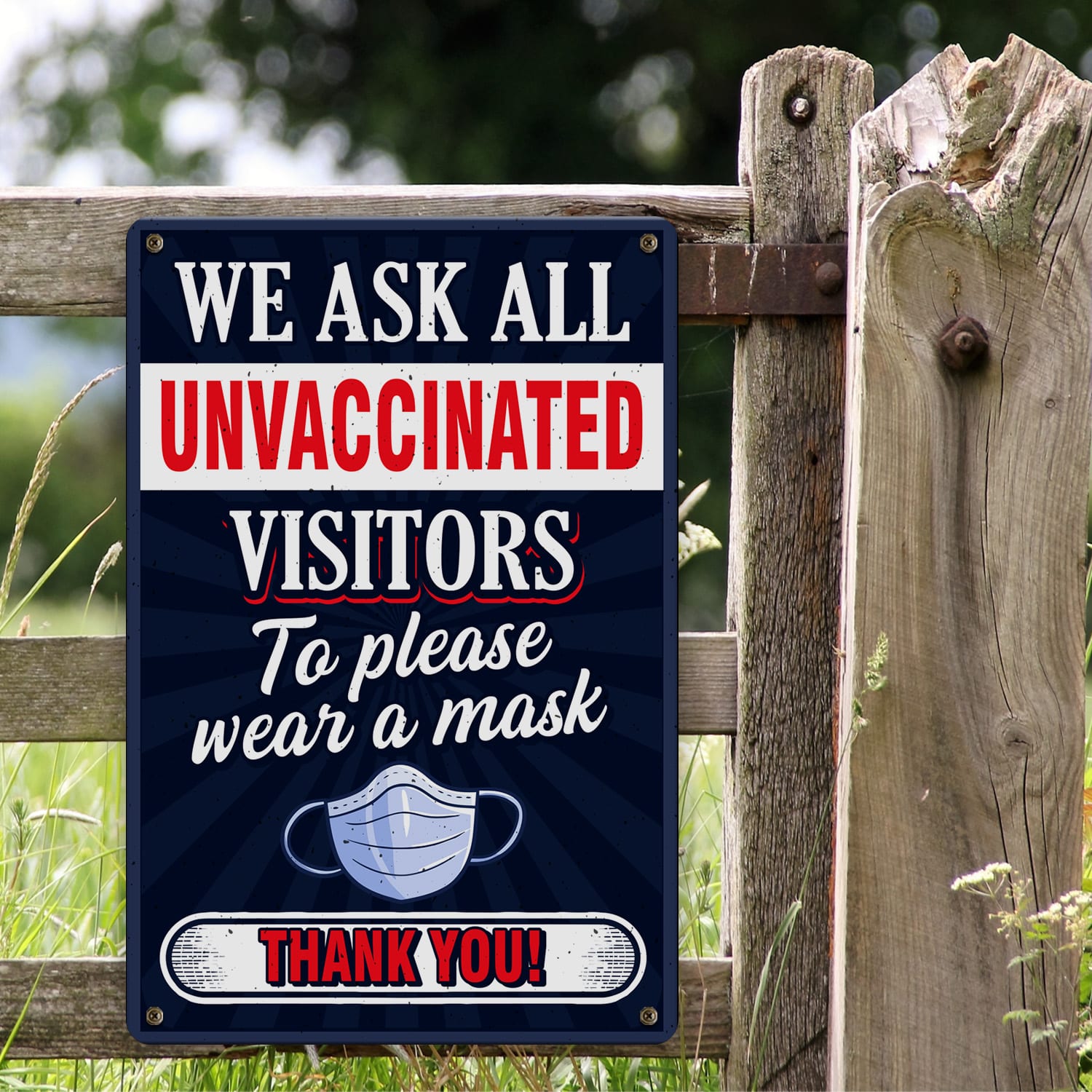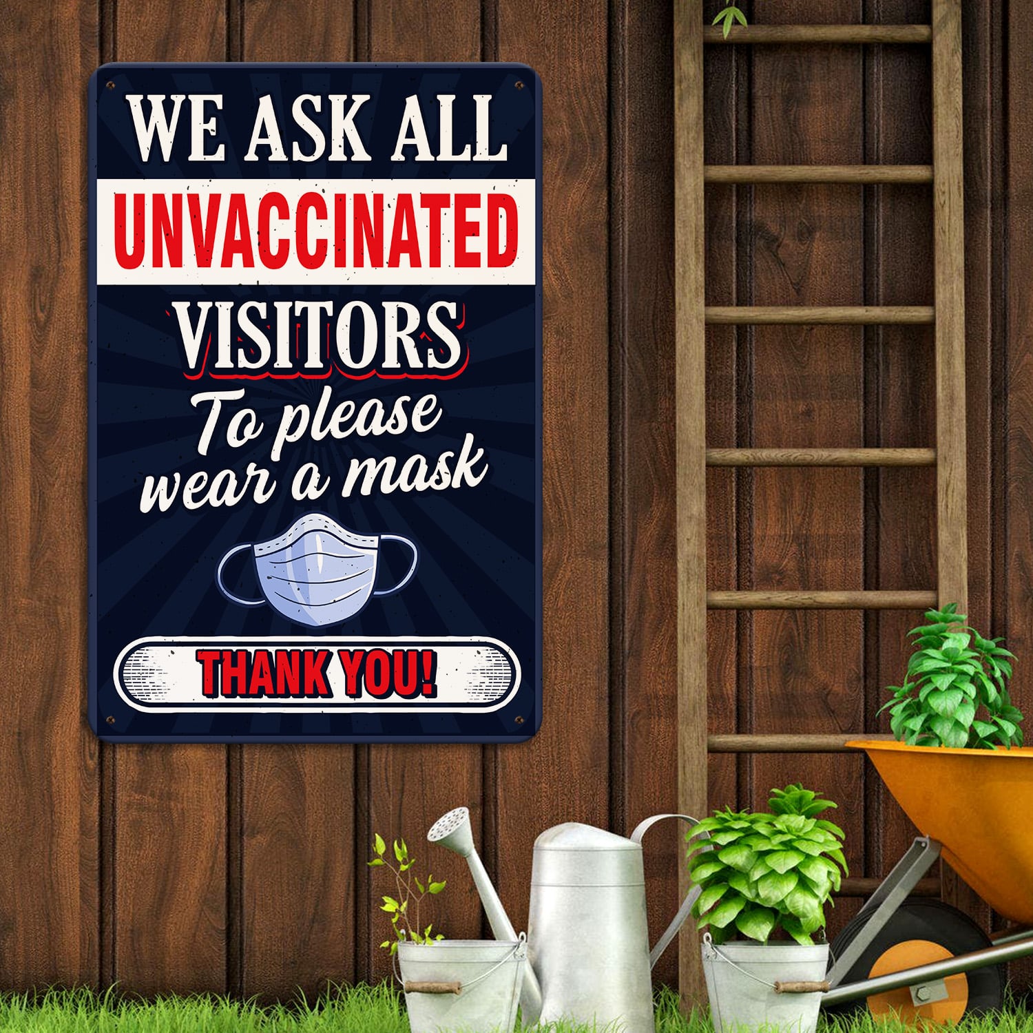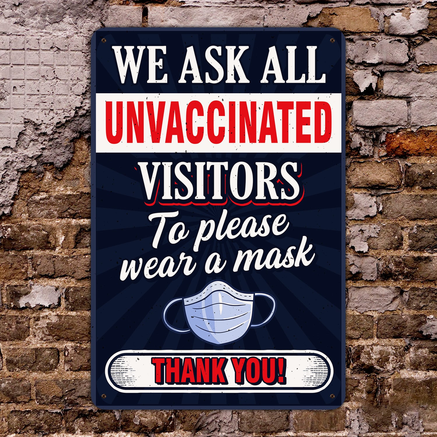 Let’s Shop We Ask All Unvaccinated Visitors to Wear a Mask – Wear a Mask Decorative Metal Sign!