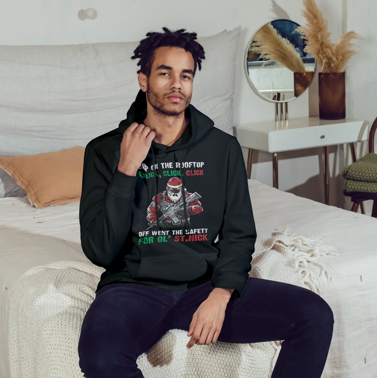 Are you spending too much time to find creative merchandise for you or suitable & special gifts for your mommy, your daddy, your son, your daughter, your children, your friends or someone you love? The struggle is over because we have various Tactical Santa Hoodie, Tactical Santa Sweatshirt, Tactical Santa Shirt, Tactical Santa Christmas Sweater, Veteran Santa Hoodie, Military Santa Hoodie, Santa Claus Up on the Rooftop Click Click Click Off Went the Safety for Ol’ St. Nick Shirt, Soldier Santa Hoodie, Santa’s on Patrol for 2020 Hoodie, Patriot Santa, Santa Gun Hoodie, Santa with Gun Sweater, Gun Santa Christmas Sweater, Ugly Christmas Sweater Santa with Guns which will make perfect presents for your beloveds. In order to make your present stand out, we have created lots of unique and awesome customized photo gifts & personalized designs.