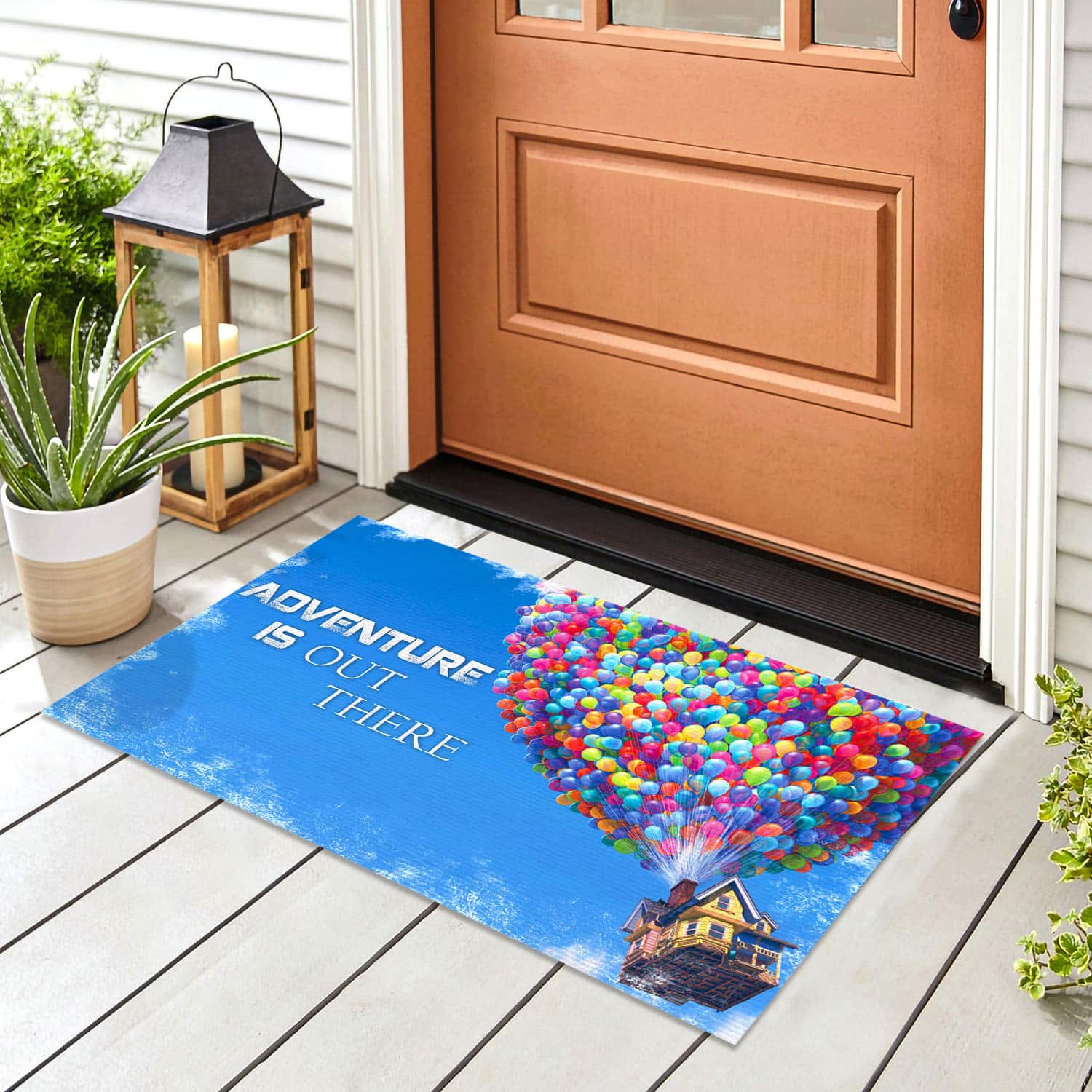 Let’s Shop Adventure Is Out There Outdoor Indoor Doormat – Up House Balloon Welcome Door Mat Rug – Housewarming Gift!