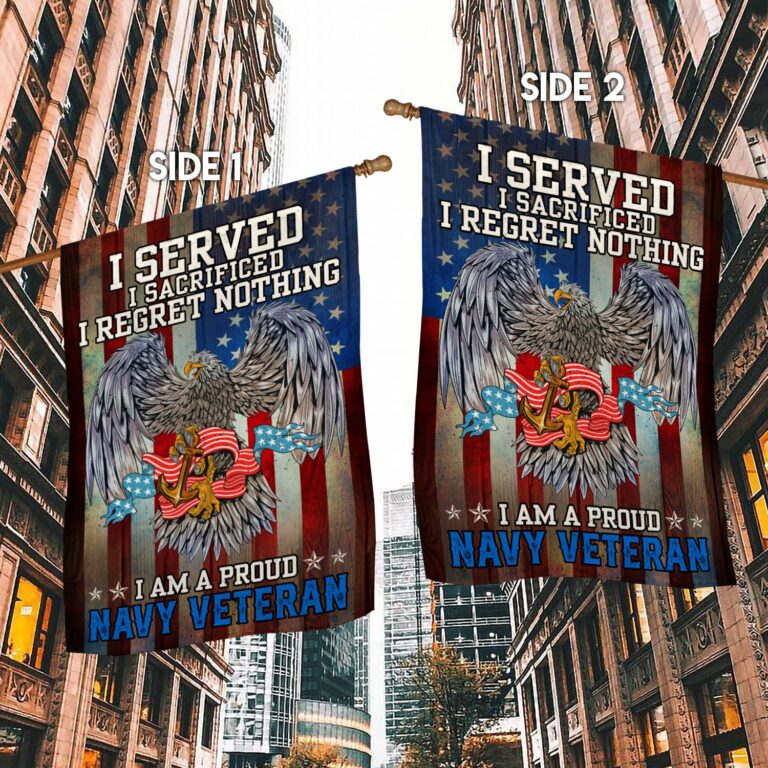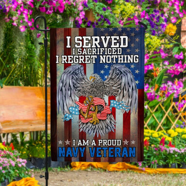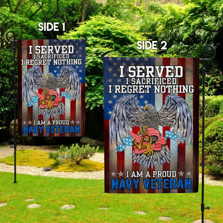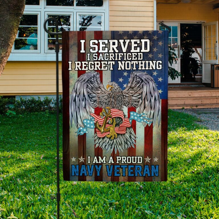 Let’s Shop I Served I Sacrificed I Regret Nothing I Am A Proud Navy Veteran Garden Flag – US Navy Veteran House Flag!
