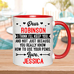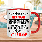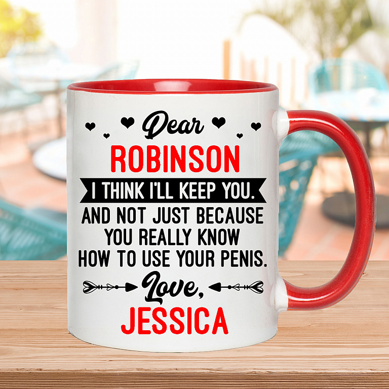 Shop Personalized I Think I’ll Keep You And Not Just Because You Really Know How To Use your Penis Accent Mug.