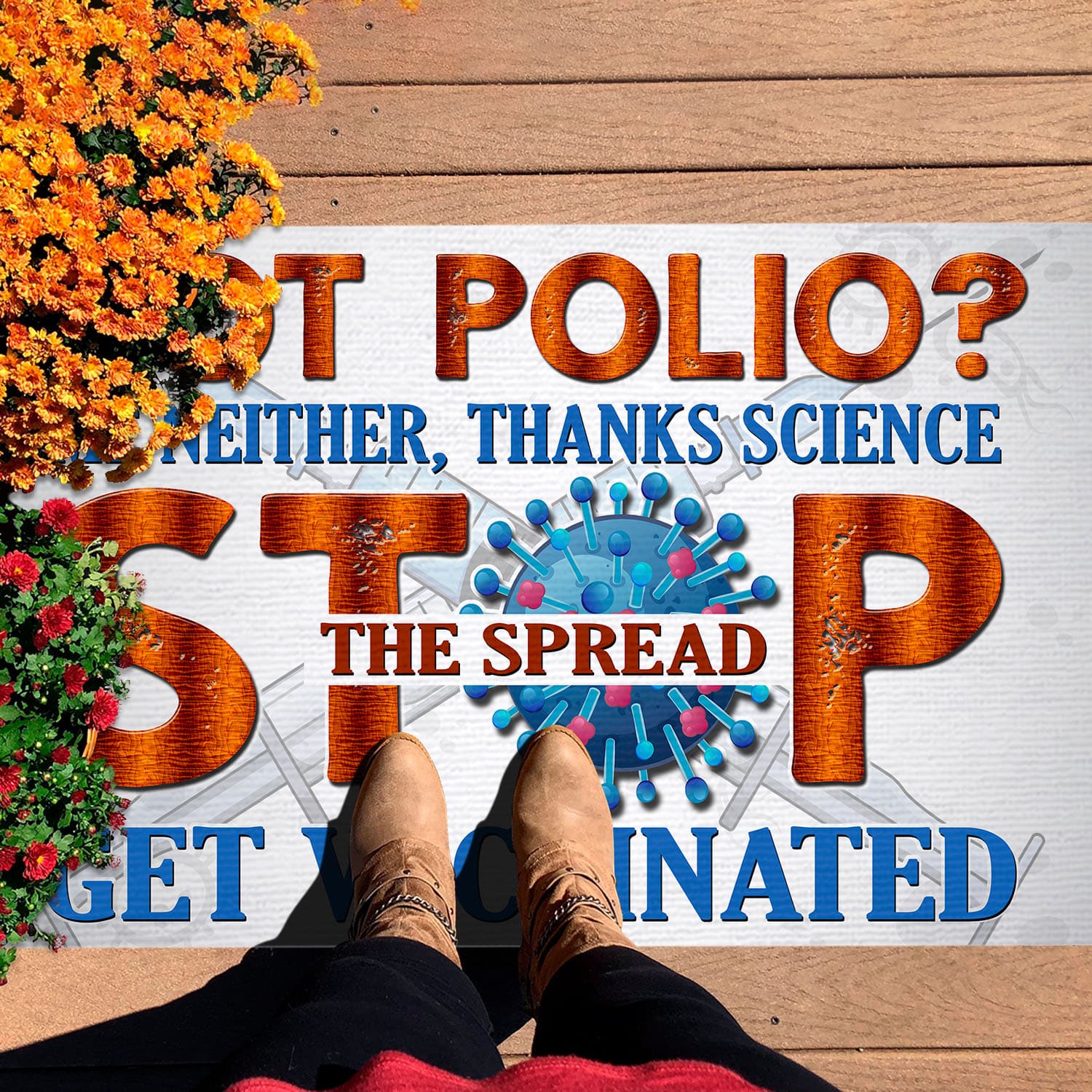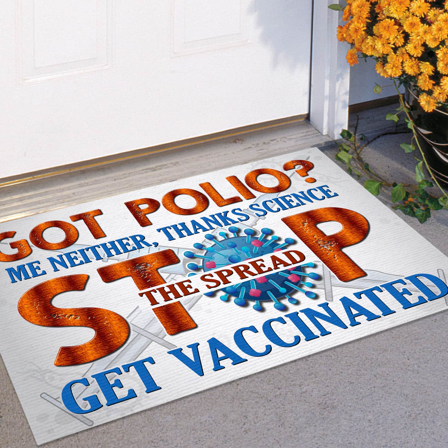 Are you spending too much time to find creative merchandise for you or suitable & special gifts for your mommy, your daddy, your son, your daughter, your children, your friends or someone you love? The struggle is over because we have various Got Polio Thanks Science Stop The Spread Get Vaccinated Outdoor Indoor Doormat, Pro Vaxxer Door Mat Welcome Entry Rug, Get Vaccinated Doormat, Get Vaccinated Door Mat, Get Vaccinated Rug, Vaccine Doormat, Welcome Vaccinated Doormat, Welcome Vaccinated Door Mat, Vaccine Door Mat, Pro Vaccine Doormat, Fully Vaccinated Doormat, Syringe Doormat, Anti Anti Vaxxer Doormat which will make perfect presents for your beloveds. In order to make your present stand out, we have created lots of unique and awesome customized photo gifts & personalized designs.