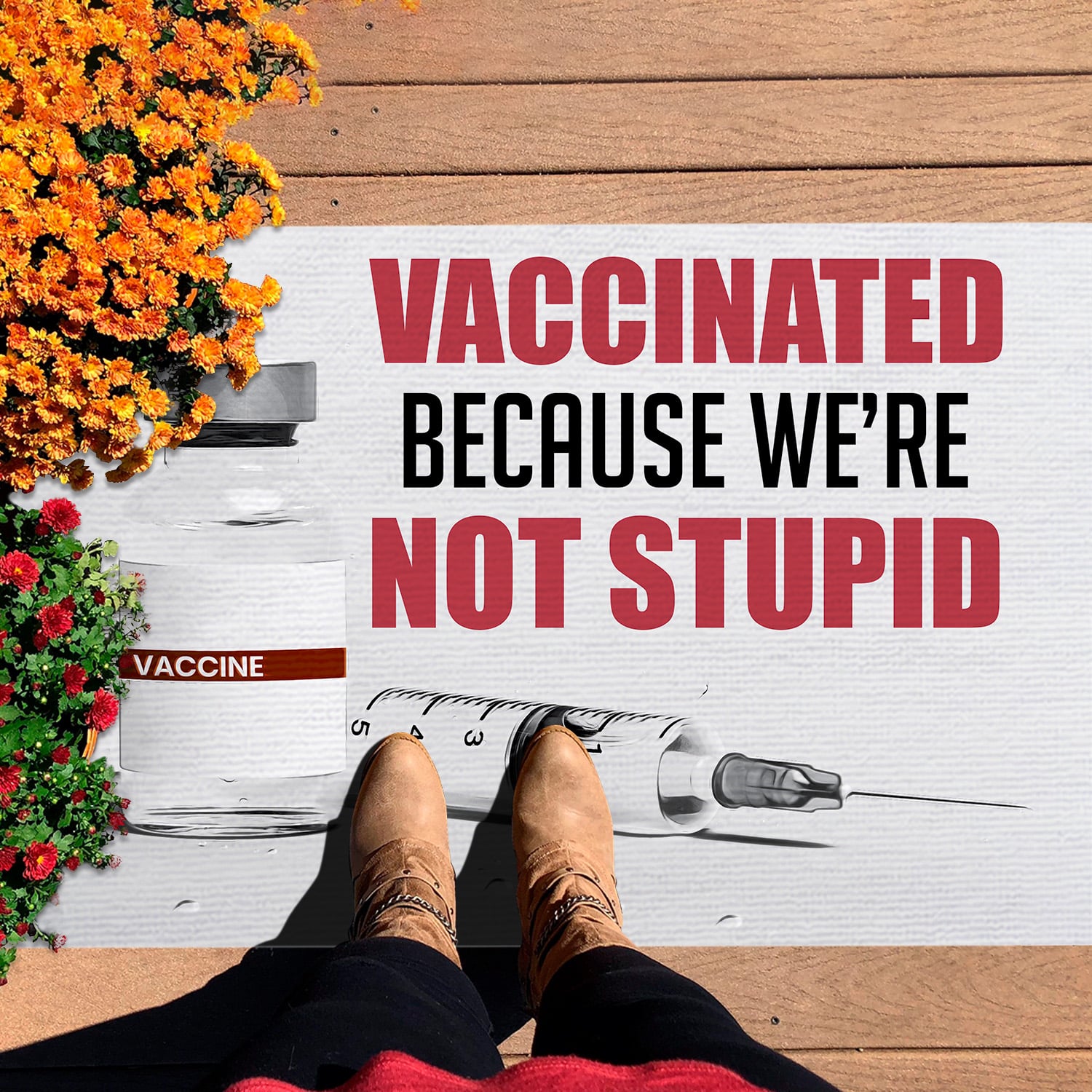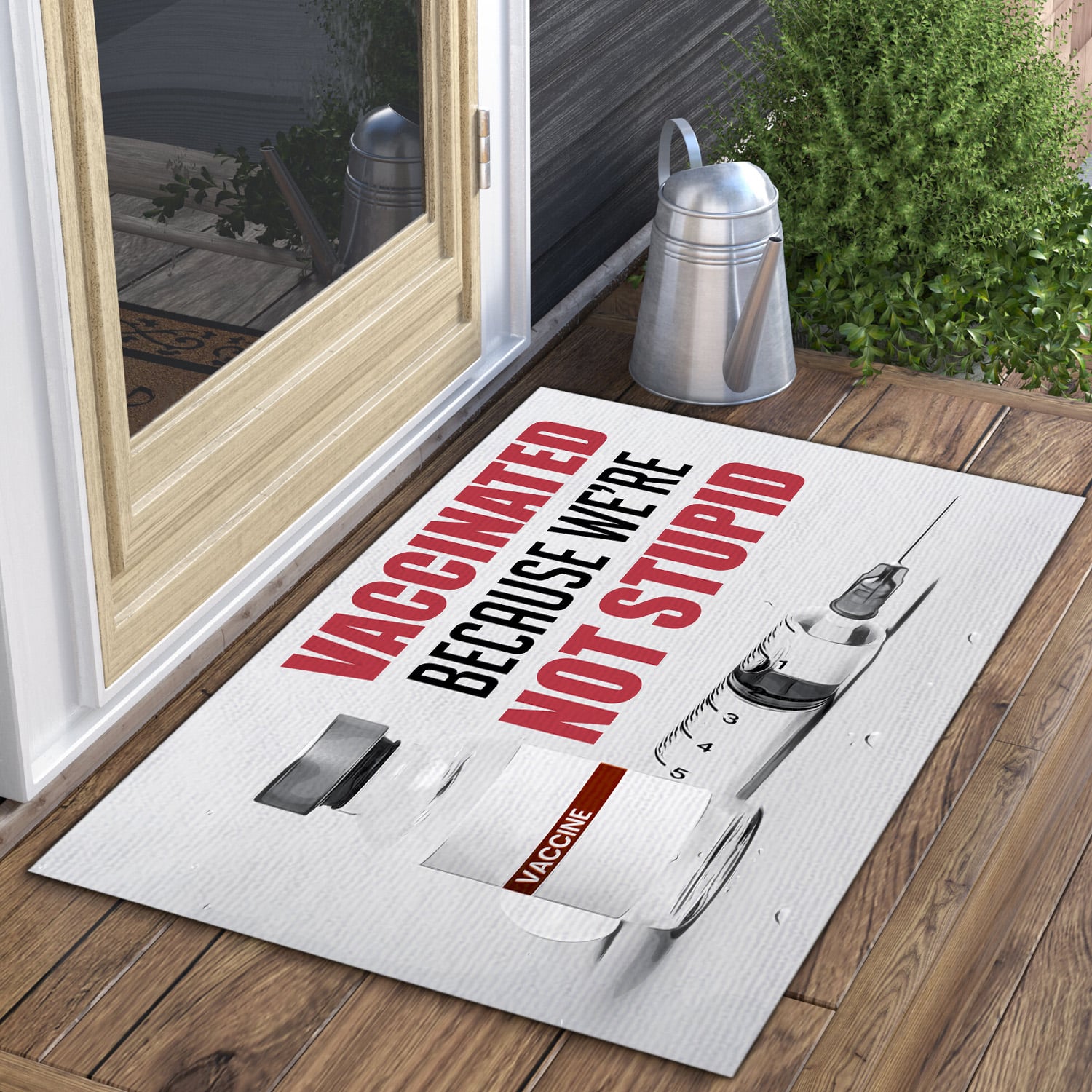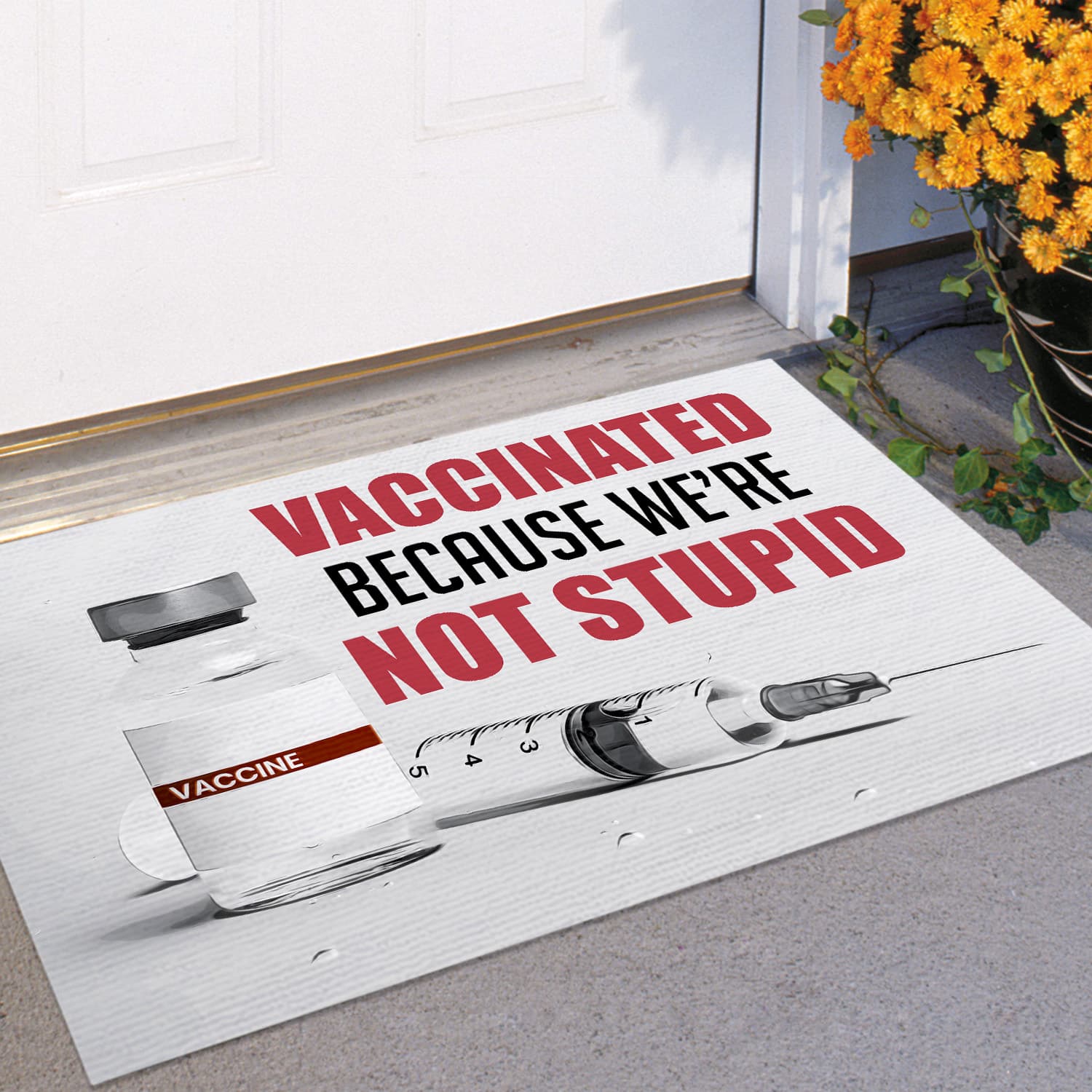 Let’s Shop Vaccinated Because We’re Not Stupid Doormat Proud Vaccinated Entrance Indoor Outdoor Decorative Doormat!