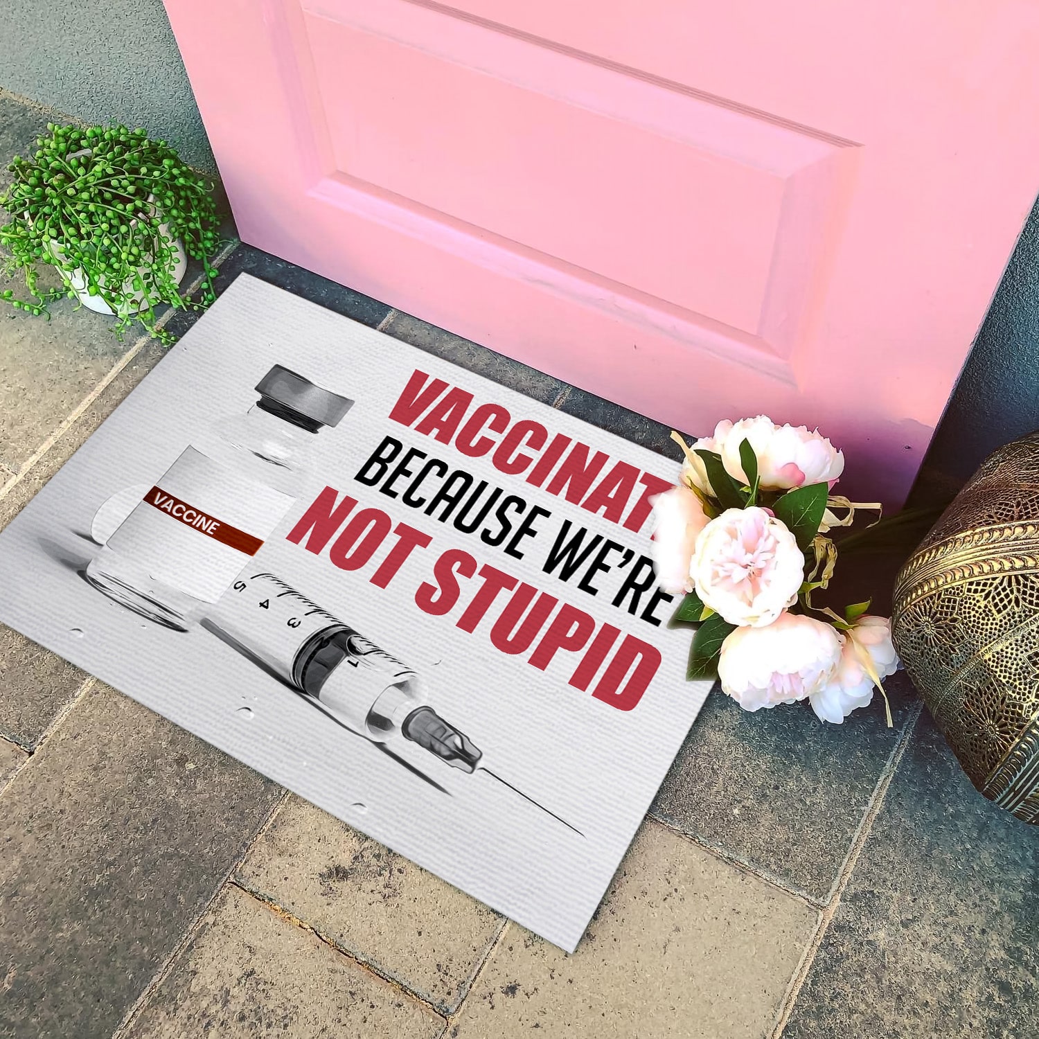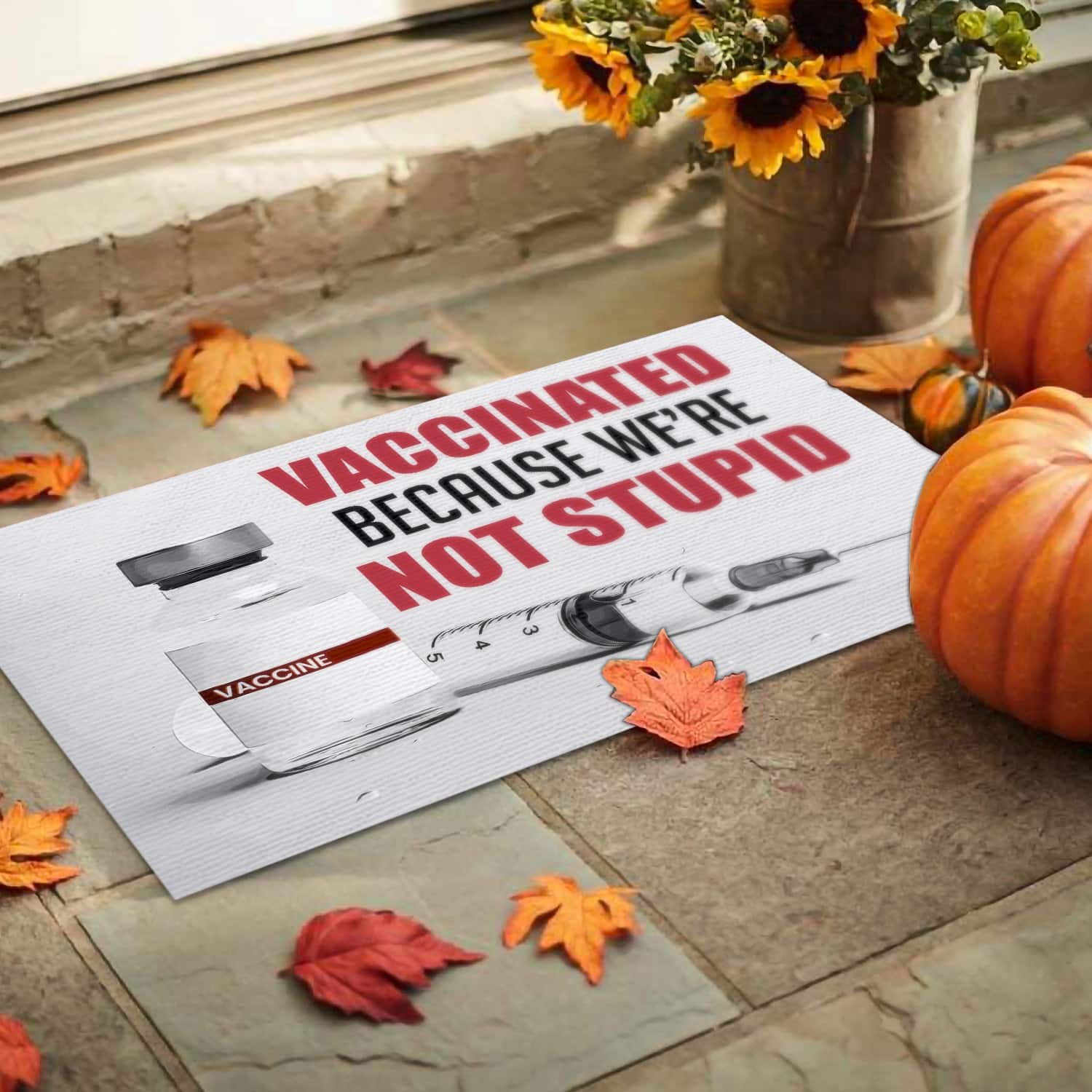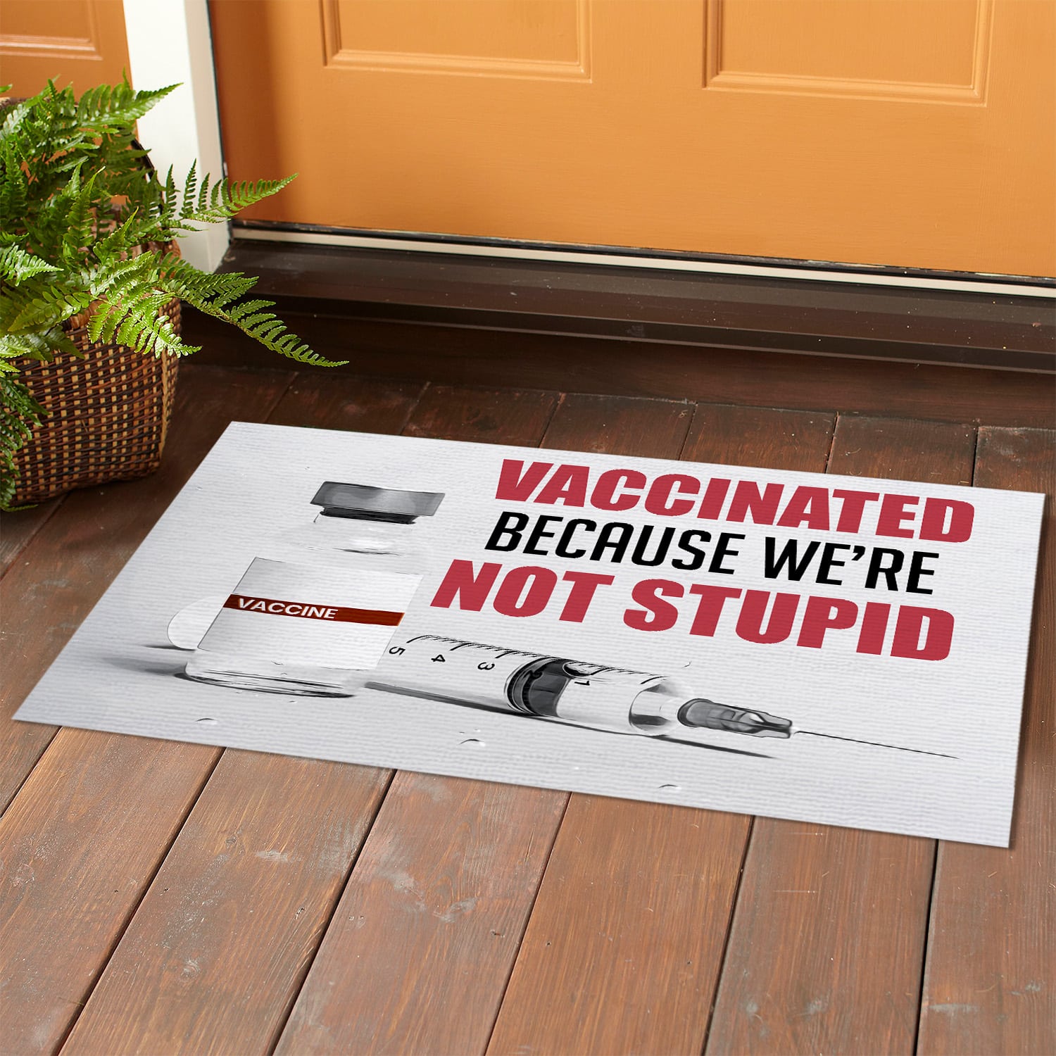 Let’s Shop Vaccinated Because We’re Not Stupid Doormat Proud Vaccinated Entrance Indoor Outdoor Decorative Doormat!