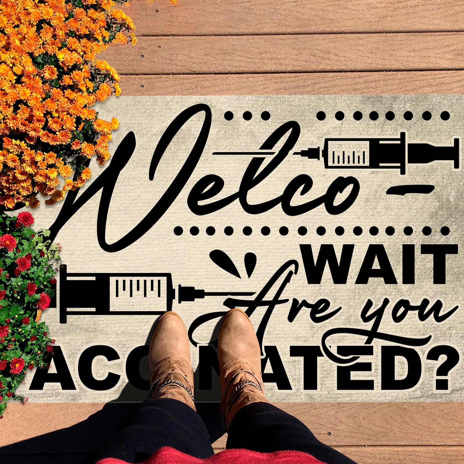 Are you spending too much time to find creative merchandise for you or suitable & special gifts for your mommy, your daddy, your son, your daughter, your children, your friends or someone you love? The struggle is over because we have various Welco Wait Are You Vaccinated Outdoor Indoor Doormat, Pro Vaxxer Doormat, Get Vaccinated Door Mat Welcome Entry Rug, Get Vaccinated Doormat, Get Vaccinated Door Mat, Get Vaccinated Rug which will make perfect presents for your beloveds. In order to make your present stand out, we have created lots of unique and awesome customized photo gifts & personalized designs.