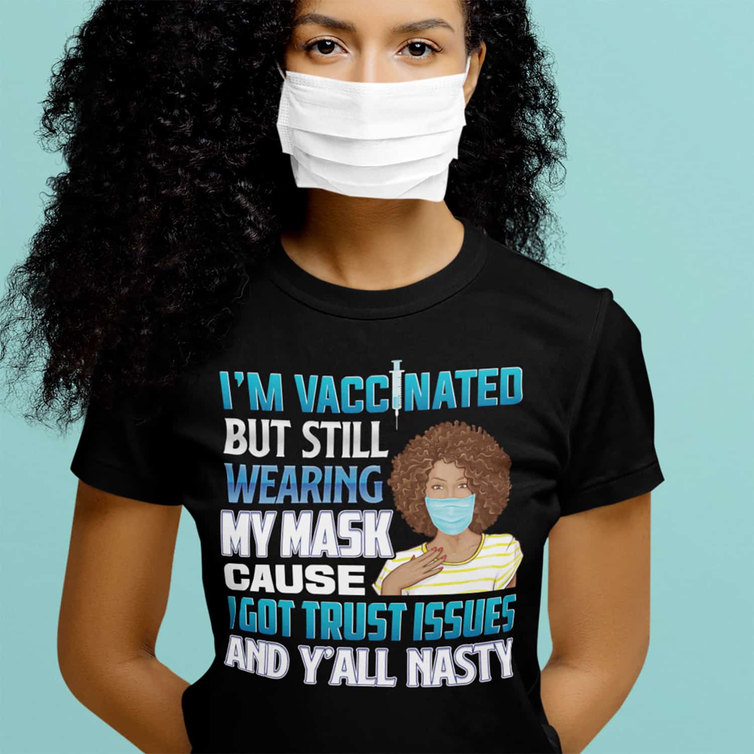 Are you spending too much time to find creative merchandise for you or suitable & special gifts for your mommy, your daddy, your son, your daughter, your children, your friends or someone you love? The struggle is over because we have various I Am Vaccinated But Still Wearing My Mask Cause I Got Trust Issues And Y’All Nasty T-shirt – V-neck Tee, Vaccinated Shirt, Y’all Nasty Shirt, Nasty Woman Shirt, Nasty T Shirt, Nasty Savage Shirt, Vaccine Shirt, Pro Vaccine Shirt, Im Vaccinated Shirt, Fully Vaccinated T Shirt, Got Vaccinated Shirt, Face Mask Shirt, Wear Your Mask Shirt, Afro Woman Shirt, Black Women Shirt which will make perfect presents for your beloveds. In order to make your present stand out, we have created lots of unique and awesome customized photo gifts & personalized designs.