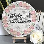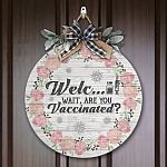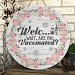 Let’s Shop Welcome Wait Are You Vaccinated Funny Welcome Decorative Circle Wooden Door Sign – Front Porch Sign!