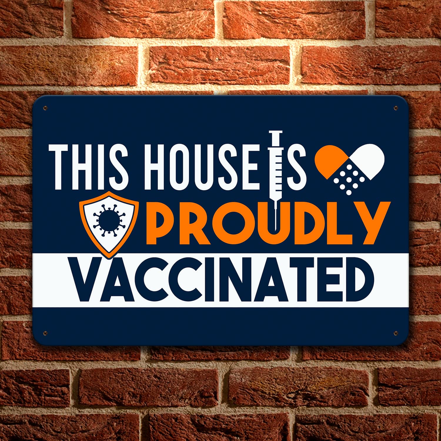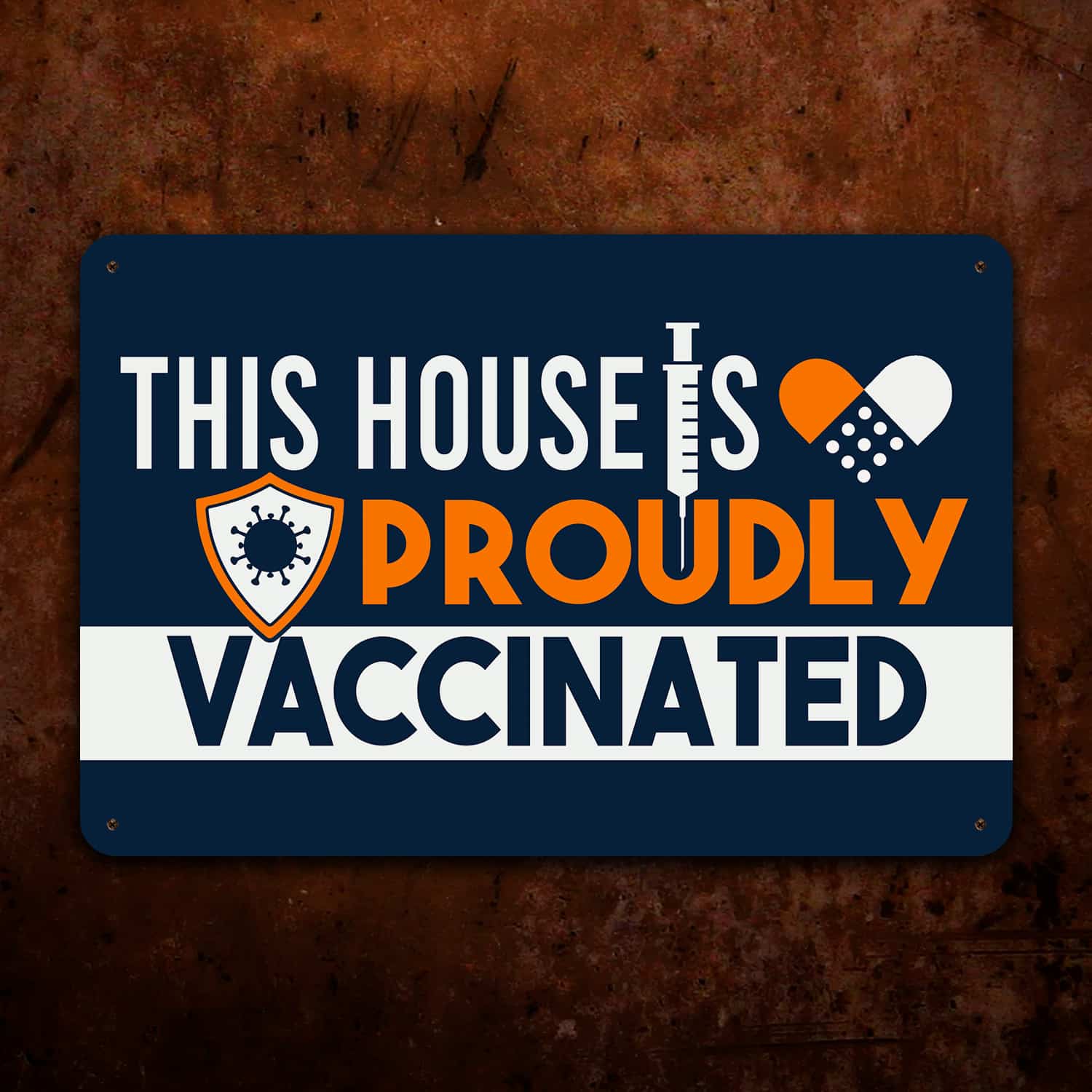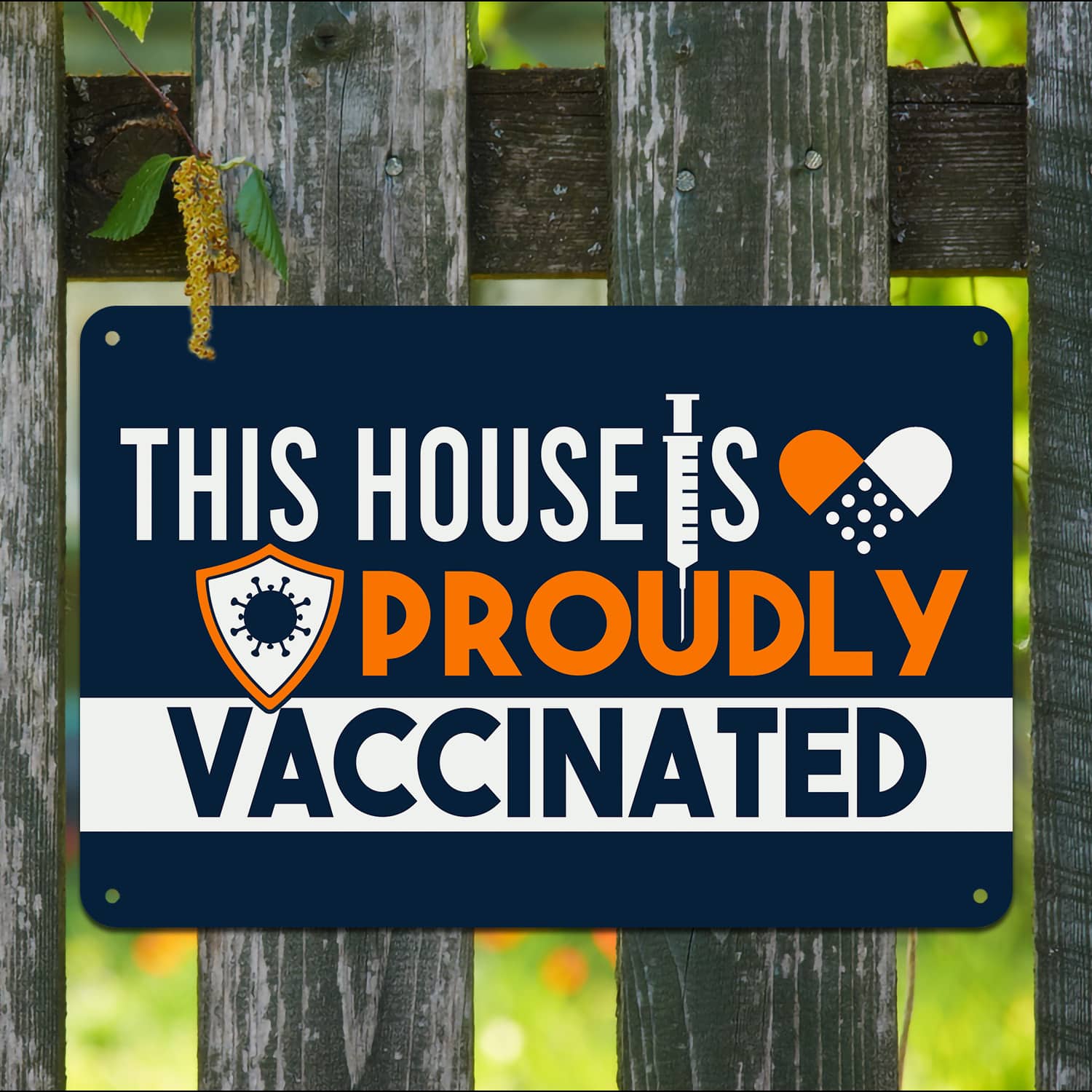 Let’s Shop This House is Proudly Vaccinated Decorative Metal Sign – Vaccine Indoor Outdoor Decor!