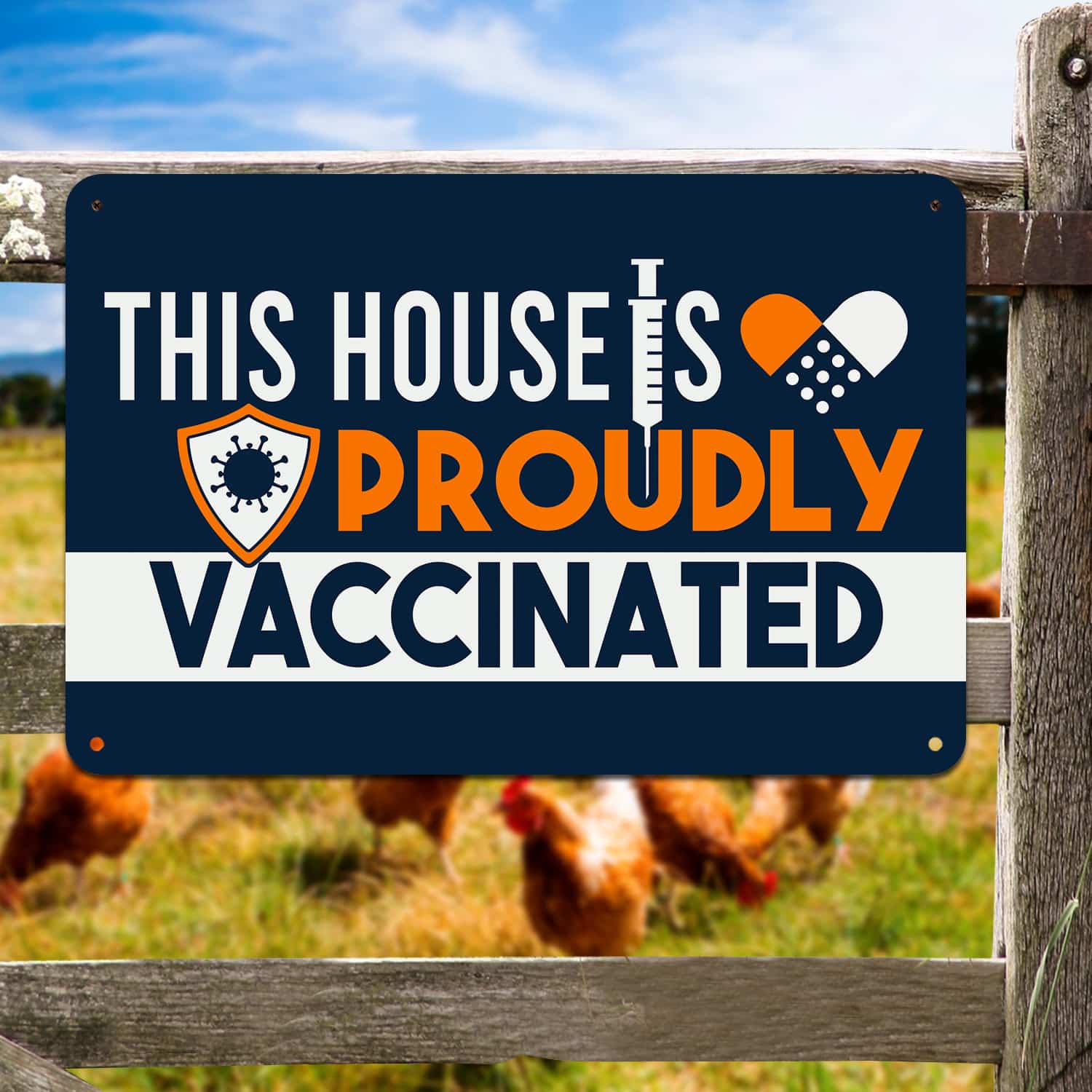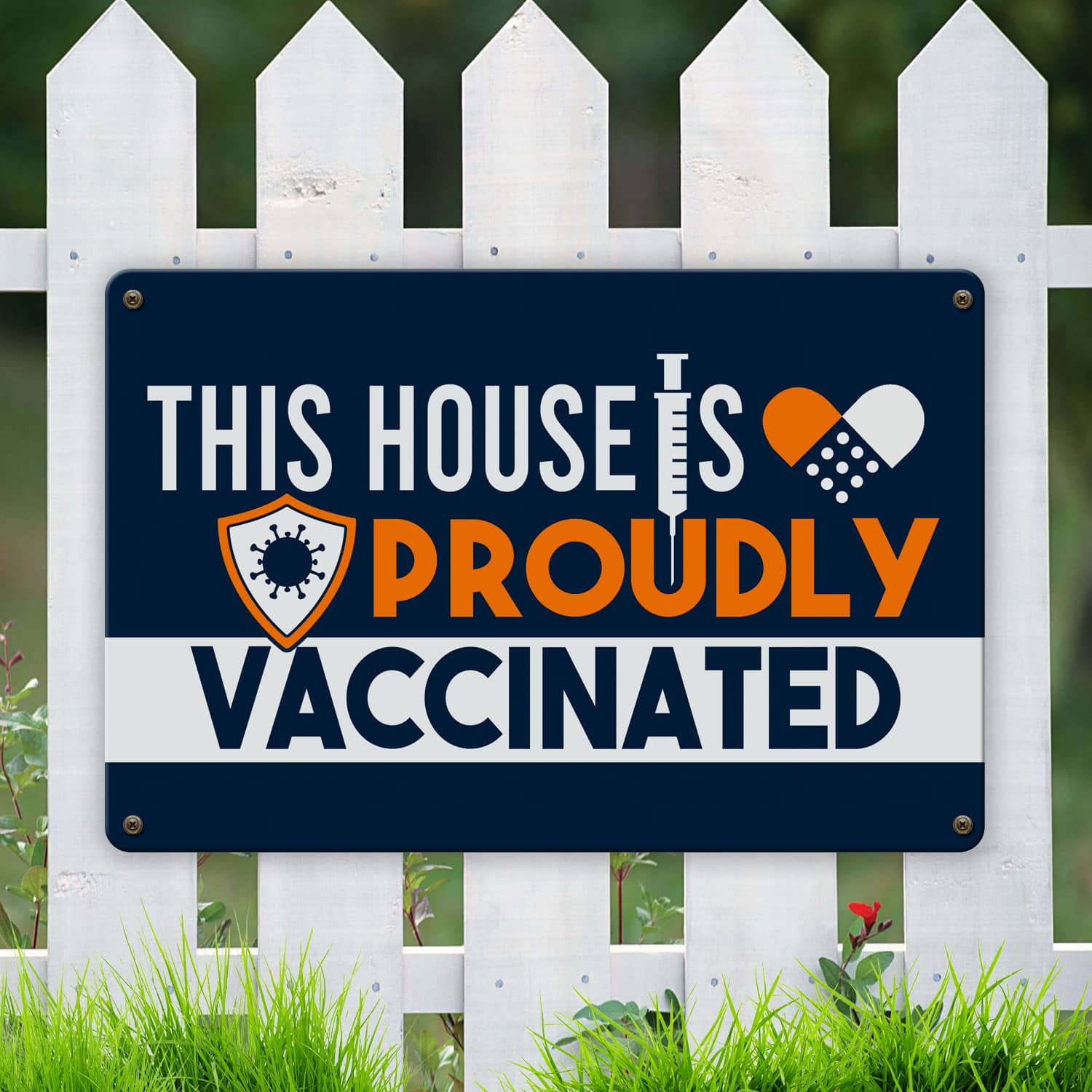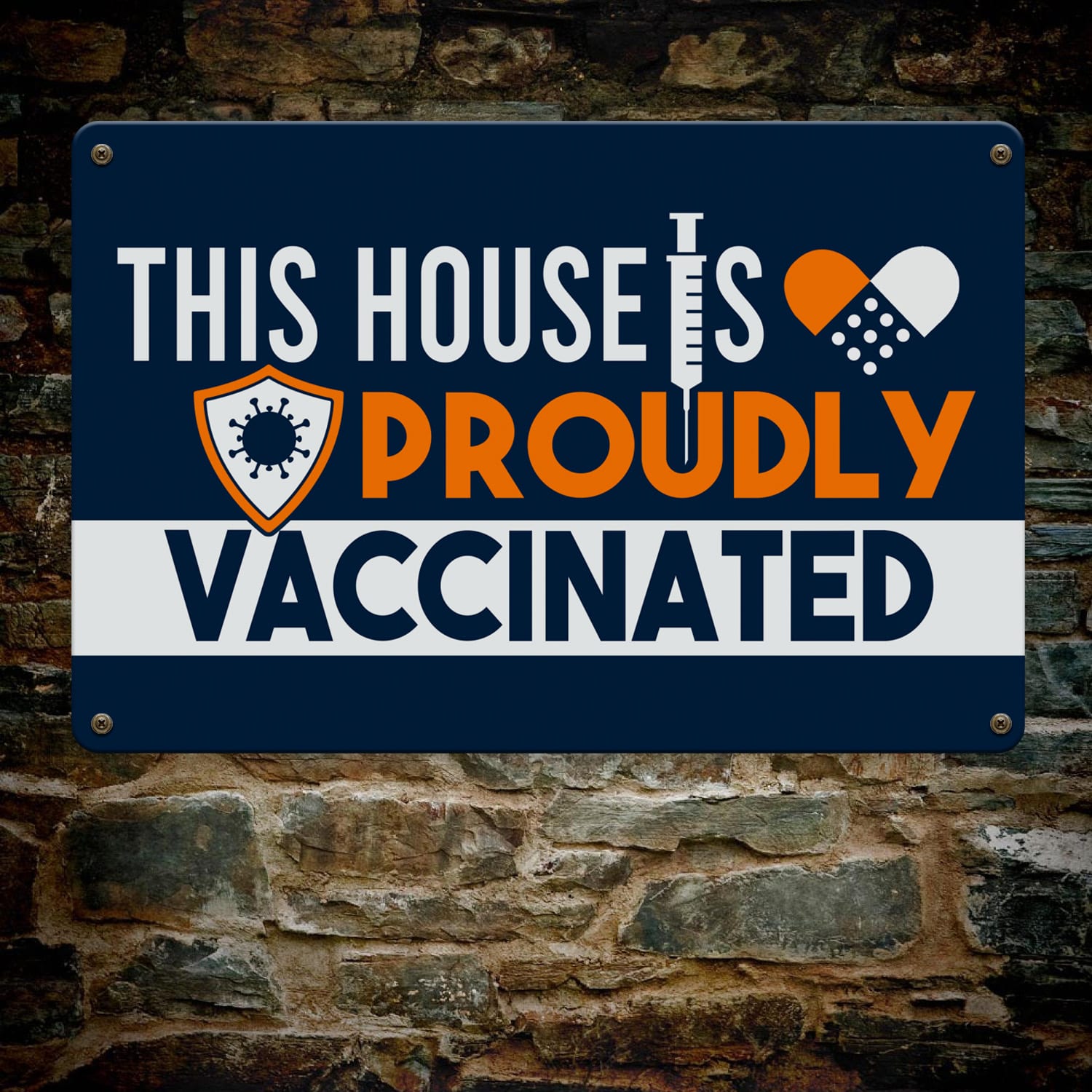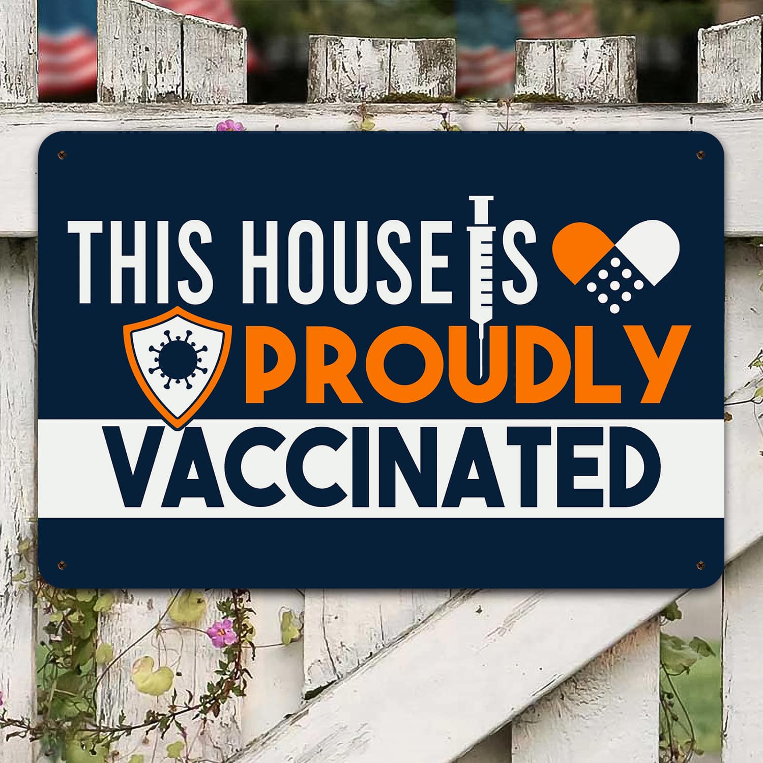 Let’s Shop This House is Proudly Vaccinated Decorative Metal Sign – Vaccine Indoor Outdoor Decor!