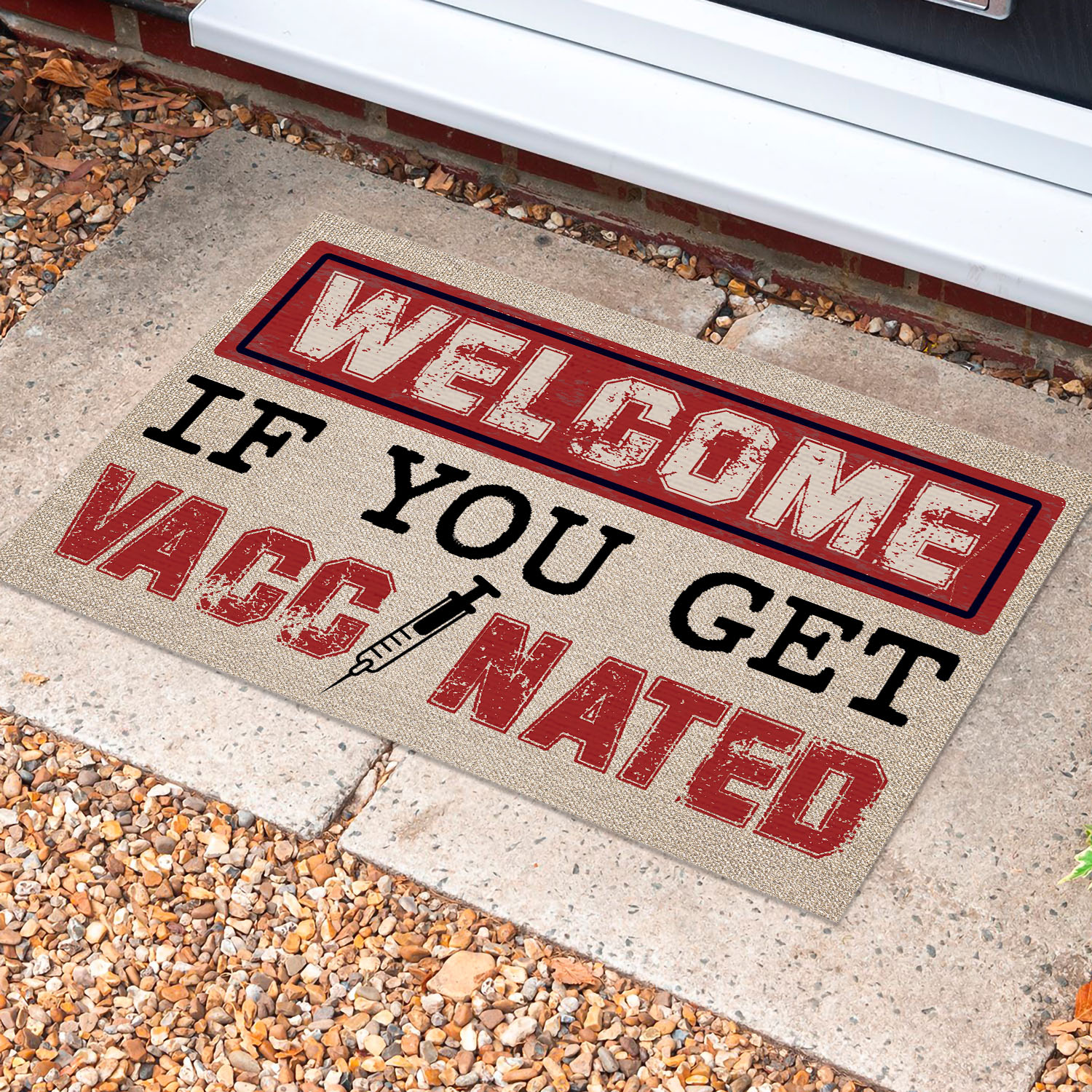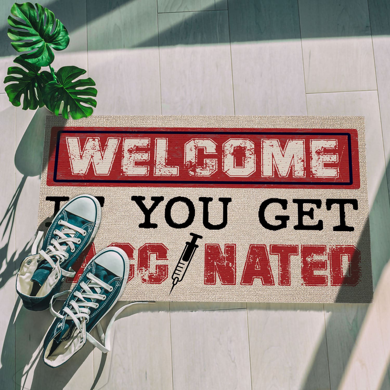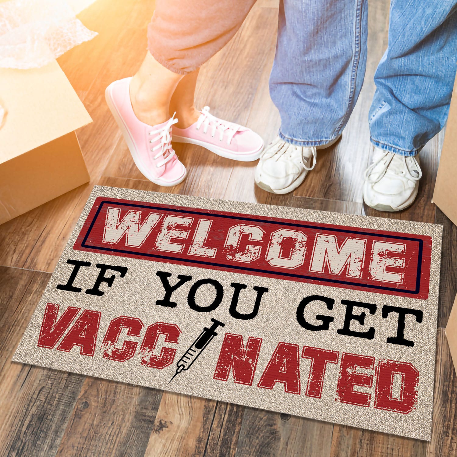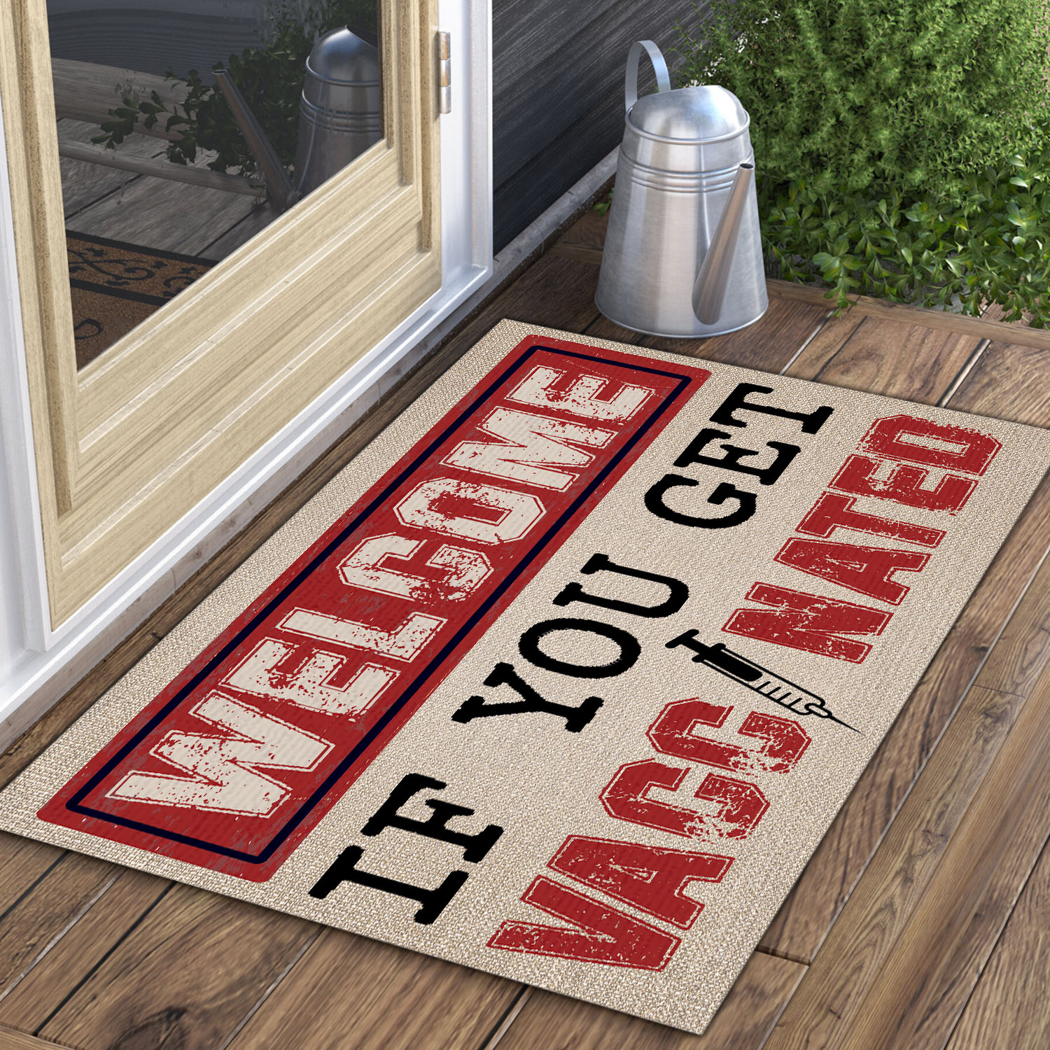 Let’s Shop Welcome If You Get Vaccinated Funny Indoor Outdoor Decorative Doormat!