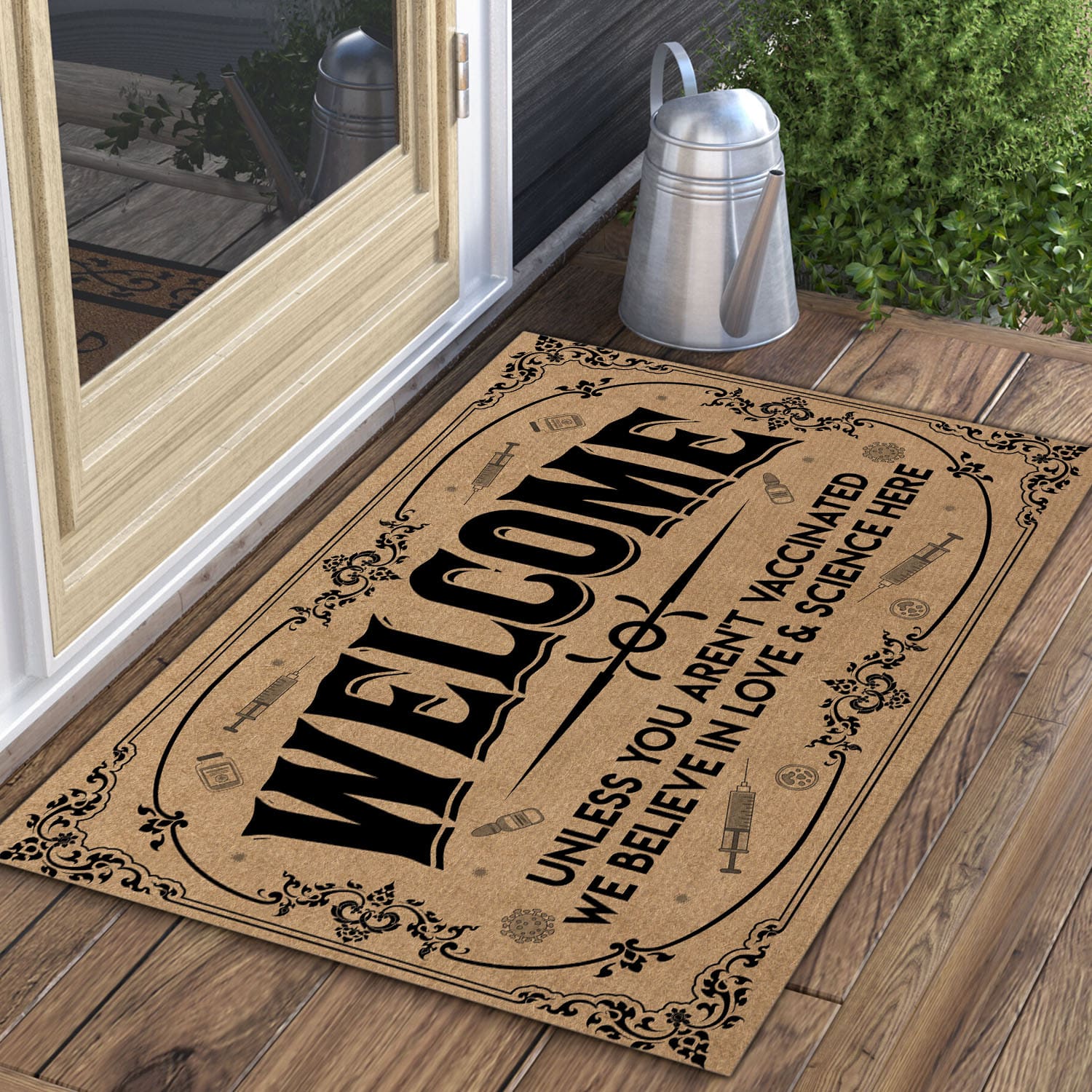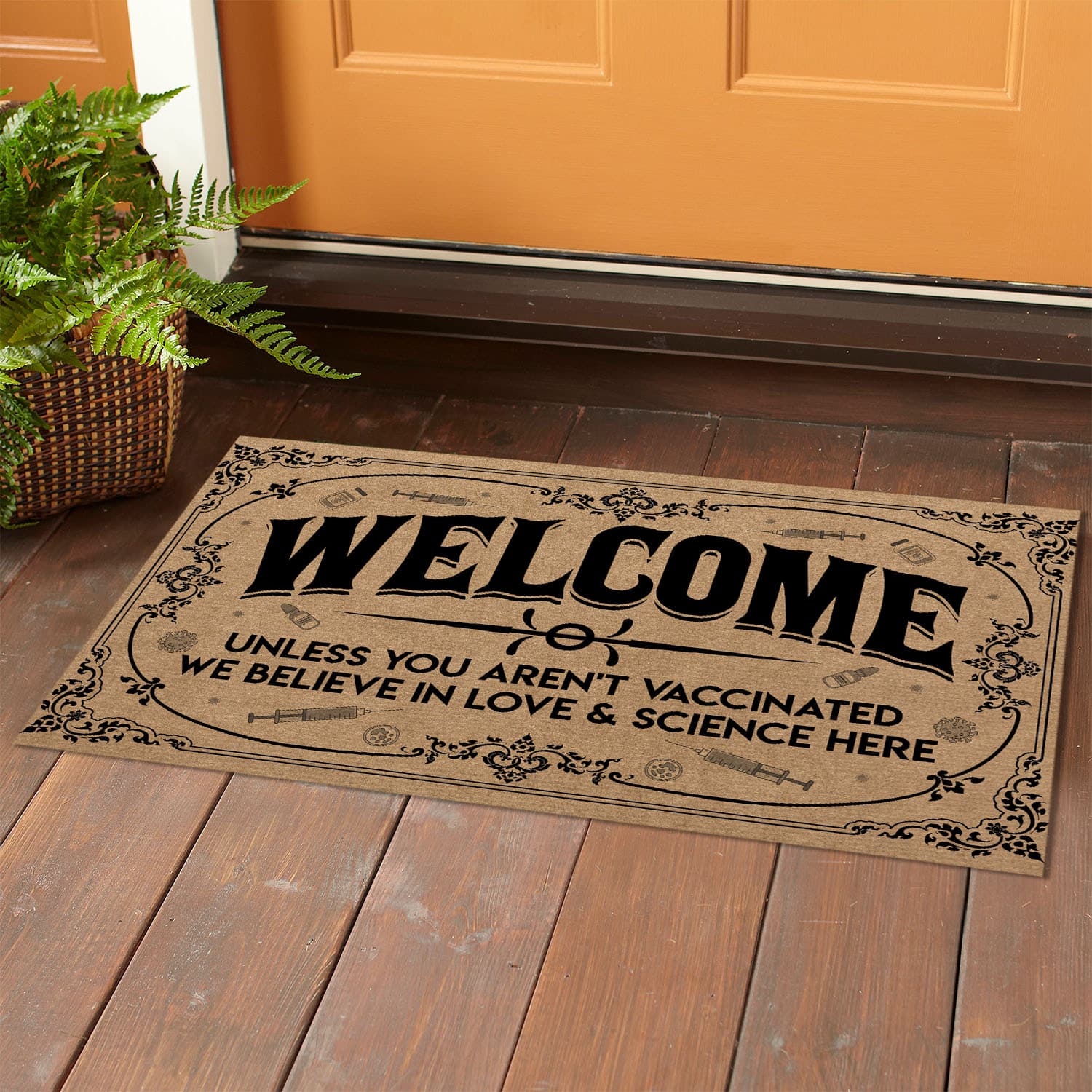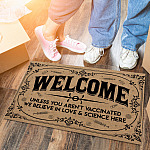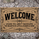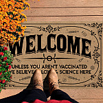 Let’s Shop Welcome Unless You Aren’t Vaccinated We Believe in Love and Science Here Entrance Indoor Outdoor Decorative Doormat!