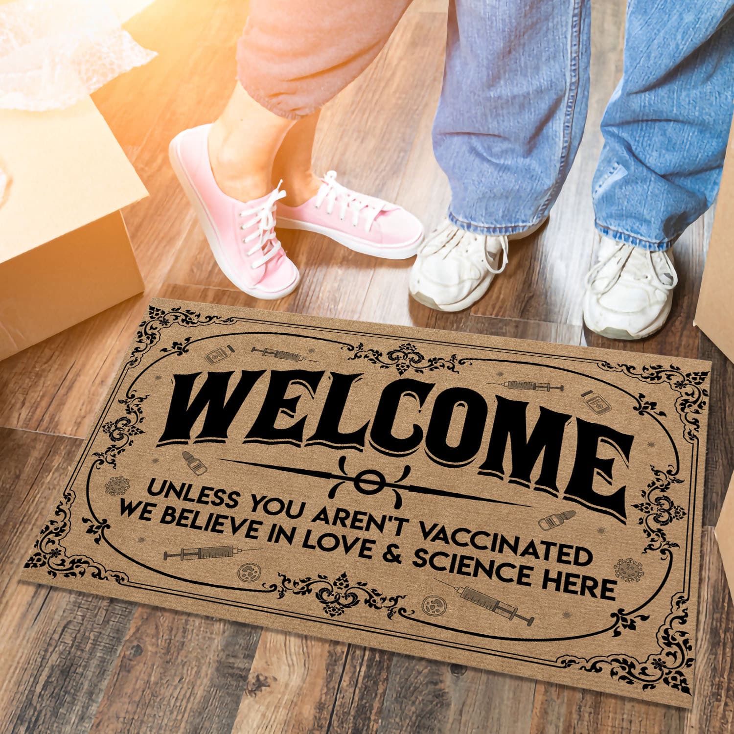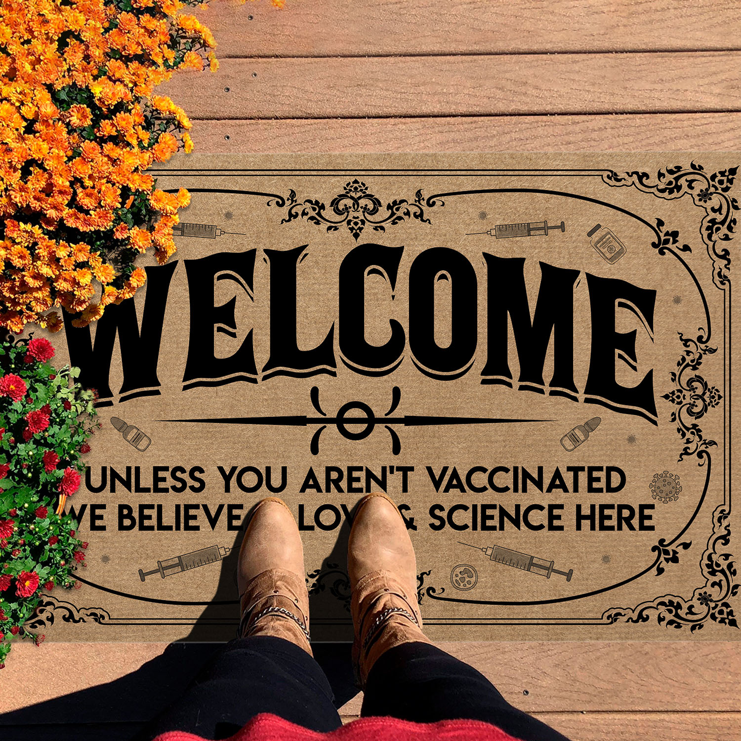 Are you spending too much time to find creative merchandise for you or suitable & special gifts for your mommy, your daddy, your son, your daughter, your children, your friends or someone you love? The struggle is over because we have various Welcome Unless You Aren’t Vaccinated We Believe in Love and Science Here, Welcome Unless You Aren’t Vaccinated, Welcome Mat Are You Vaccinated, Vaccinated Welcome Mat, Welcome Mat Vaccinated, Science Doormat, Not Vaccinated, All Are Welcome Here, Funny Welcome Rug, Welcome Mat, in This House We Believe Doormat which will make perfect presents for your beloveds. In order to make your present stand out, we have created lots of unique and awesome customized photo gifts & personalized designs.