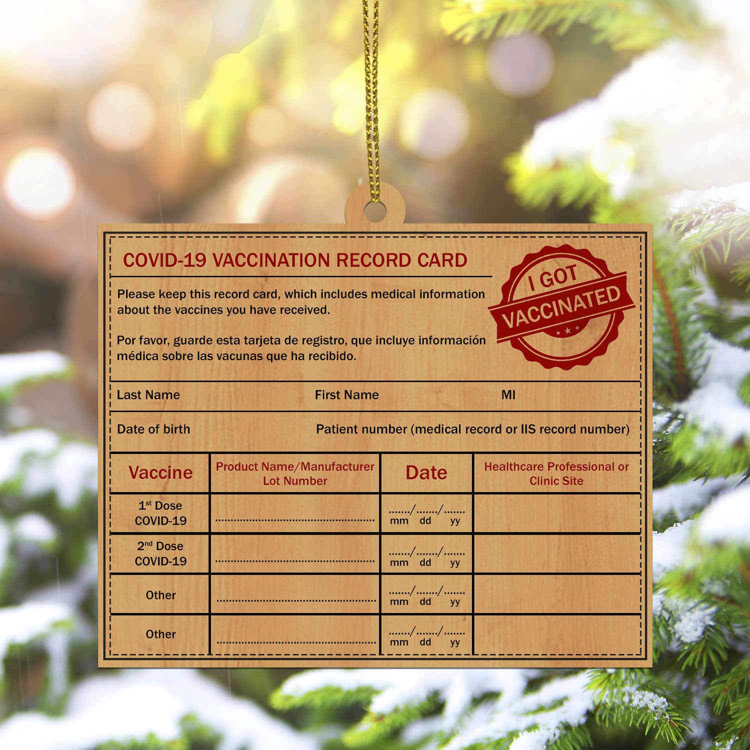 Let’s Shop Covid-19 Vaccination Record Card Vaccine Passport Ornament Decorative Custom Shaped Wooden Christmas Ornament Keepsake!