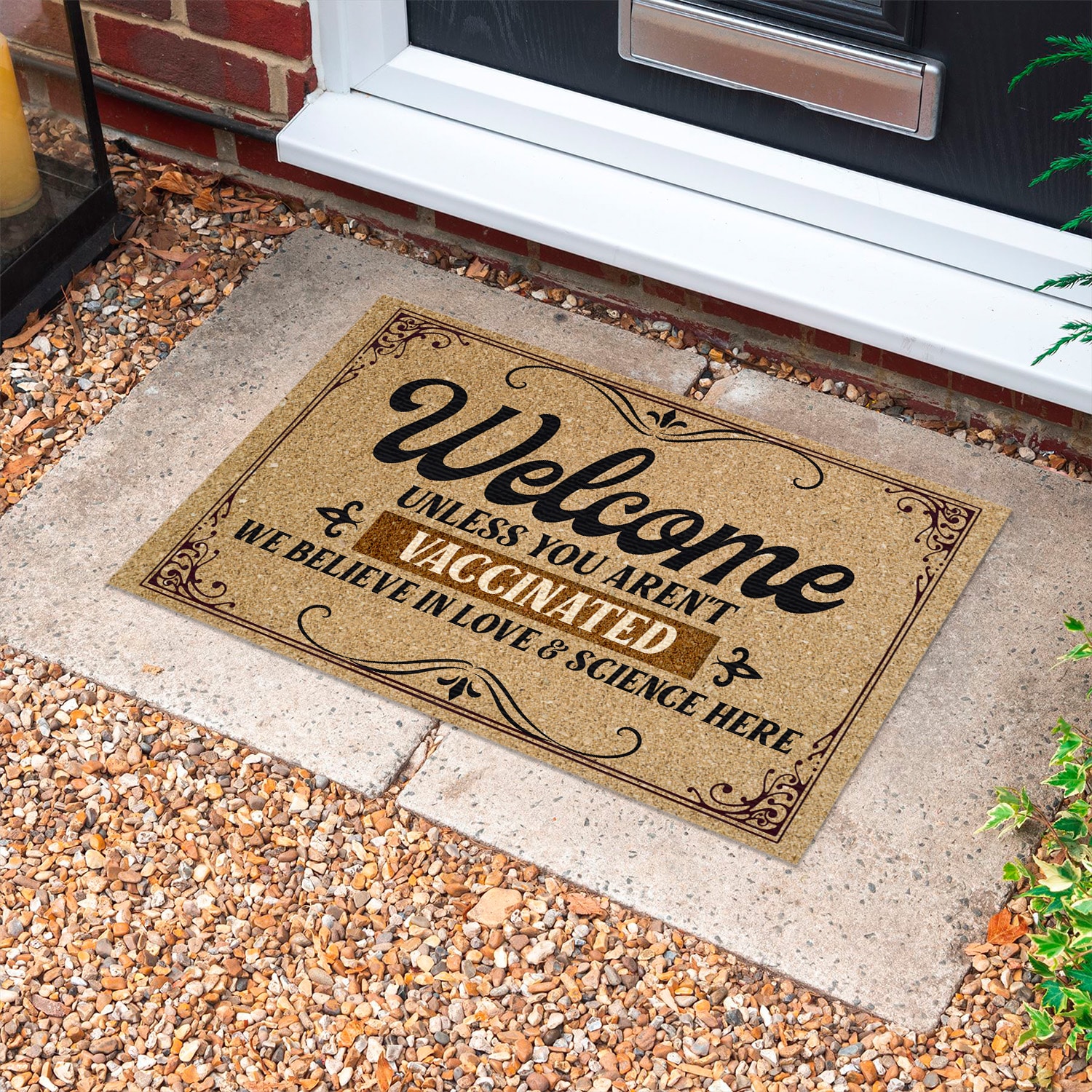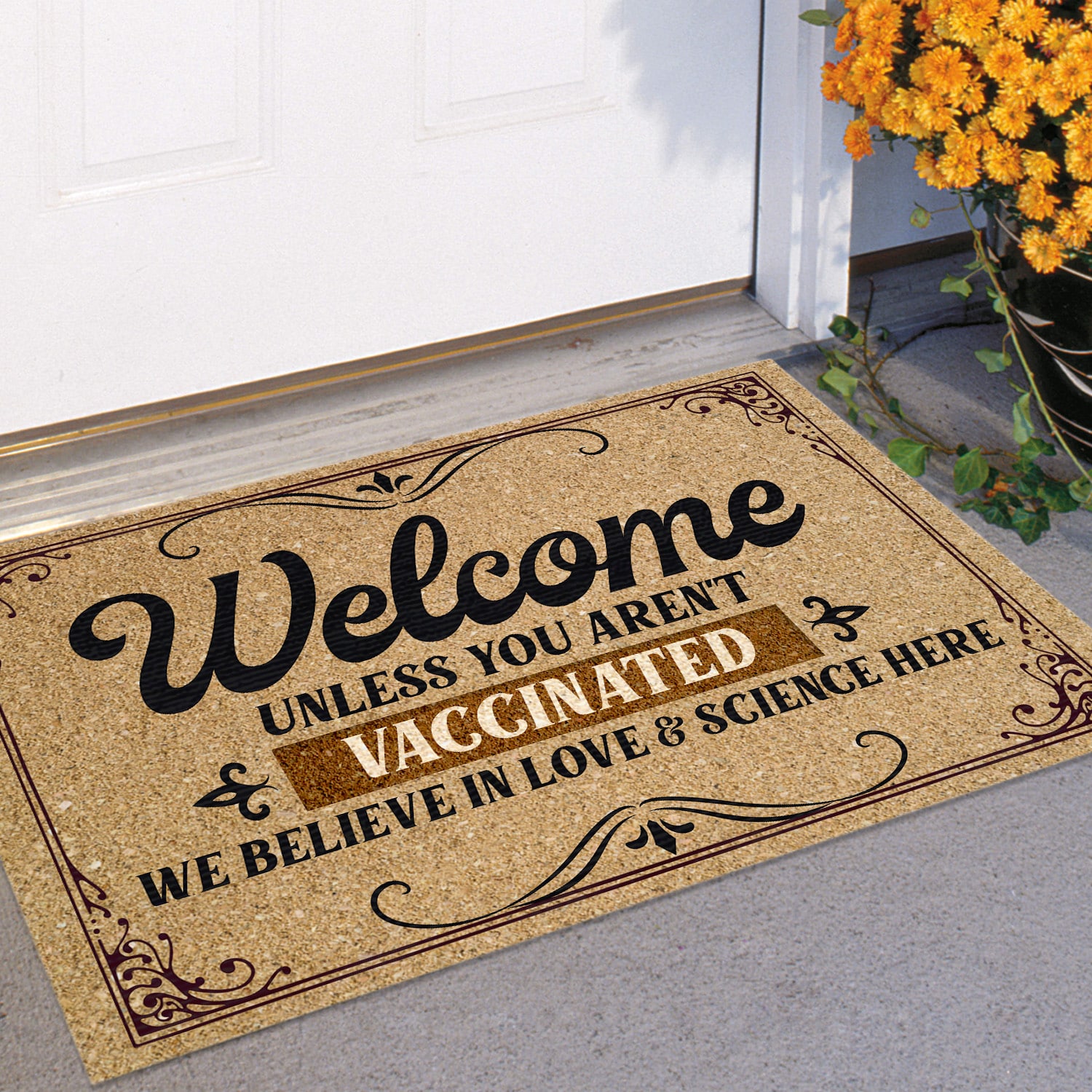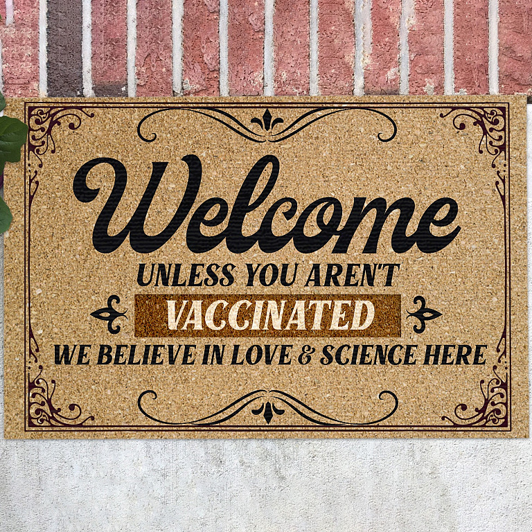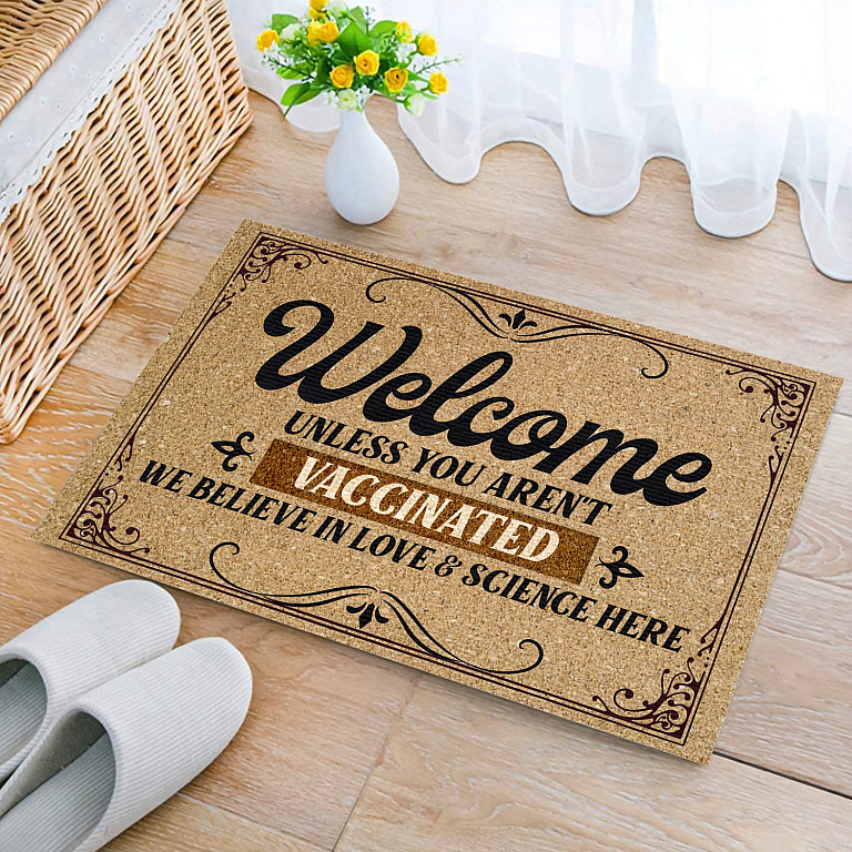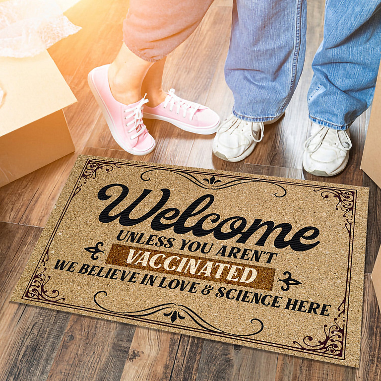Let’s Shop Welcome Unless You Aren’t Vaccinated We Believe In Love And Science Here Doormat – Outdoor Indoor Doormat – Pro Vaccine Doormat!
