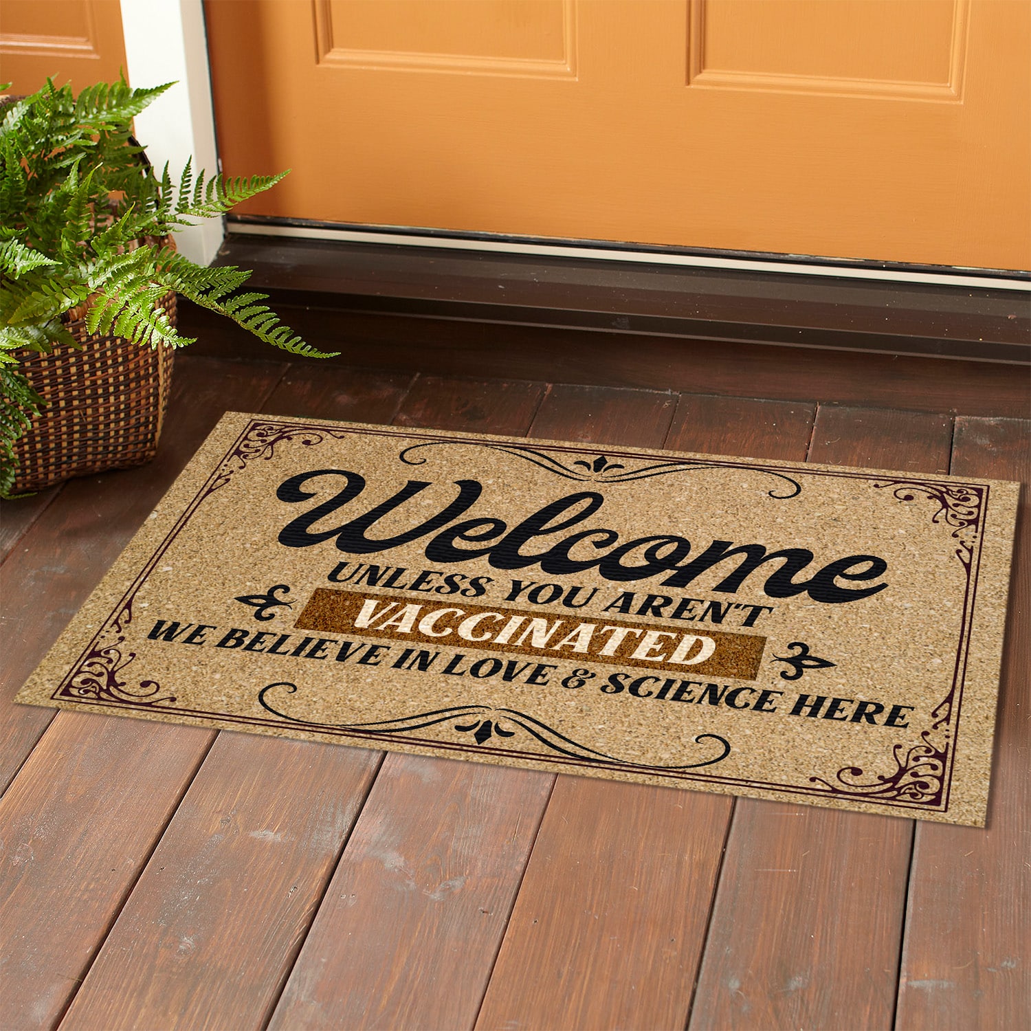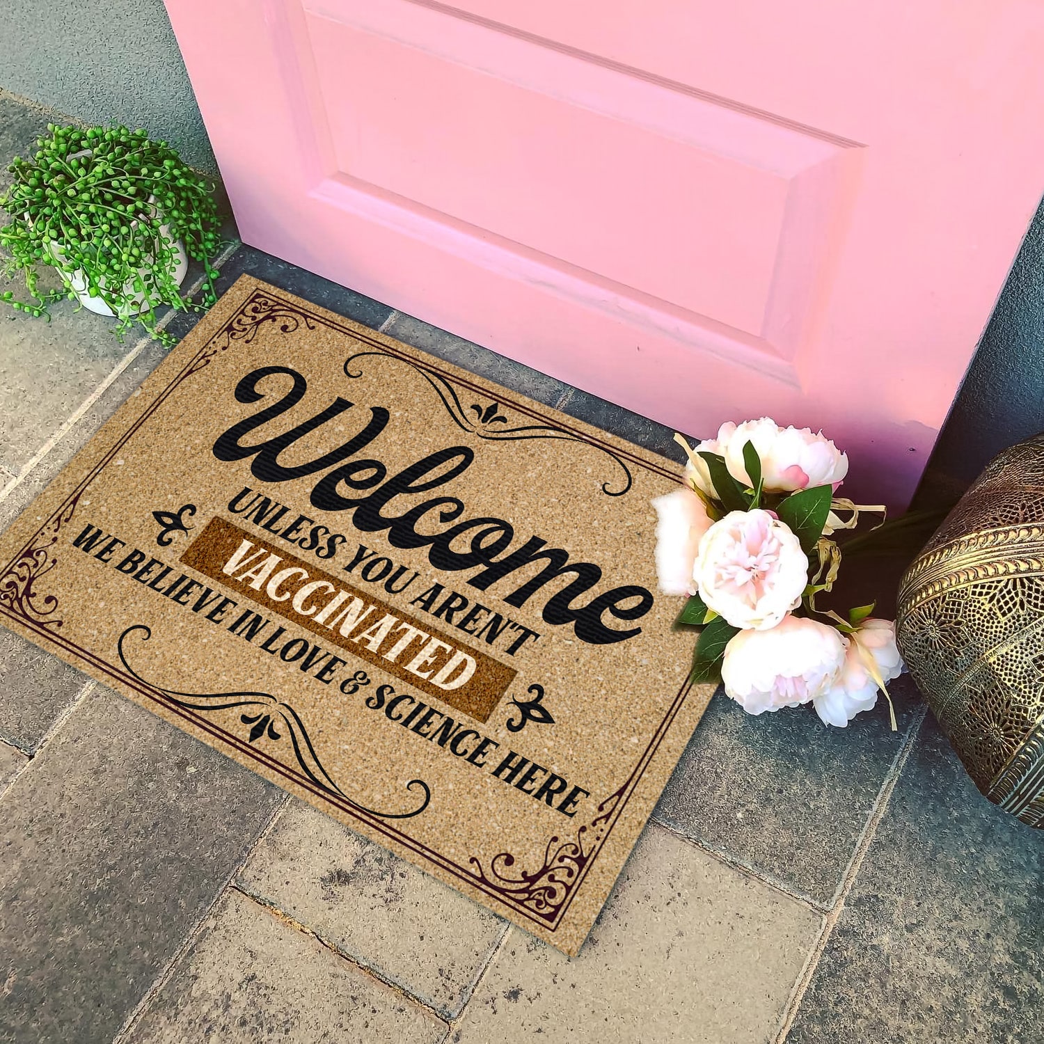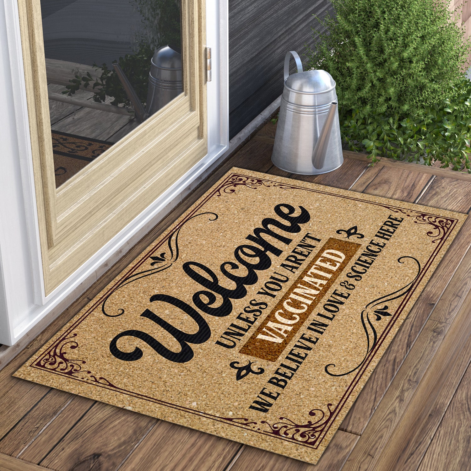 Let’s Shop Welcome Unless You Aren’t Vaccinated We Believe In Love And Science Here Doormat – Outdoor Indoor Doormat – Pro Vaccine Doormat!