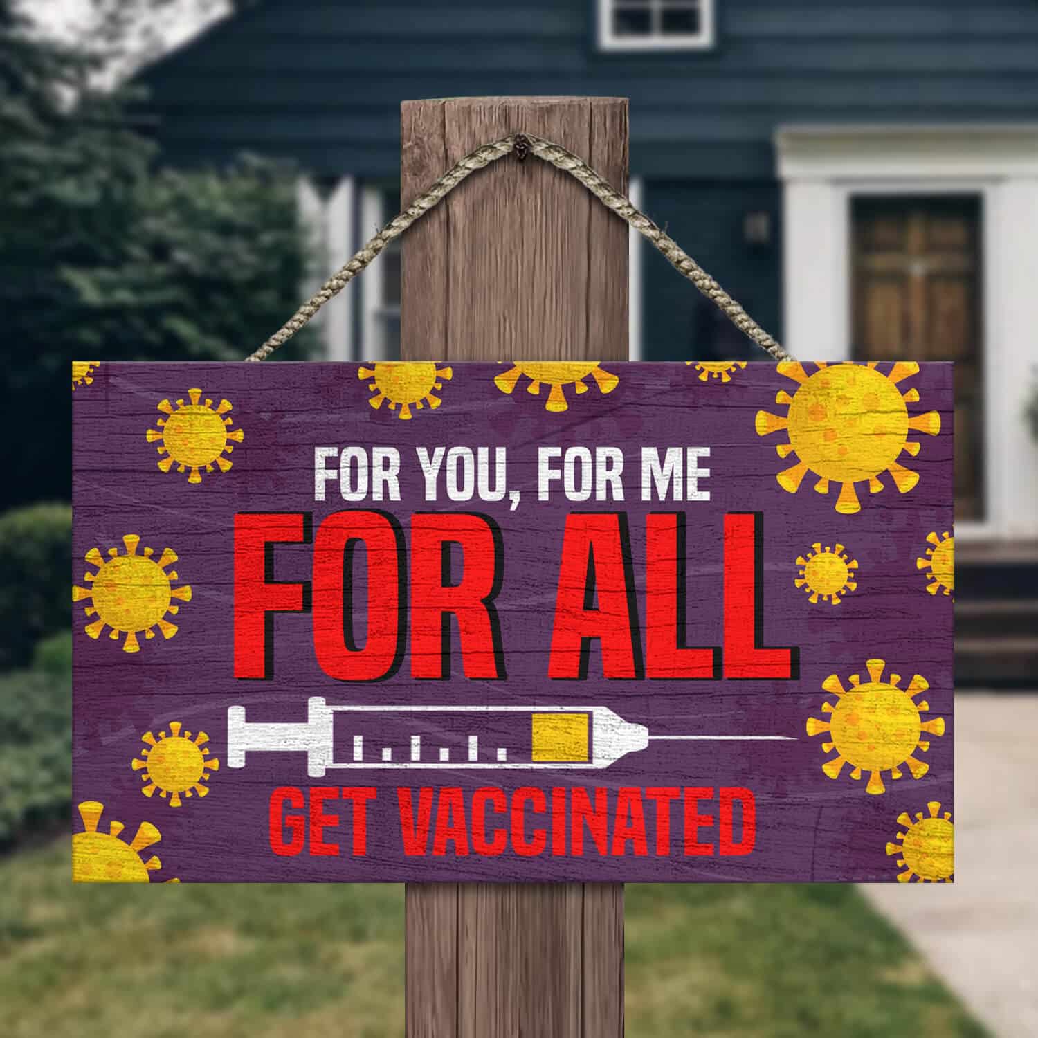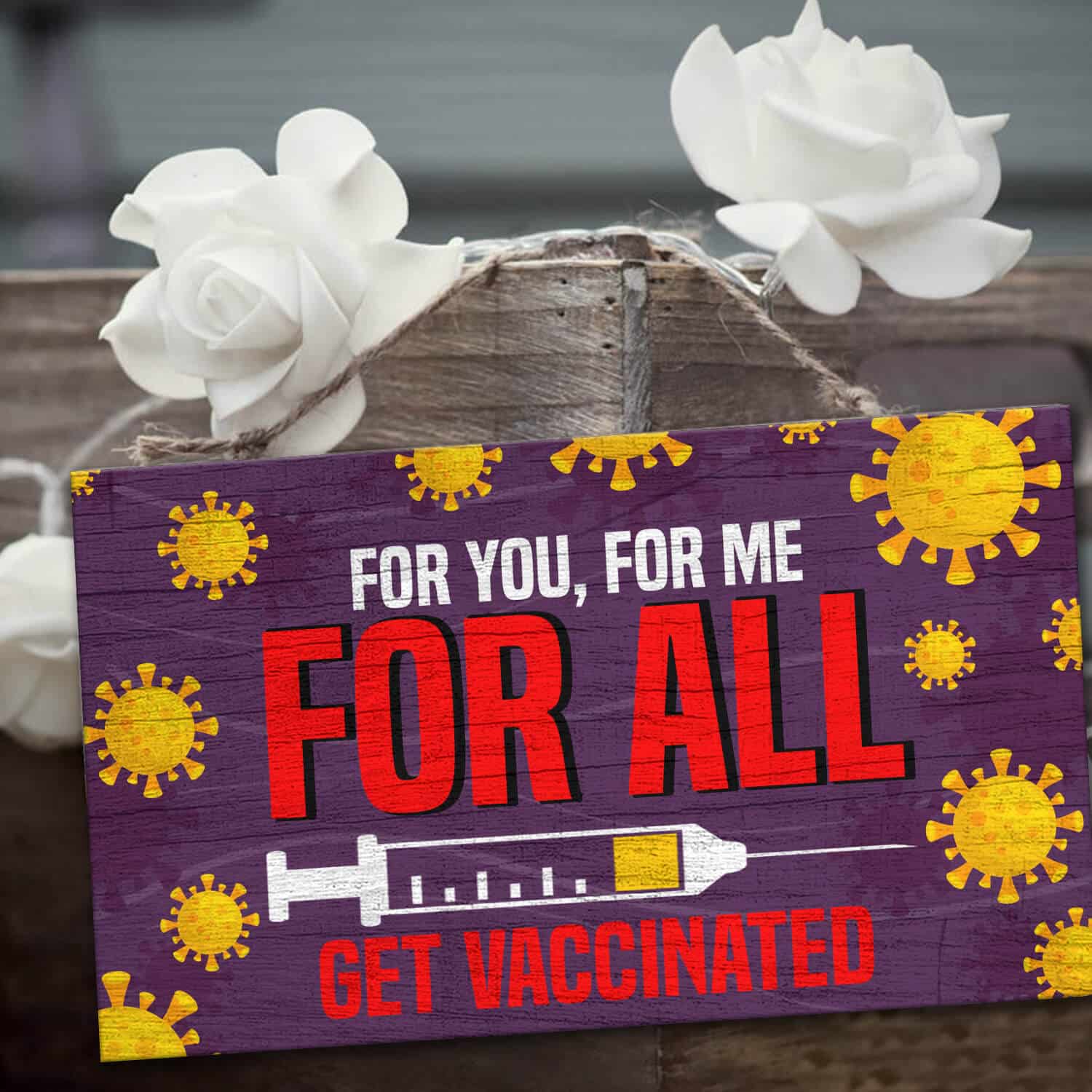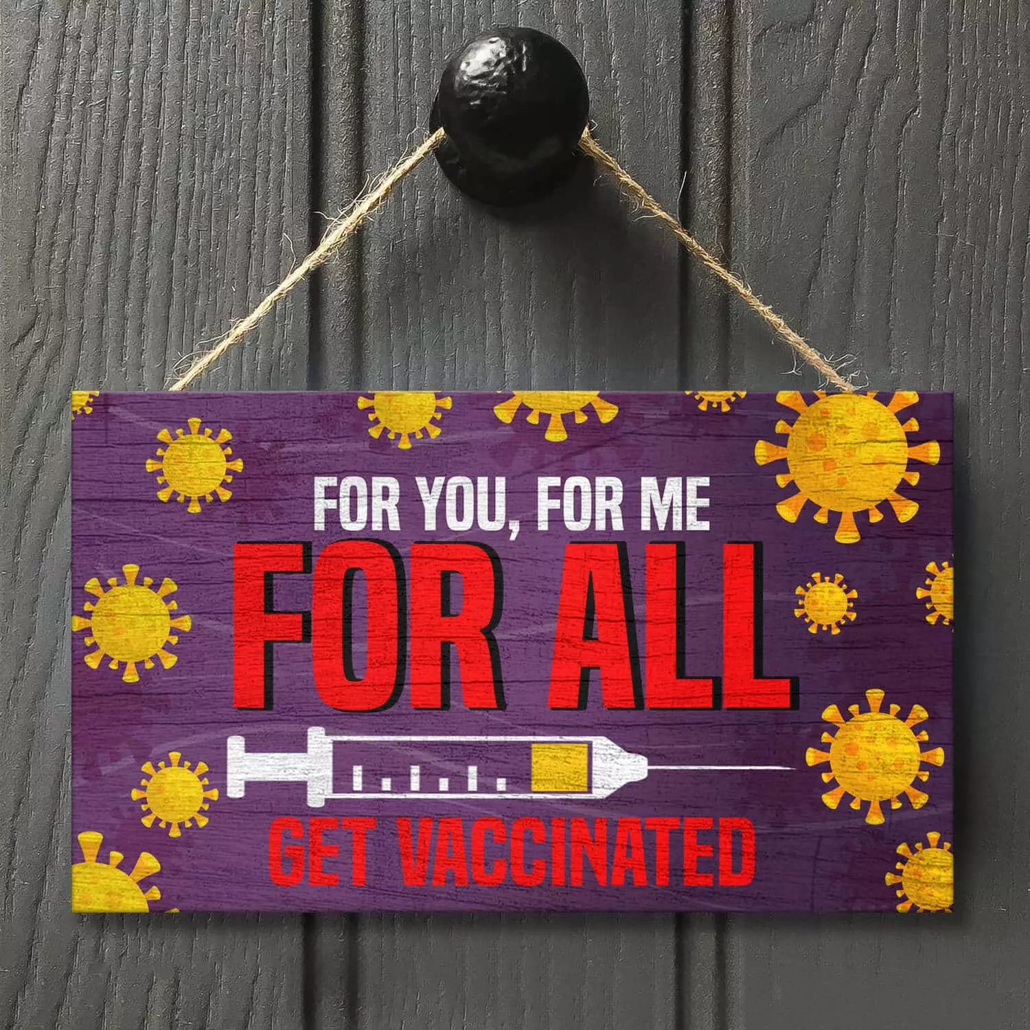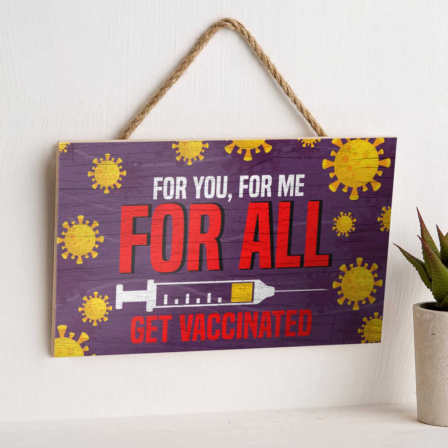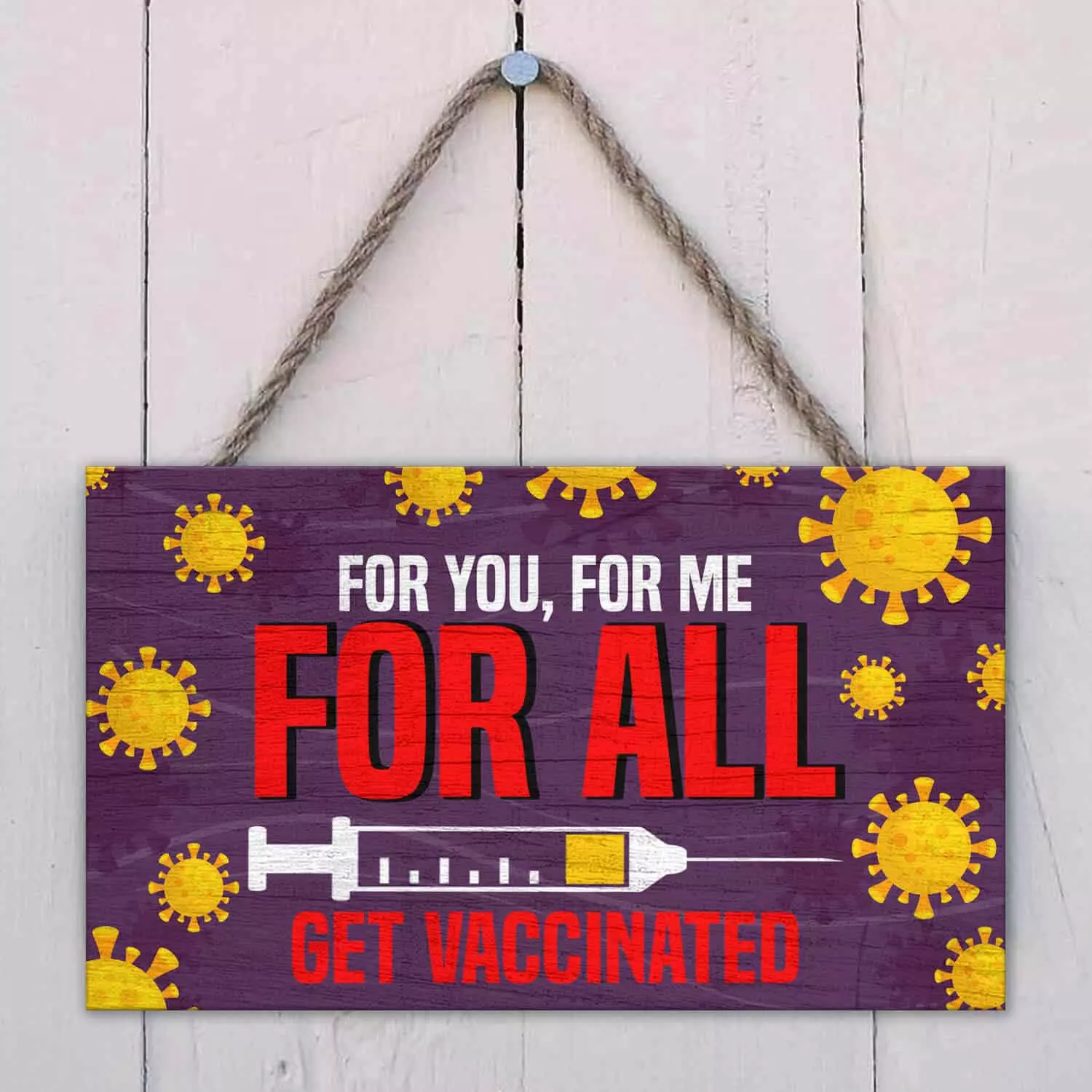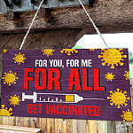 Let’s Shop For You For Me For All Get Vaccinated Decorative Wooden Door Sign – Pro Vaccine Front Porch Sign!