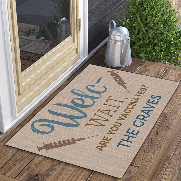 Let’s Shop Custom Family Name Welc Wait Are You Vaccinated House Doormat – Funny Vaccination Outdoor Doormat!