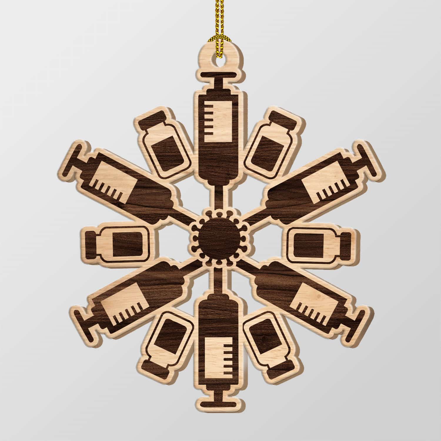 Let’s Shop 2021 Vaccine Snowflake Decorative Custom Shaped Wooden Christmas Ornament Keepsake!
