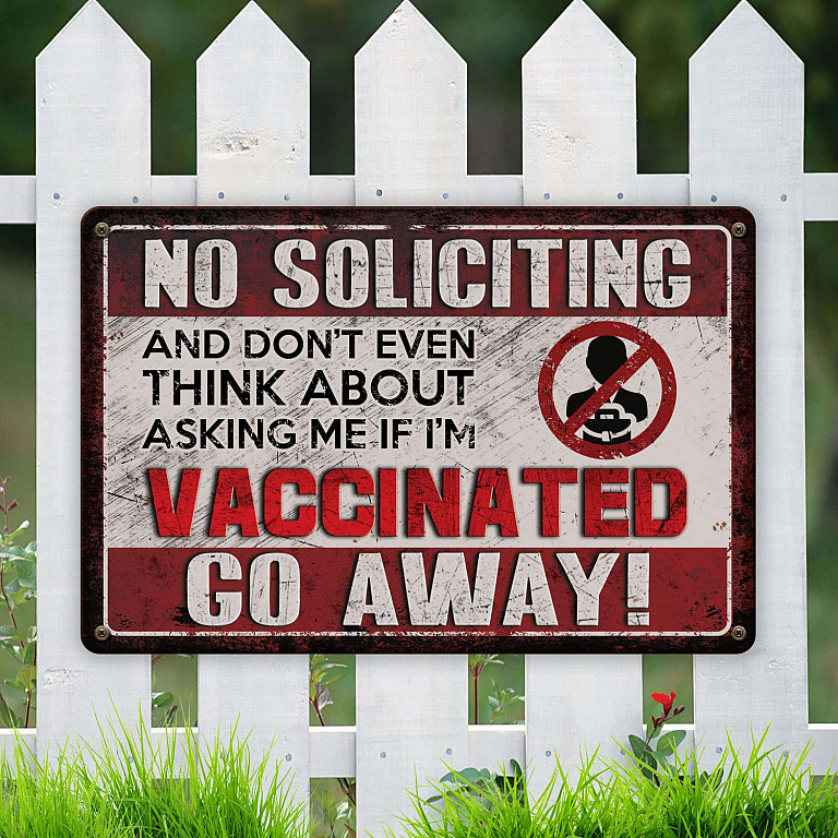 Let’s Shop No Soliciting And Don’t Even Think About Asking Me If I’m Vaccinated Go Away Decorative Metal Sign – Outdoor Decor!