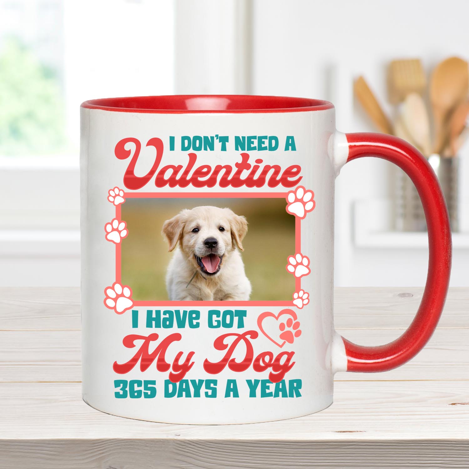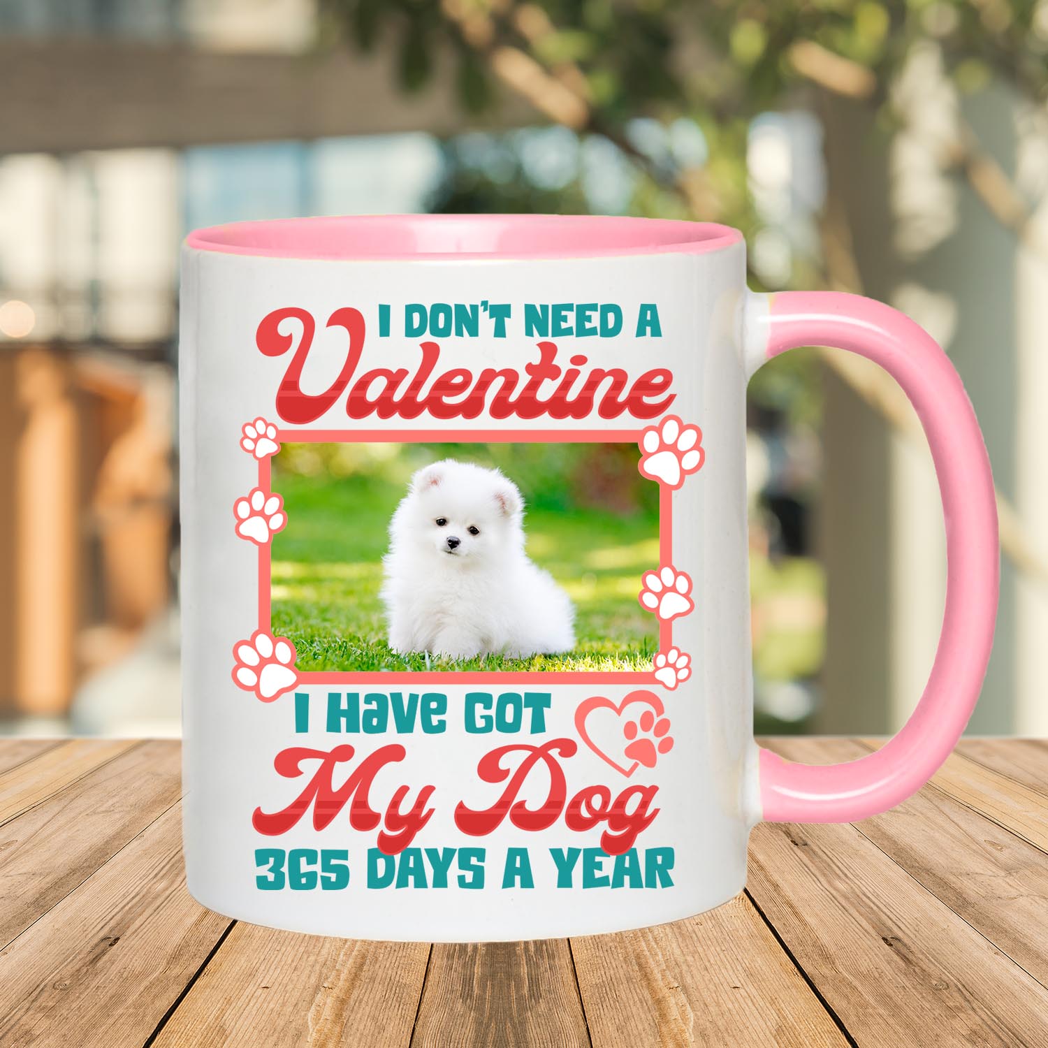 Let’s Shop Personalized Photo I Don’t Need A Valentine I Have Got My Dog 365 Days A Year Accent Mug – Ceramic Coffee Mug!