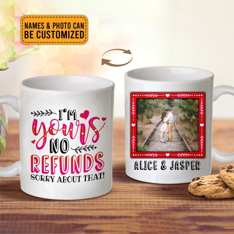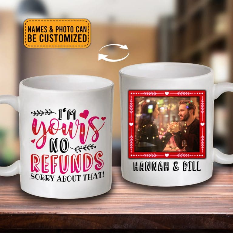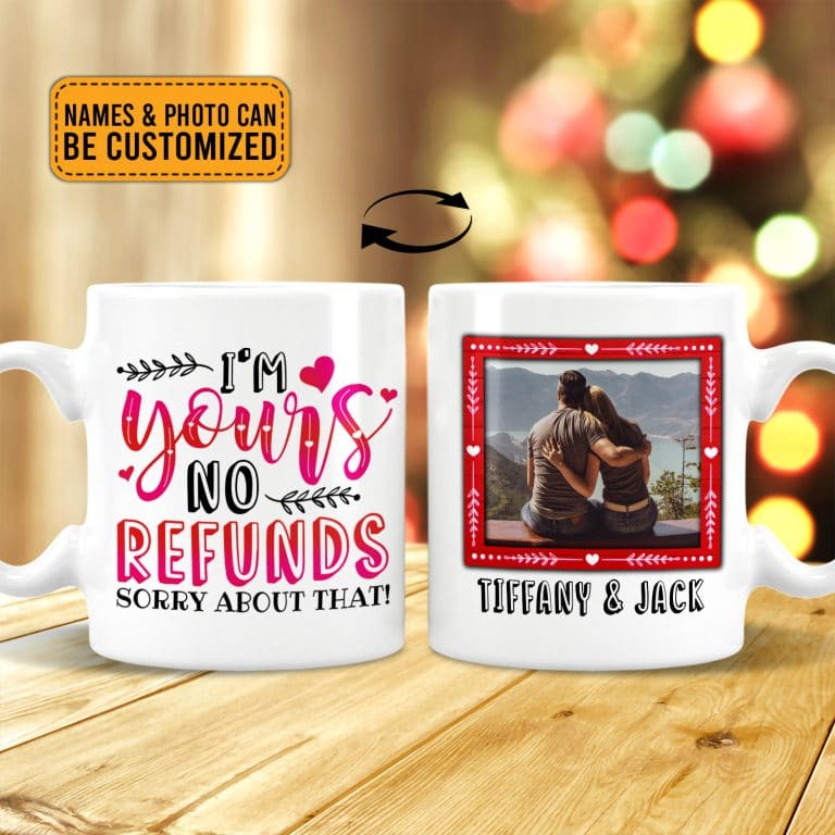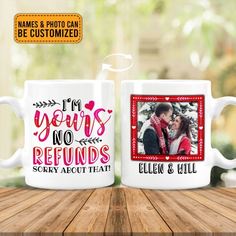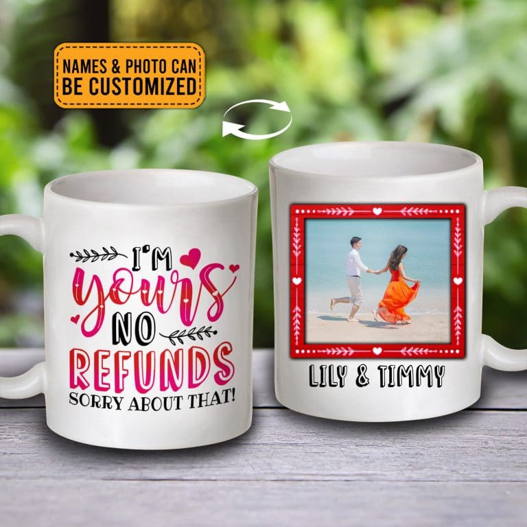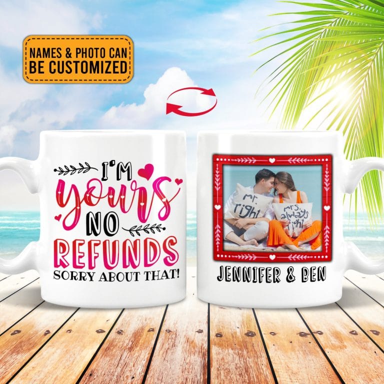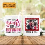 Let’s Shop I’m Yours No Refunds Personalized Photo Couple Valentine Ceramic Coffee Mug – Water Bottle – Beer Stein!