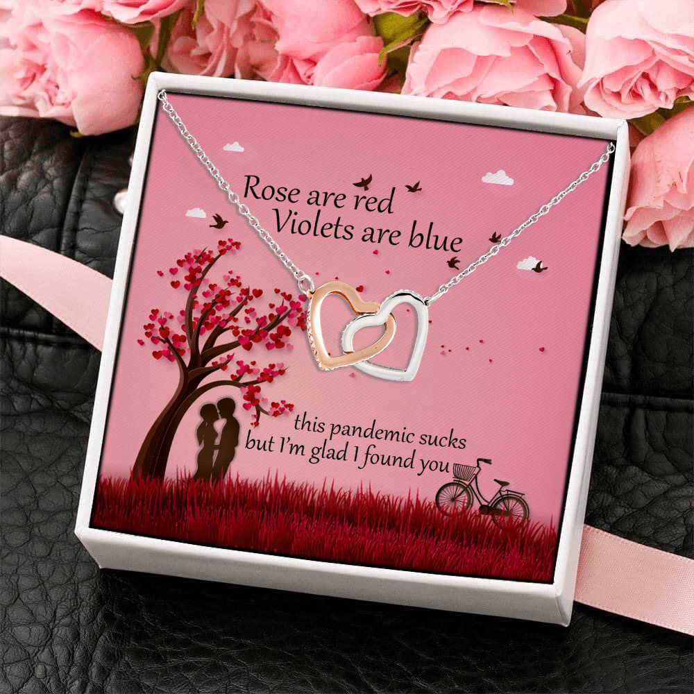 Let’s Shop Happy Valentines Day Roses Are Red Violets Are Blue I’m Glad I Found You Interlocking Heart Pendant Necklace!