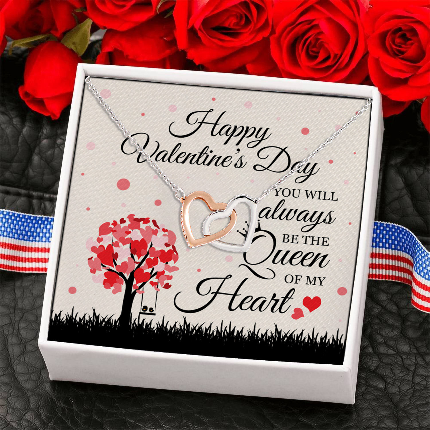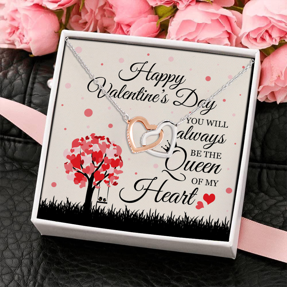 Let’s Shop Happy Valentines Day You Are the Queen of My Heart Gift for Her Interlocking Heart Pendant Necklace!
